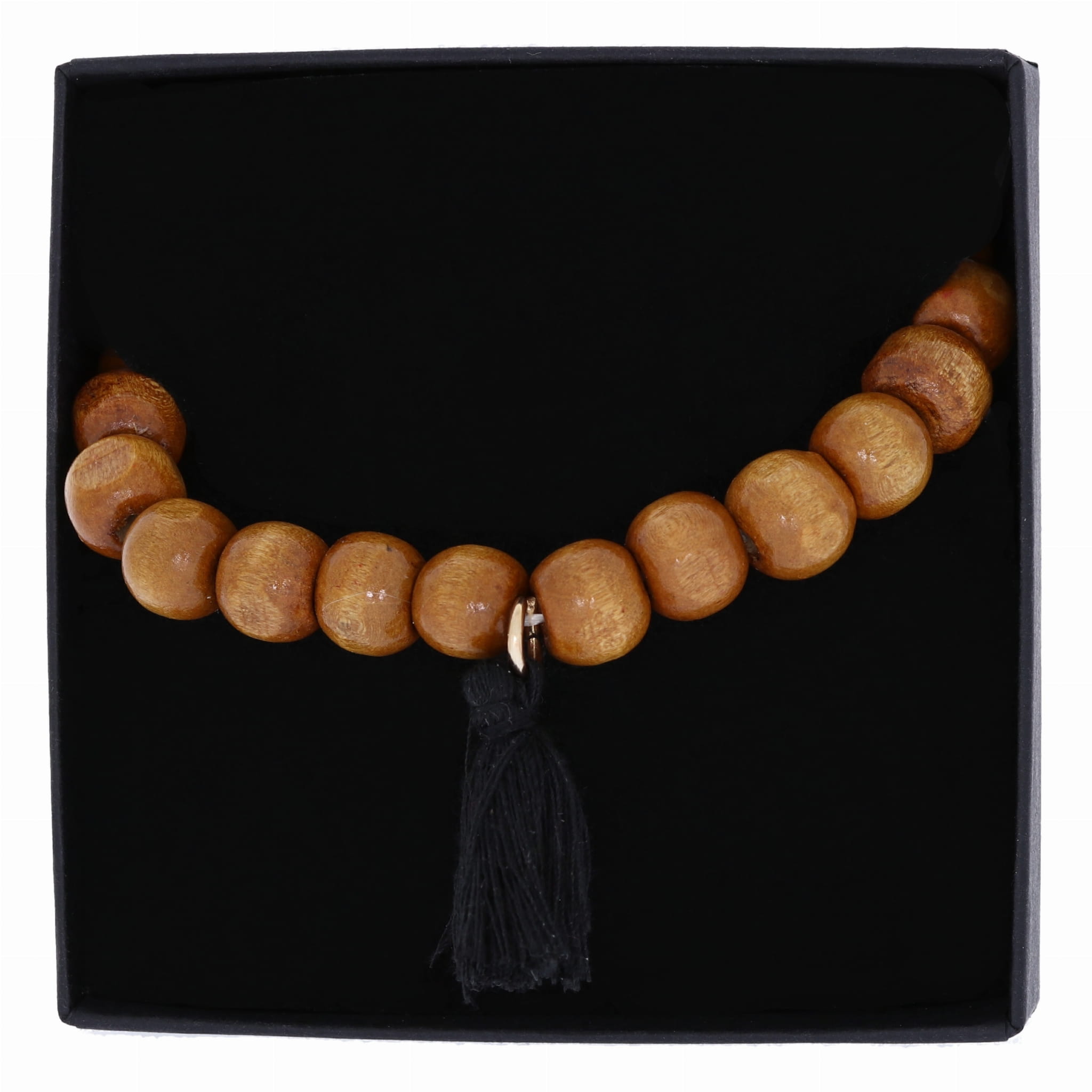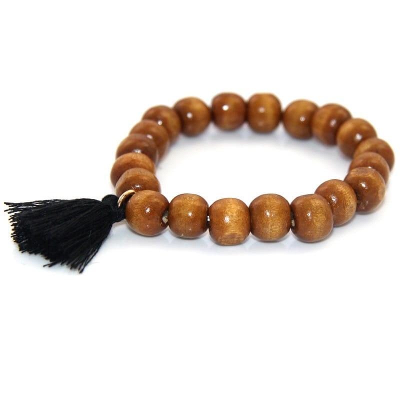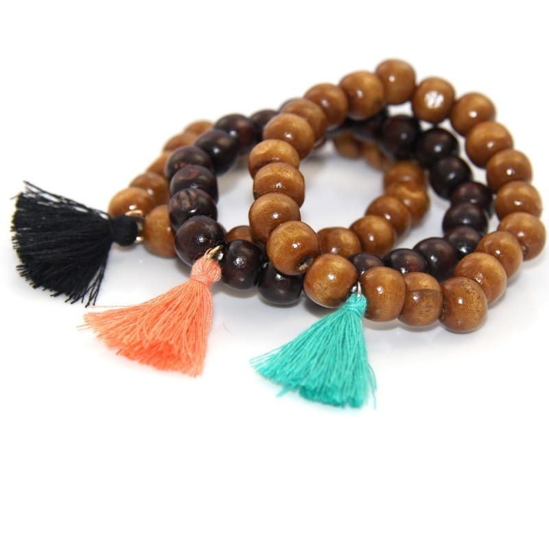 BRANSOLETKA KORALIKI FRĘDZEL CZARNY BOHO NA GUMCE