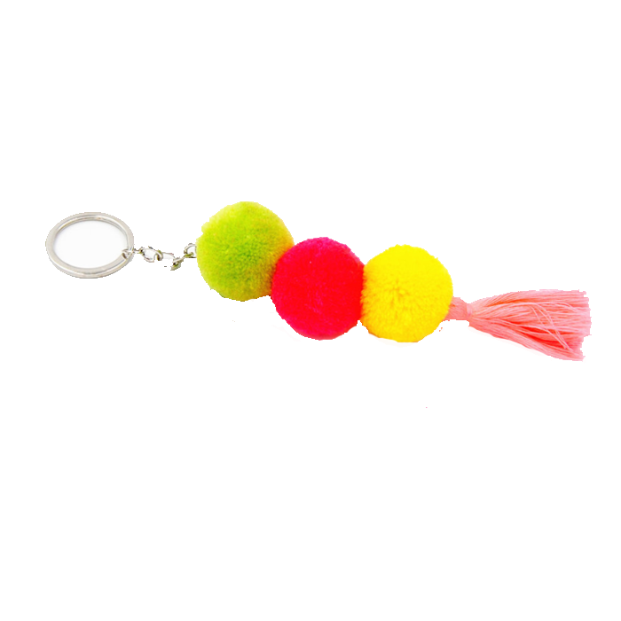 BRELOK PUSZEK POMPONY ZIELONY ŻÓŁTY FRĘDZEL