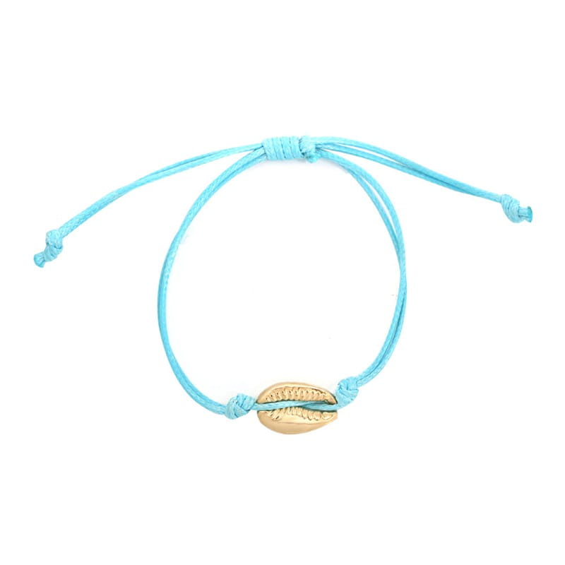 BRANSOLETKA MUSZELKA NA NIEBIESKIM SZNURKU