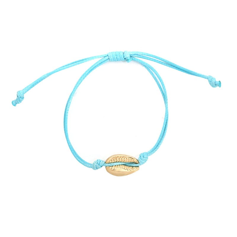 BRANSOLETKA NA RĘKĘ MUSZELKA ZŁOTA NIEBIESKI SZNUREK