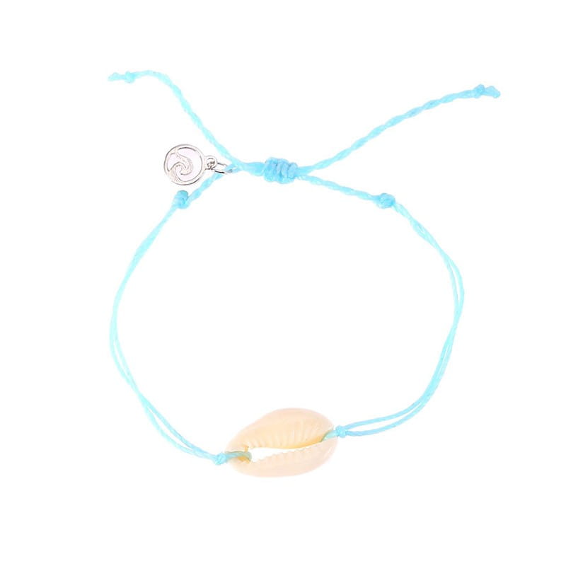 BRANSOLETKA NA RĘKĘ MUSZELKA KREMOWA NIEBIESKI SZNUREK