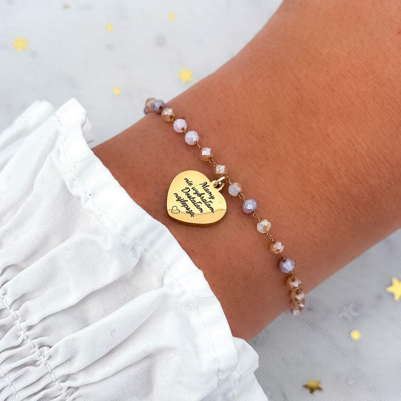 Delikatne koraliki i złoty kolor nadają bransoletce elegancji, a forma serca podkreśla miłość i więź rodziną.