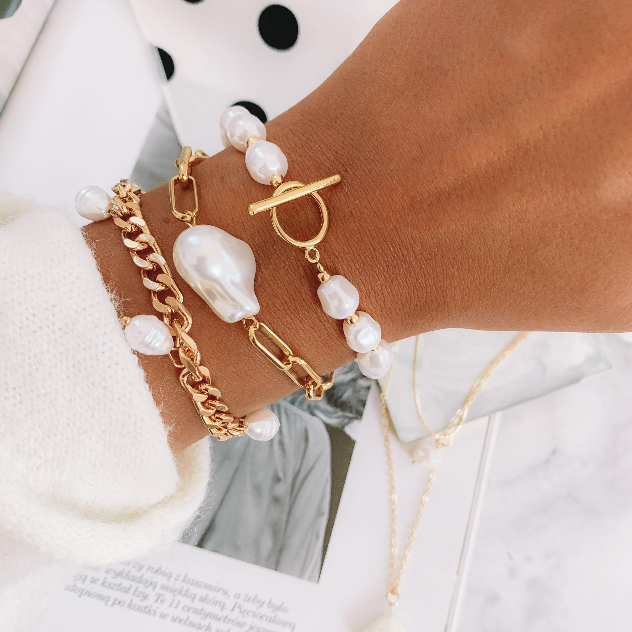 BRANSOLETKA KOLOR ZŁOTY ŁAŃCUCH WISZĄCE PEREŁKI HIT