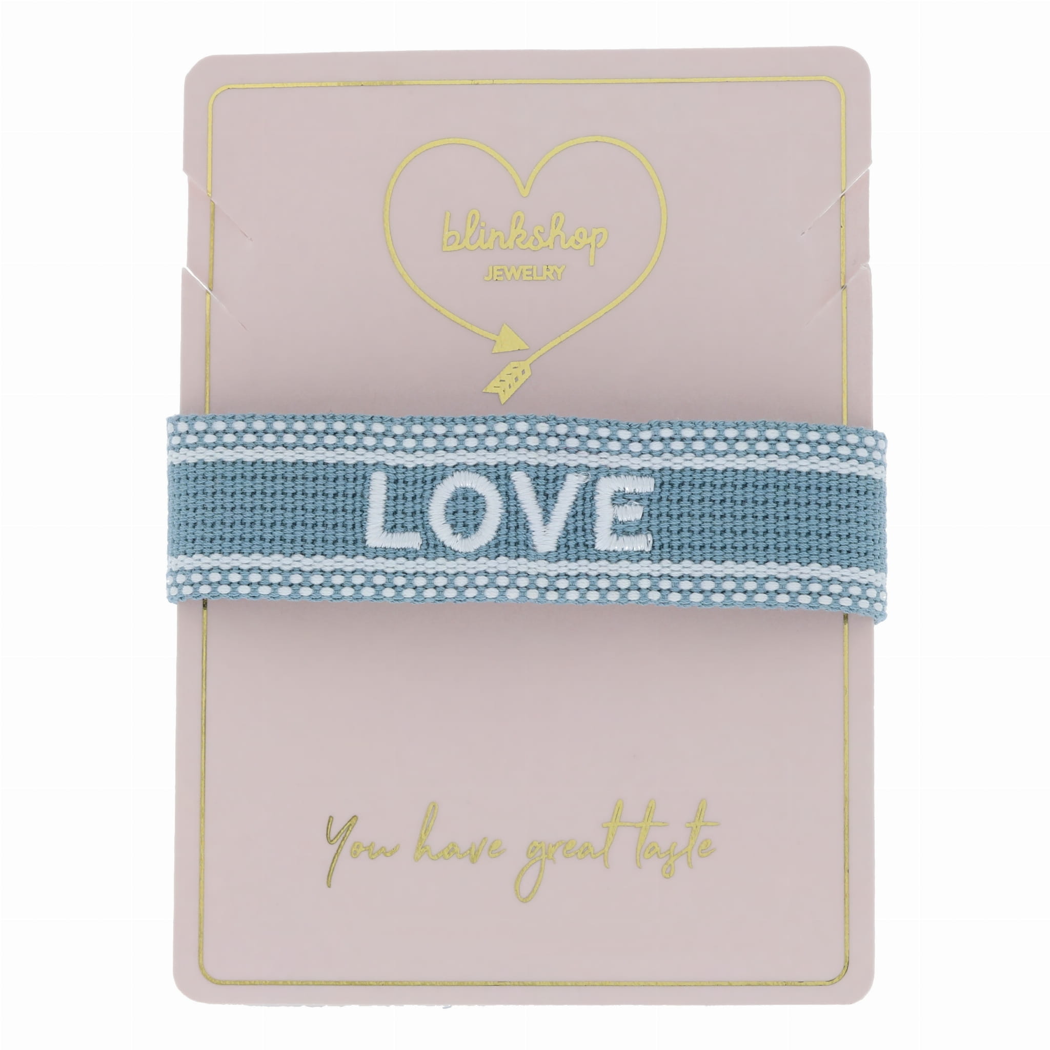 BRANSOLETKA MATERIAŁOWA NAPIS LOVE KOLOR SZARY