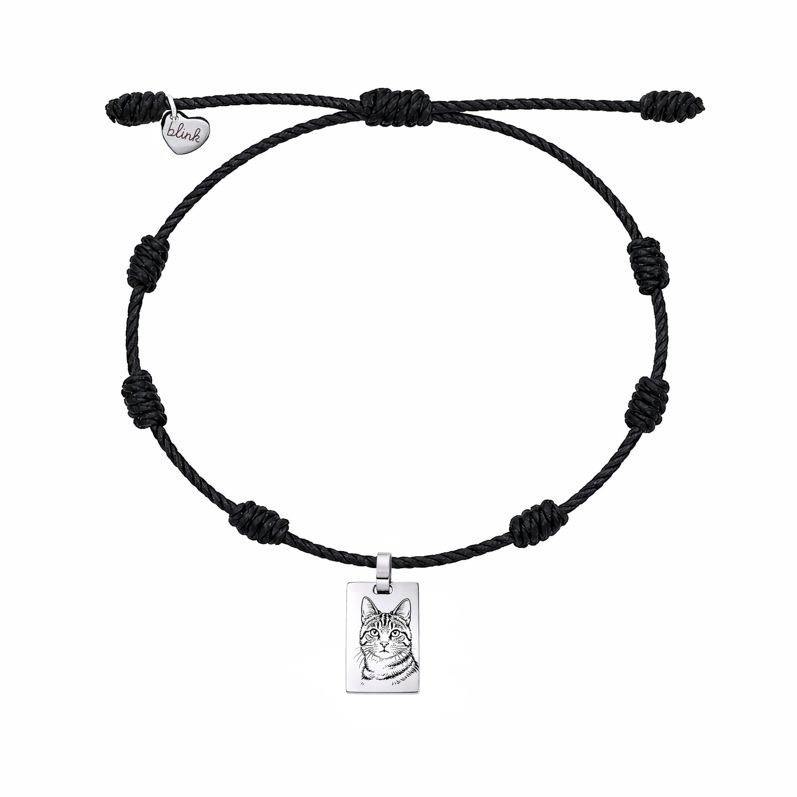 BRANSOLETKA MĘSKA SZNUREK Z SIEDMIOMA WĘZŁAMI GRAWER PORTRETU ZE ZDJĘCIA PSA KOTA