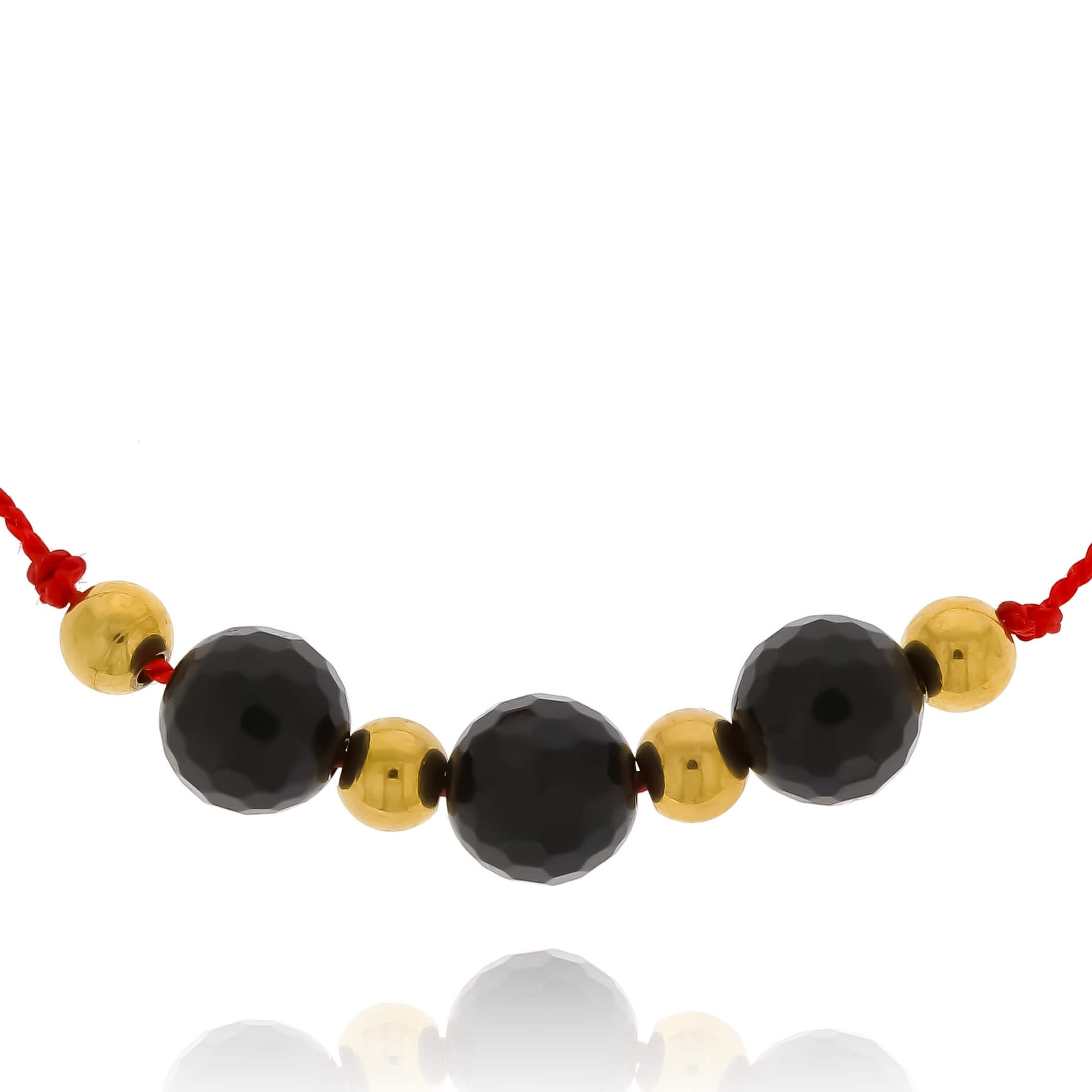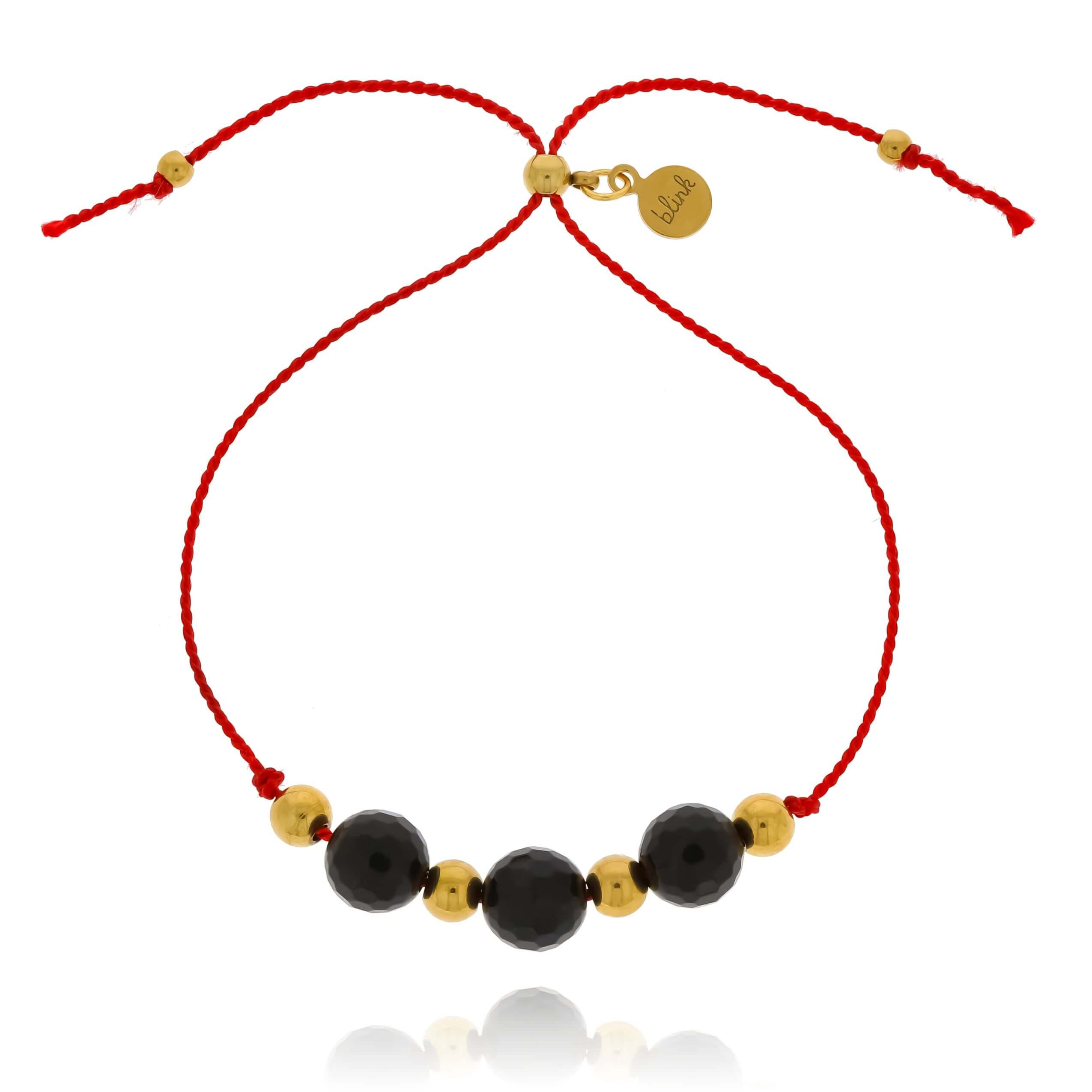 BRANSOLETKA NA CZERWONYM SZNURKU ZE STALI I KAMIENI TURMALIN