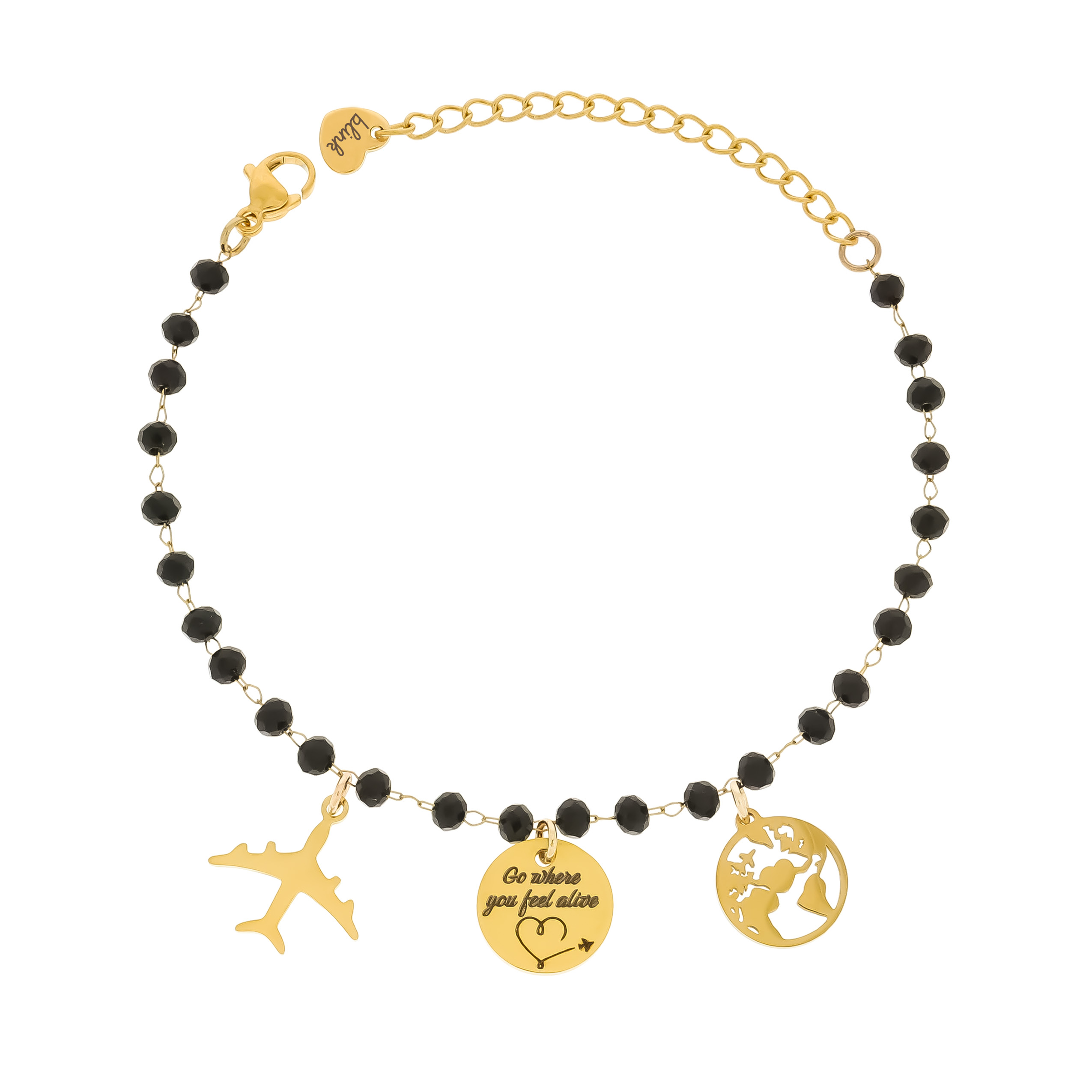 Wyjątkowa bransoletka, która podkreśla miłość do podróży i idealnie sprawdzi się jako biżuteria dla każdej osoby kochającej odkrywać świat. Wykonana z pozłacanej stali chirurgicznej 316L, łączy elegancję z trwałością i odpornością na codzienne noszenie. Jej klasyczny wygląd sprawia, że pasuje do wielu okazji – od codziennych stylizacji po bardziej eleganckie wyjścia.