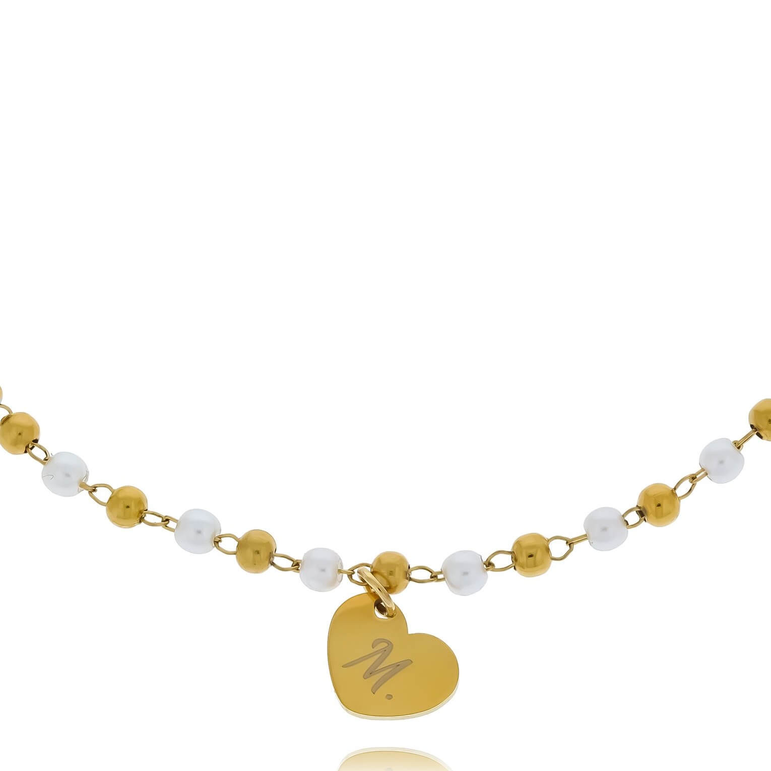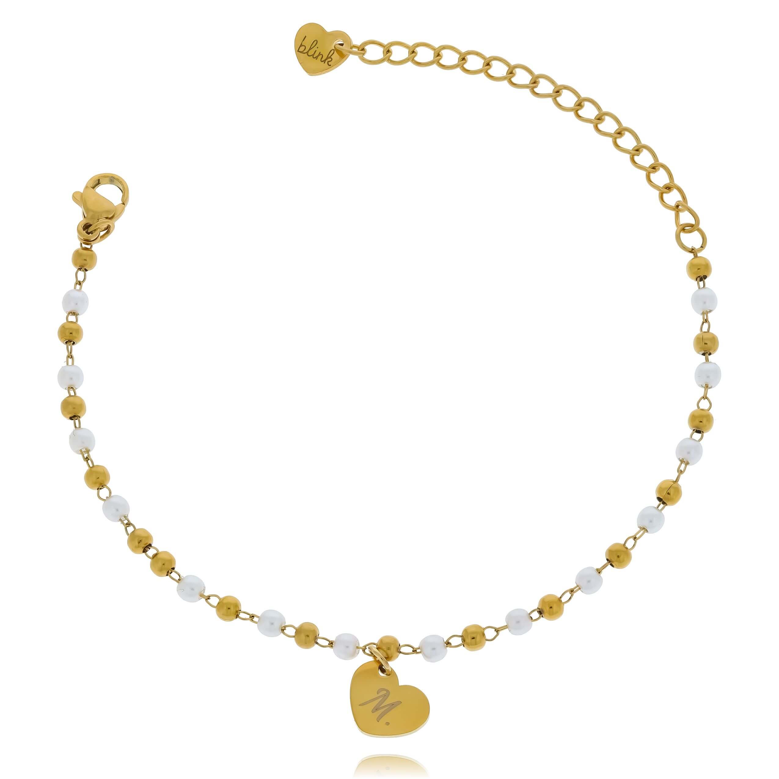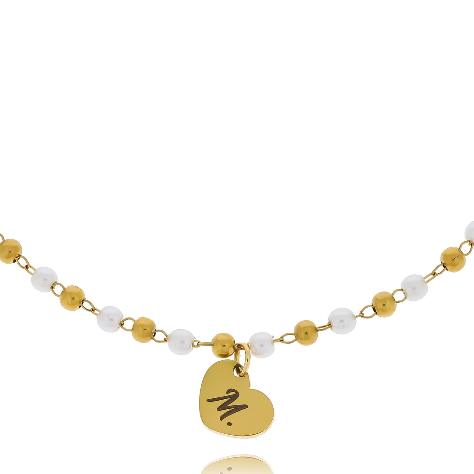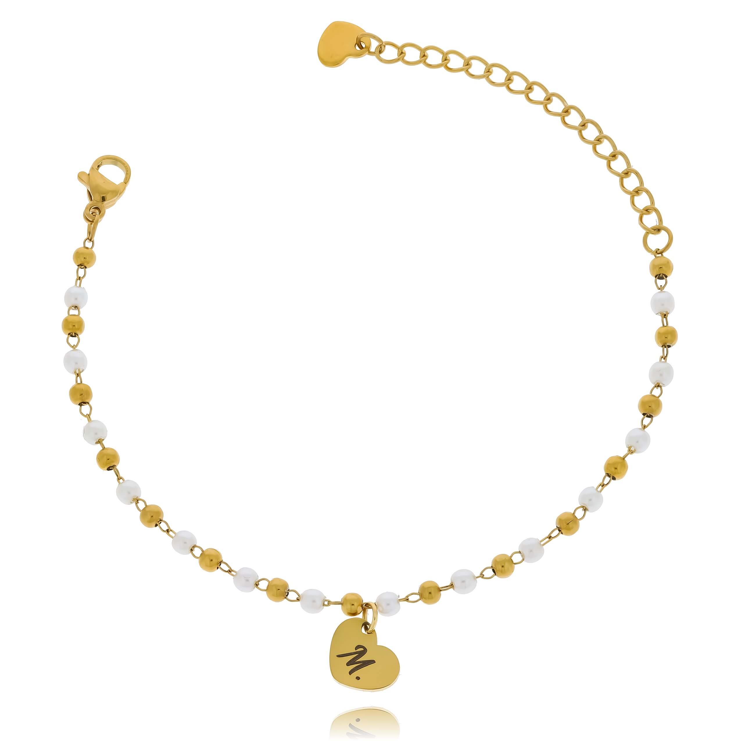 BRANSOLETKA POZŁACANA SERCE Z INICJAŁEM PERSONALIZACJA POZŁACANA STAL CHIRURGICZNA PREZENT DLA NIEJ