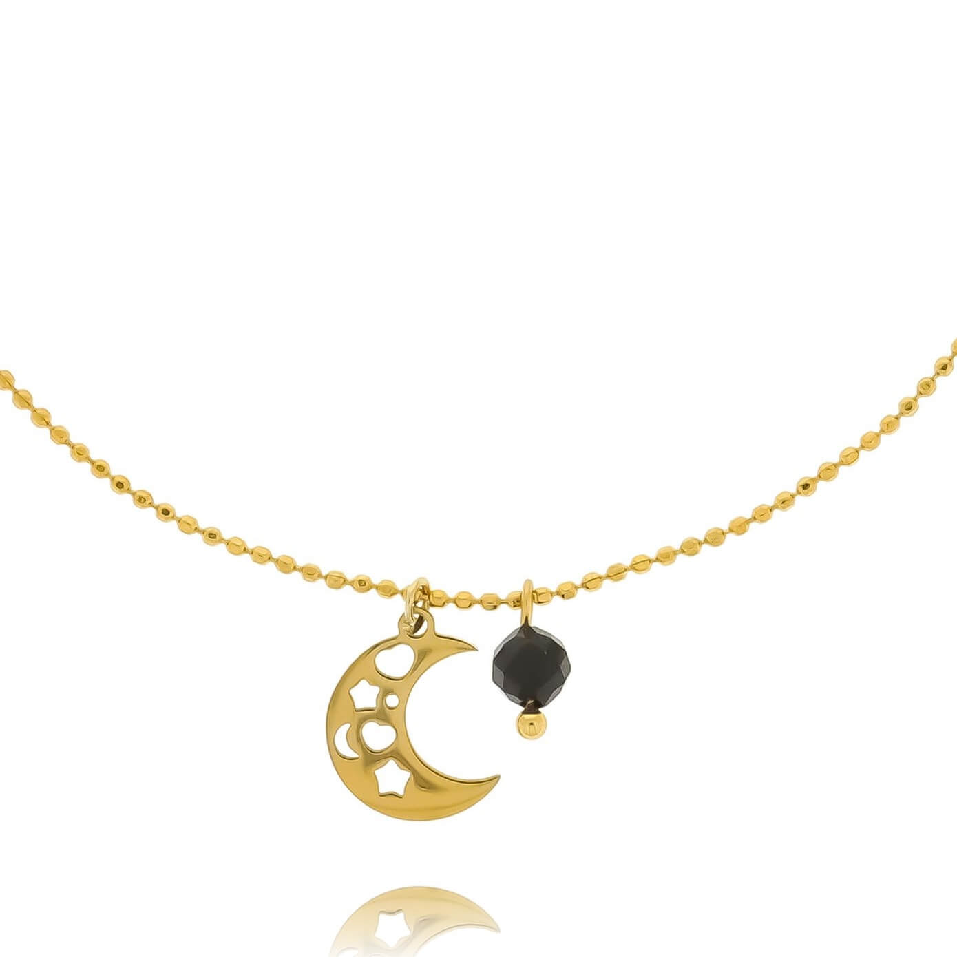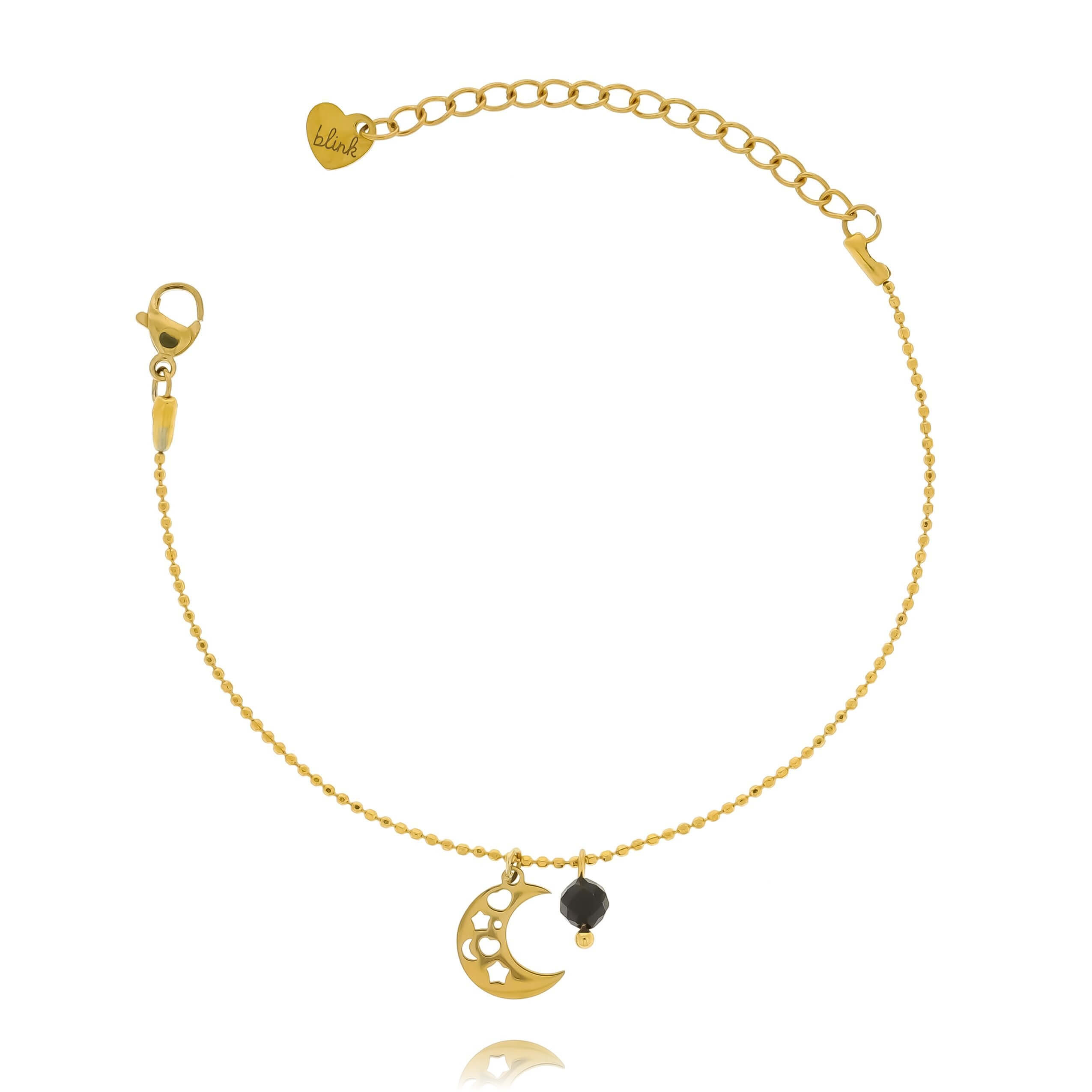 Bransoletkę zdobi także misternie wykonany księżyc z wyciętymi gwiazdkami i sercem, który nadaje całości lekkości i symbolicznego charakteru. Klasyczny łańcuszek z kuleczek to ponadczasowy wybór, który doskonale komponuje się zarówno z codziennymi stylizacjami, jak i eleganckimi kreacjami.