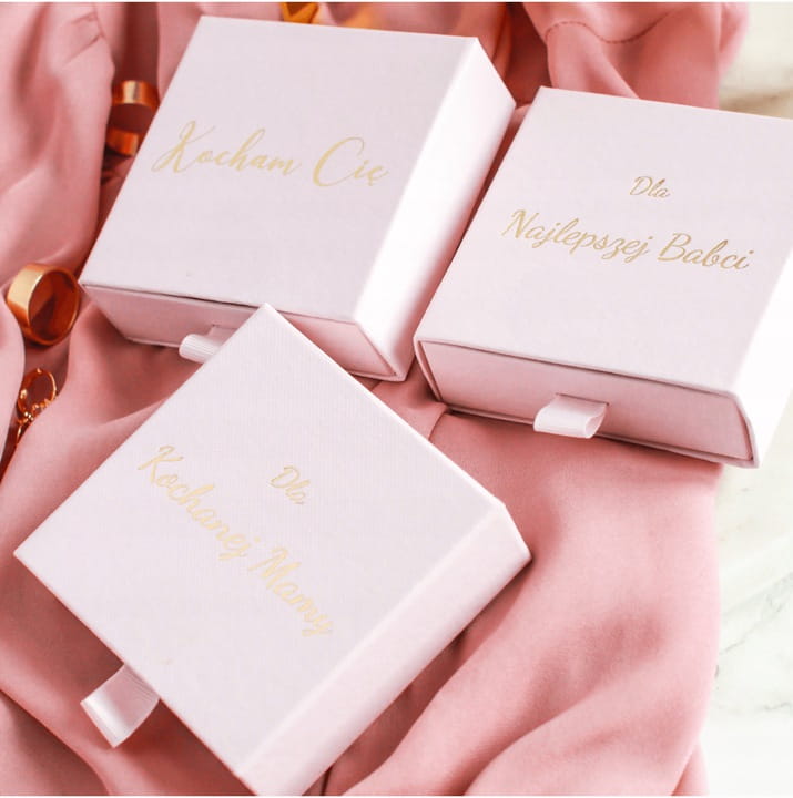 - każdy produkt z pozłacanego srebra jest zapakowany na ozdobną etykietę z logo marki i gotowy do wręczenia jako prezent. Możesz dodatkowo spersonalizować swoje zamówienie o kartkę prezentową z wybraną przez Ciebie dedykacją. Podczas składania zamówienia podaj jej numer w komentarzu. Potrzebujesz czegoś więcej? Wybierz jedno z wysokiej jakości pudełek jubilerskich z ozdobnym, złoconym napisem.