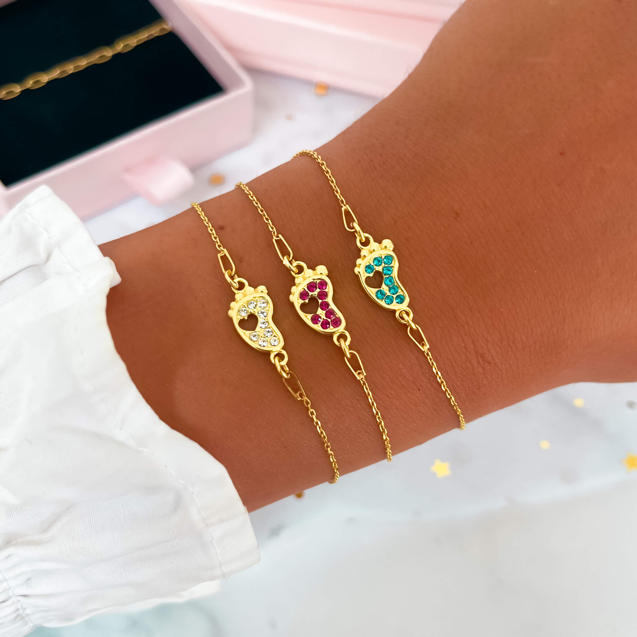 BRANSOLETKA SREBRO POZŁACANE PRÓBA 925 STÓPKA WYSADZANA BŁĘKITNYMI KRYSZTAŁKAMI PRECIOSA PREZENT DLA MAMY