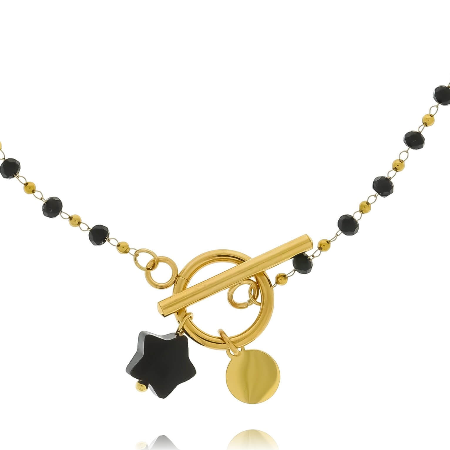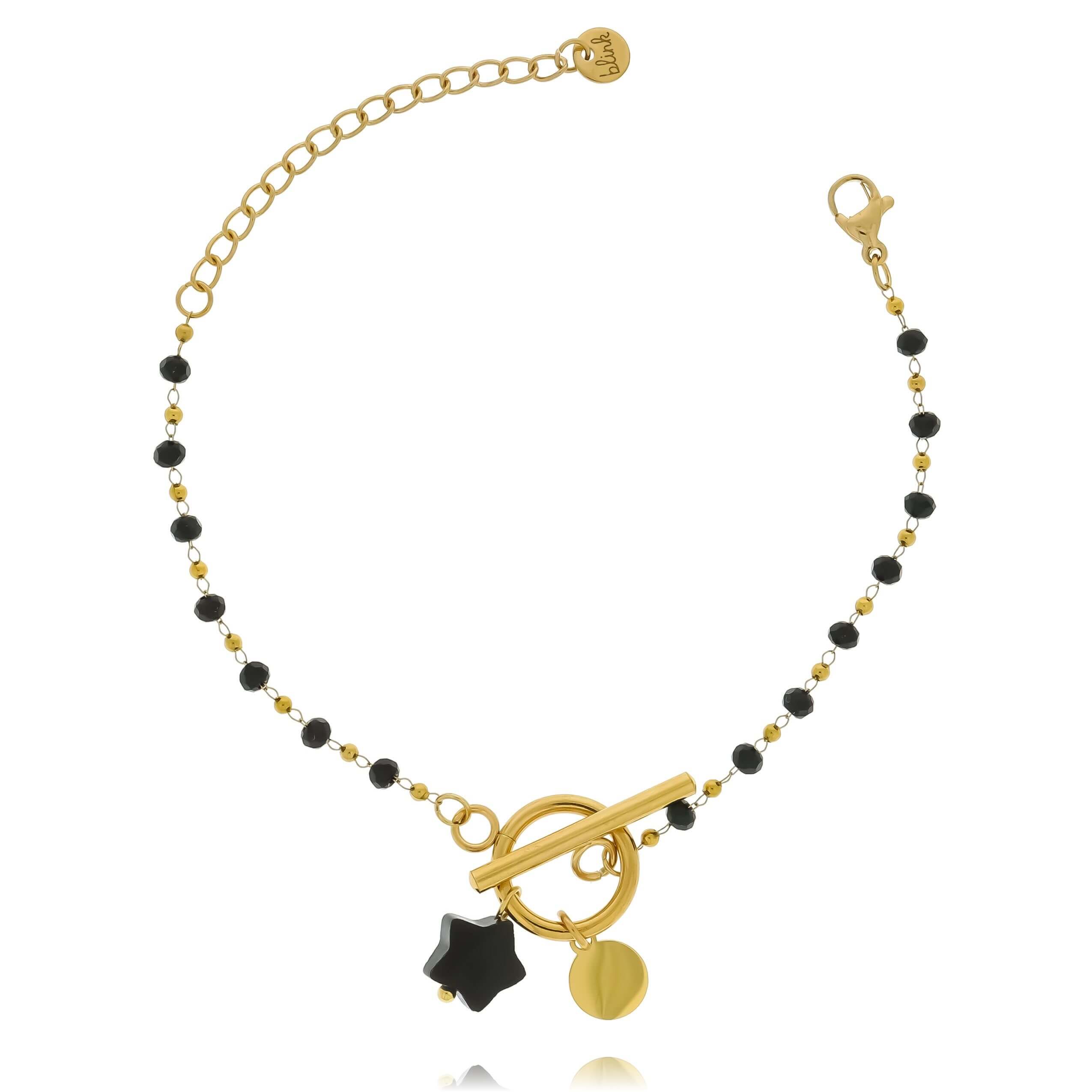 BRANSOLETKA STAL CHIRURGICZNA POZŁACANA KORALIKI OZDOBNE ZAPIĘCIE TOGGLE GWIAZDKA Z ONYKSU