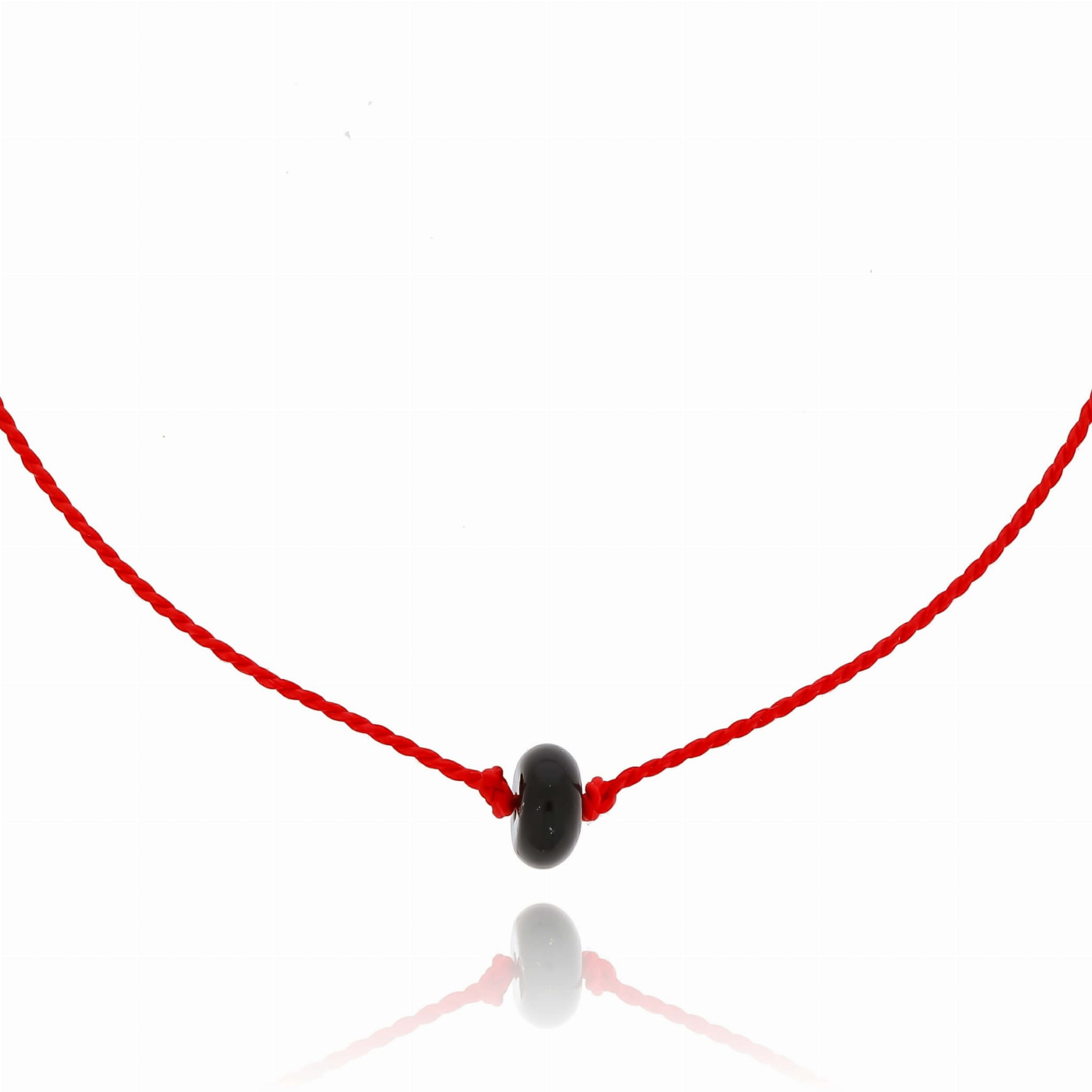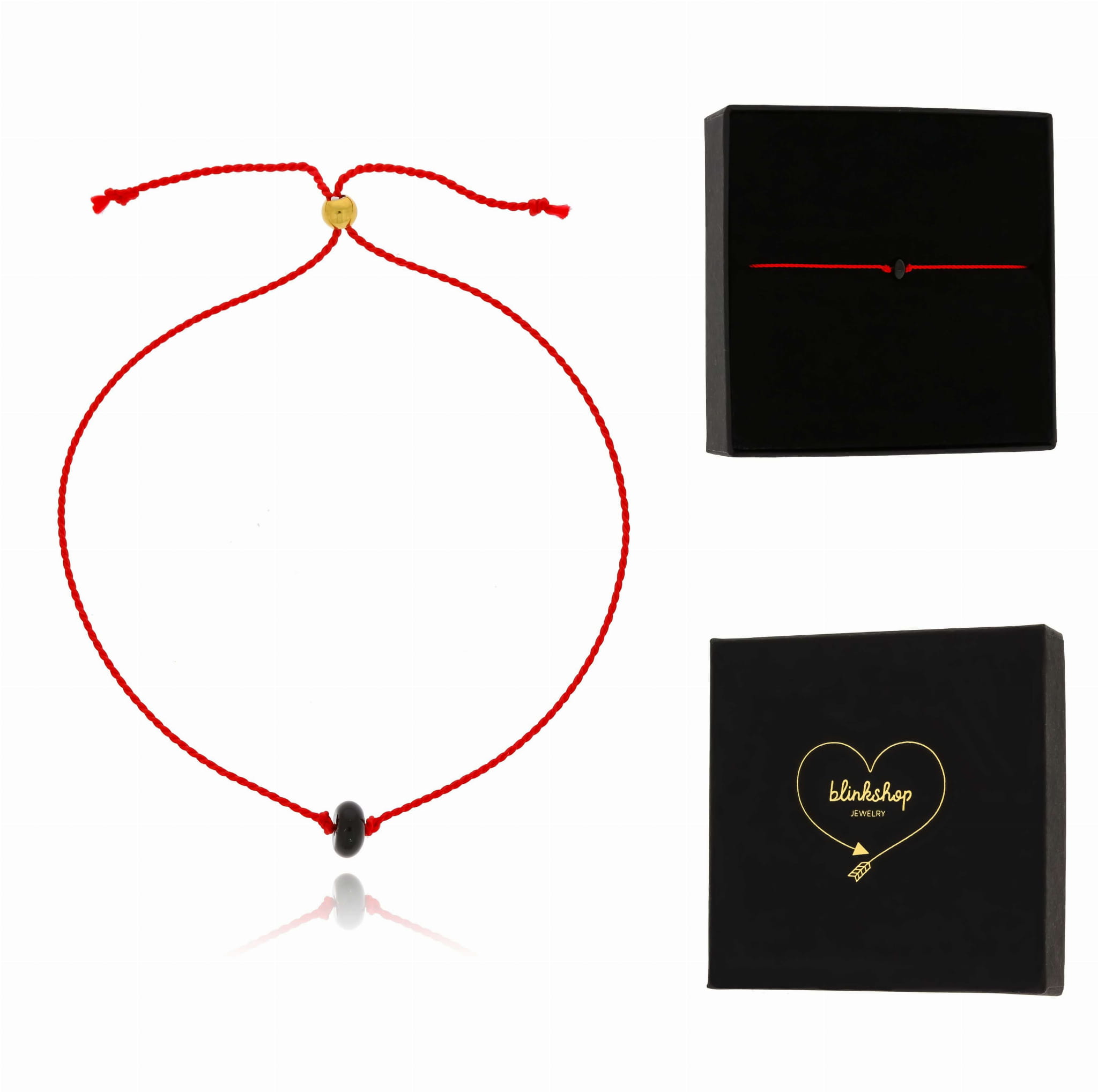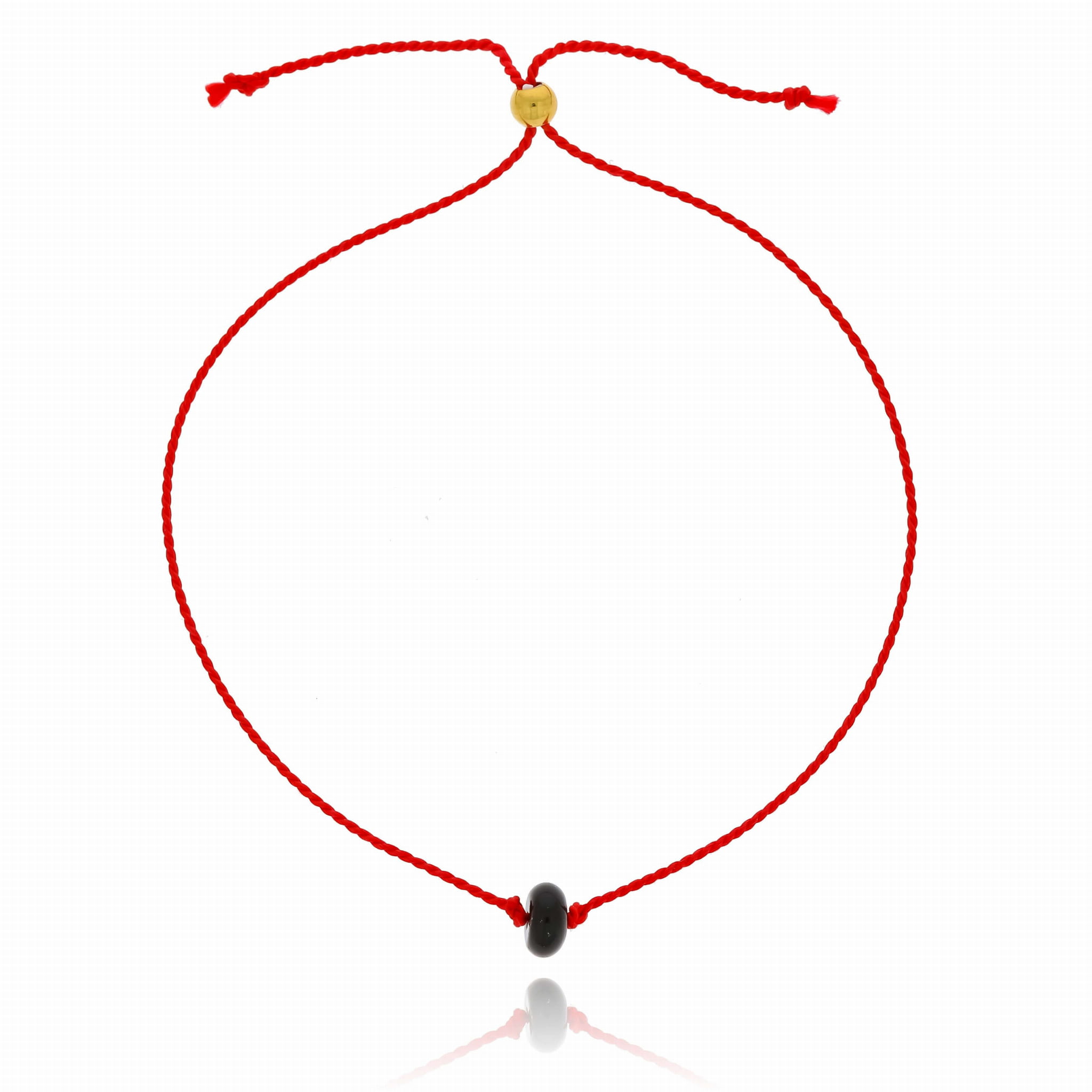 BRANSOLETKA STAL KAMIEŃ TURMALIN JEDWABNA NIĆ KOLOR CZERWONY