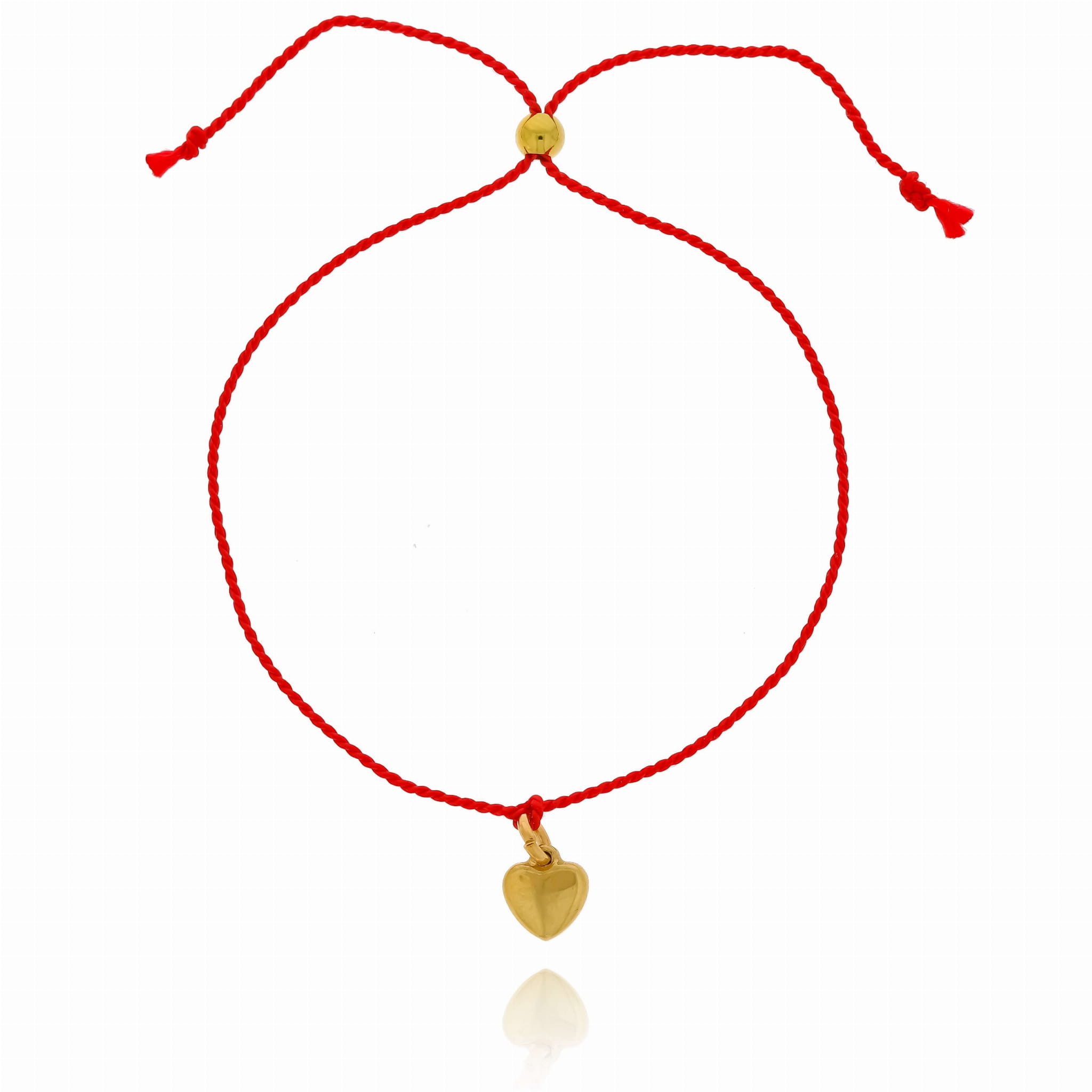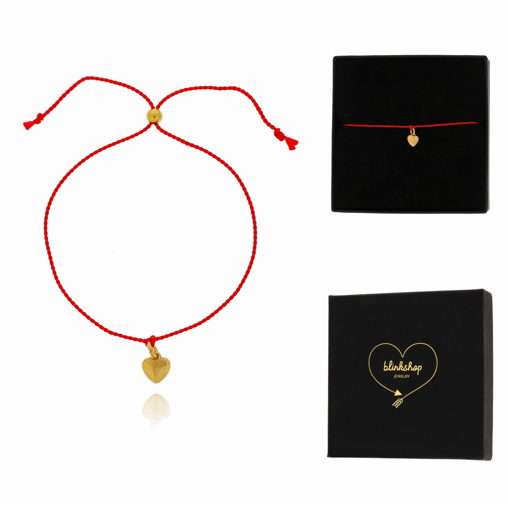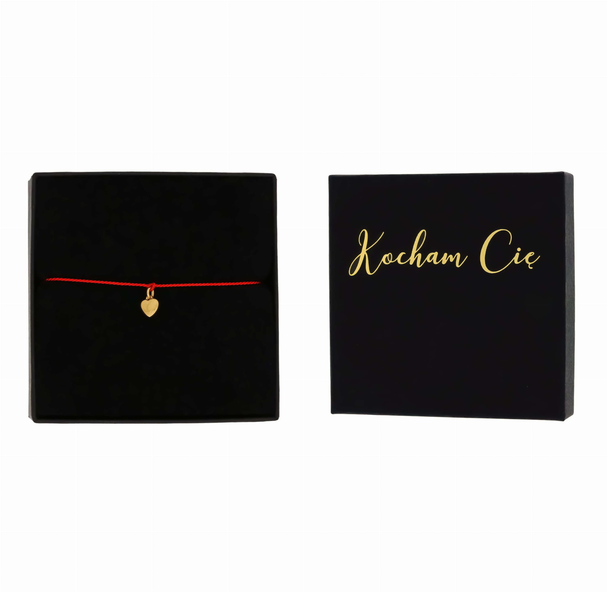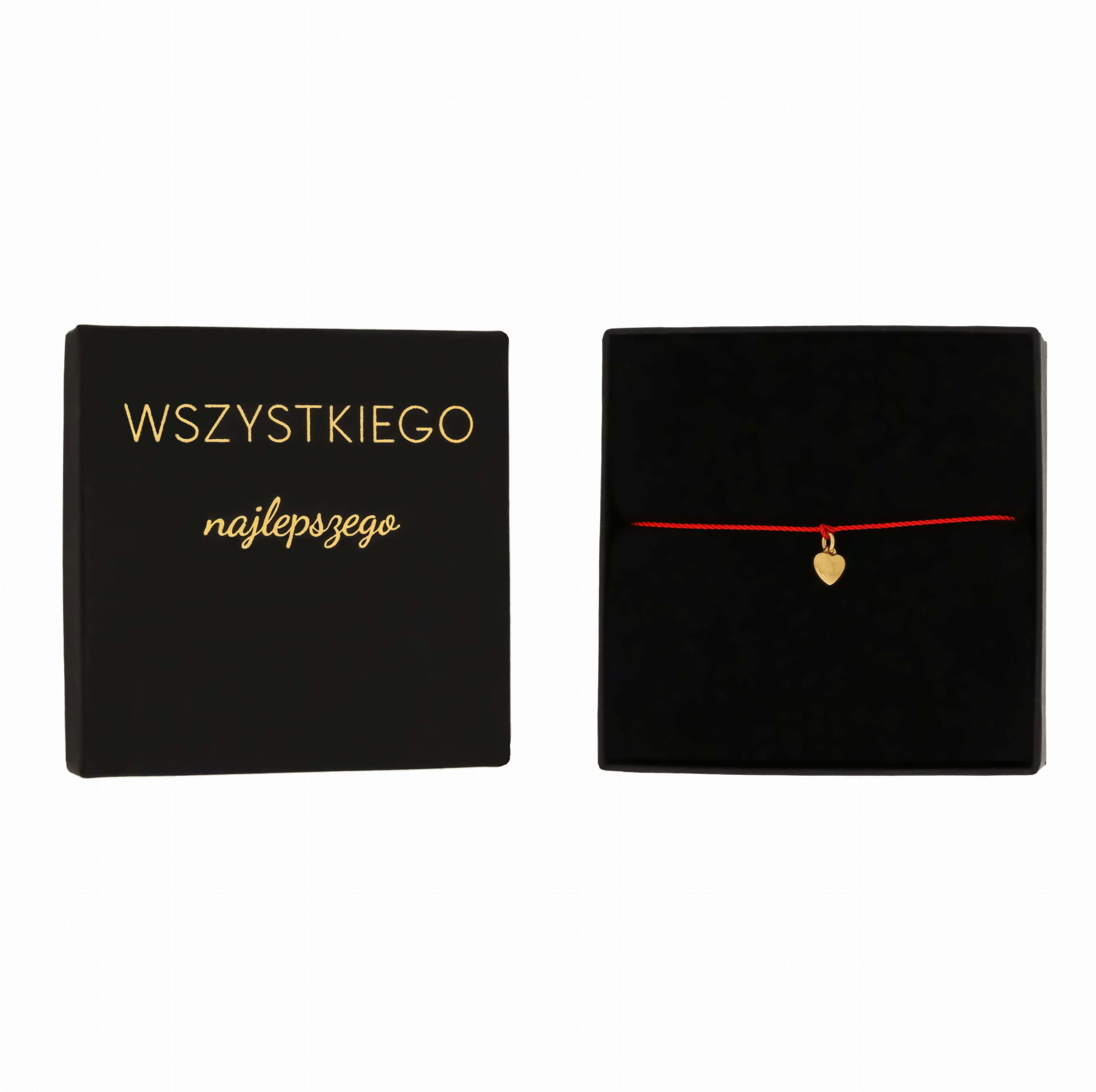 BRANSOLETKA STAL POZŁACANE SERCE JEDWABNA NIĆ KOLOR CZERWONY