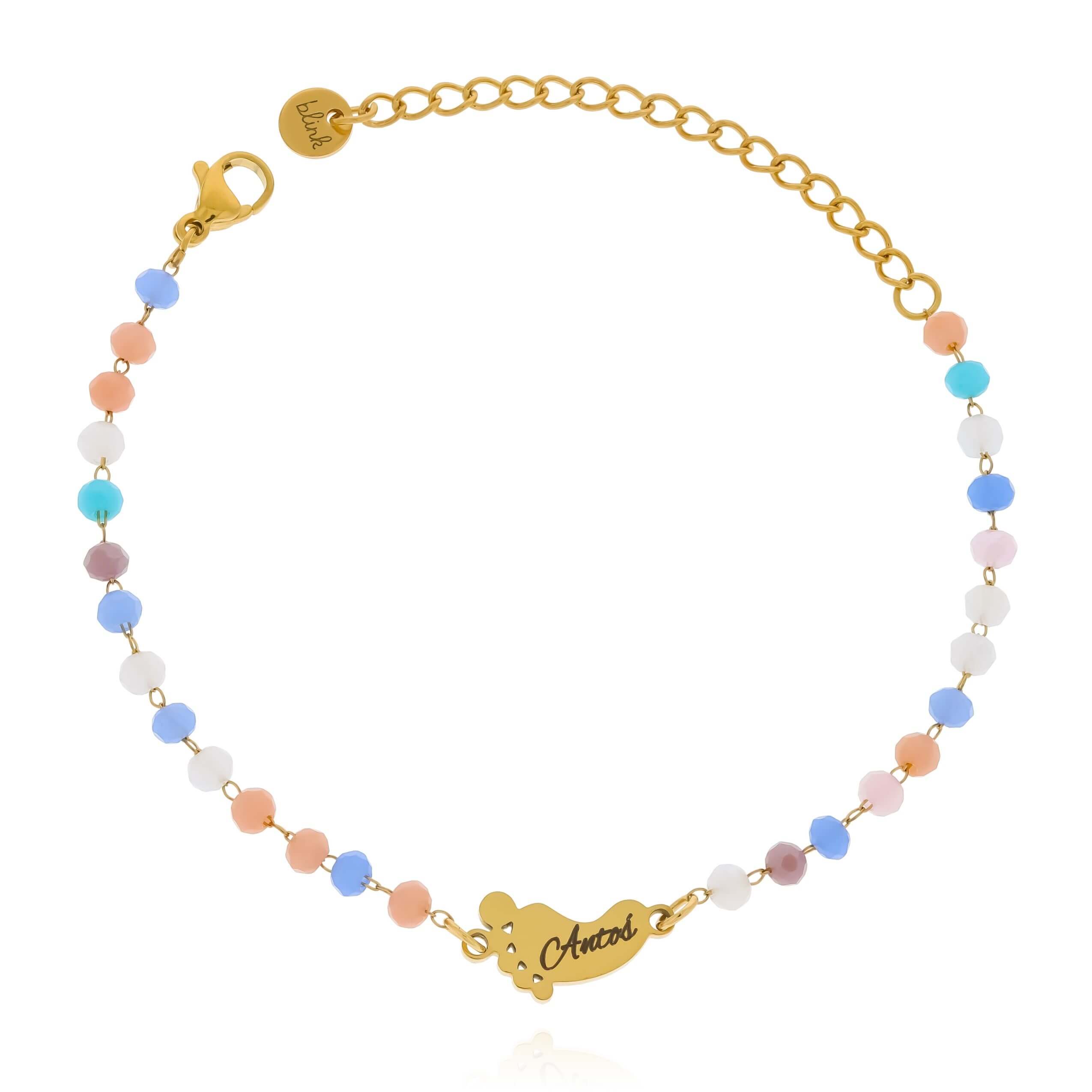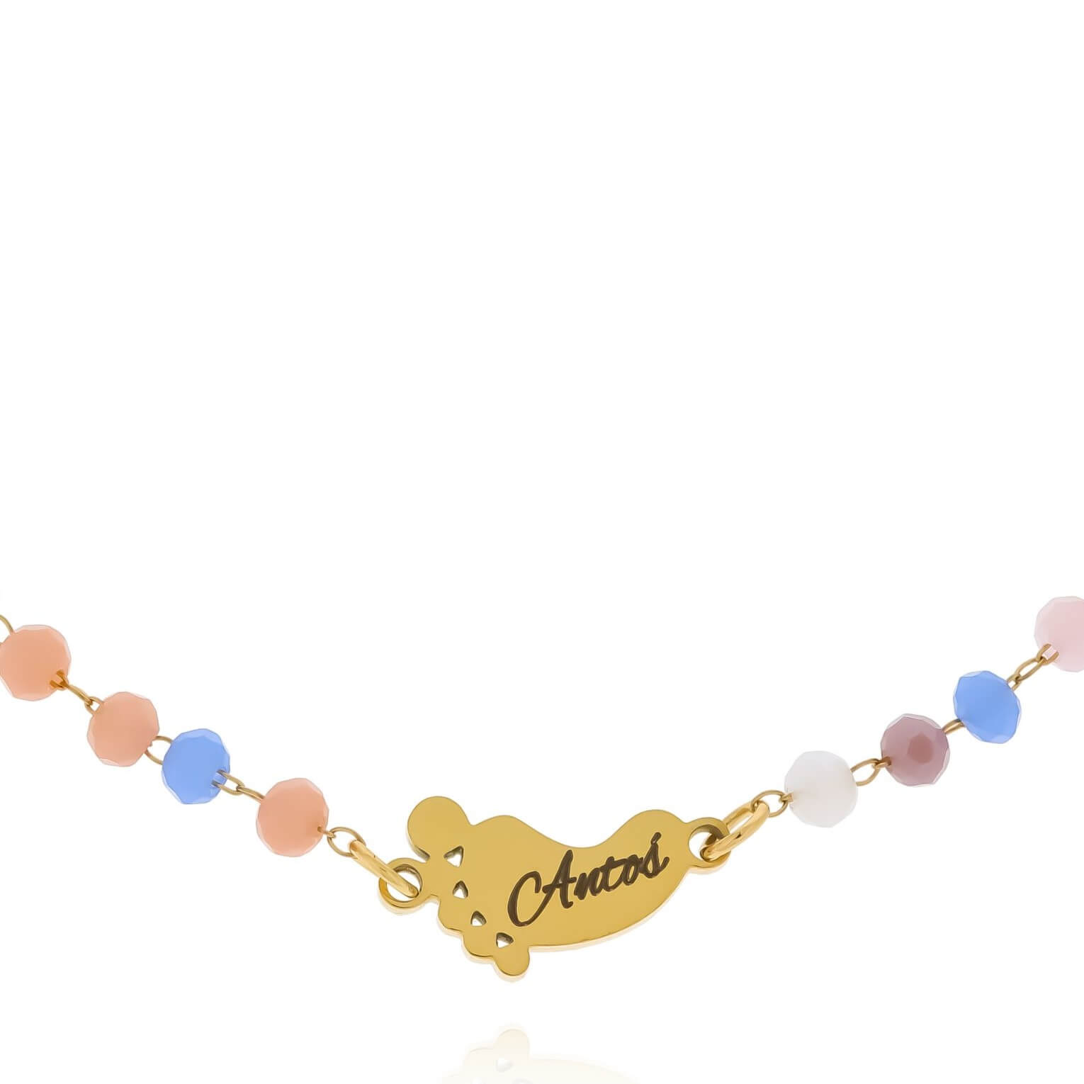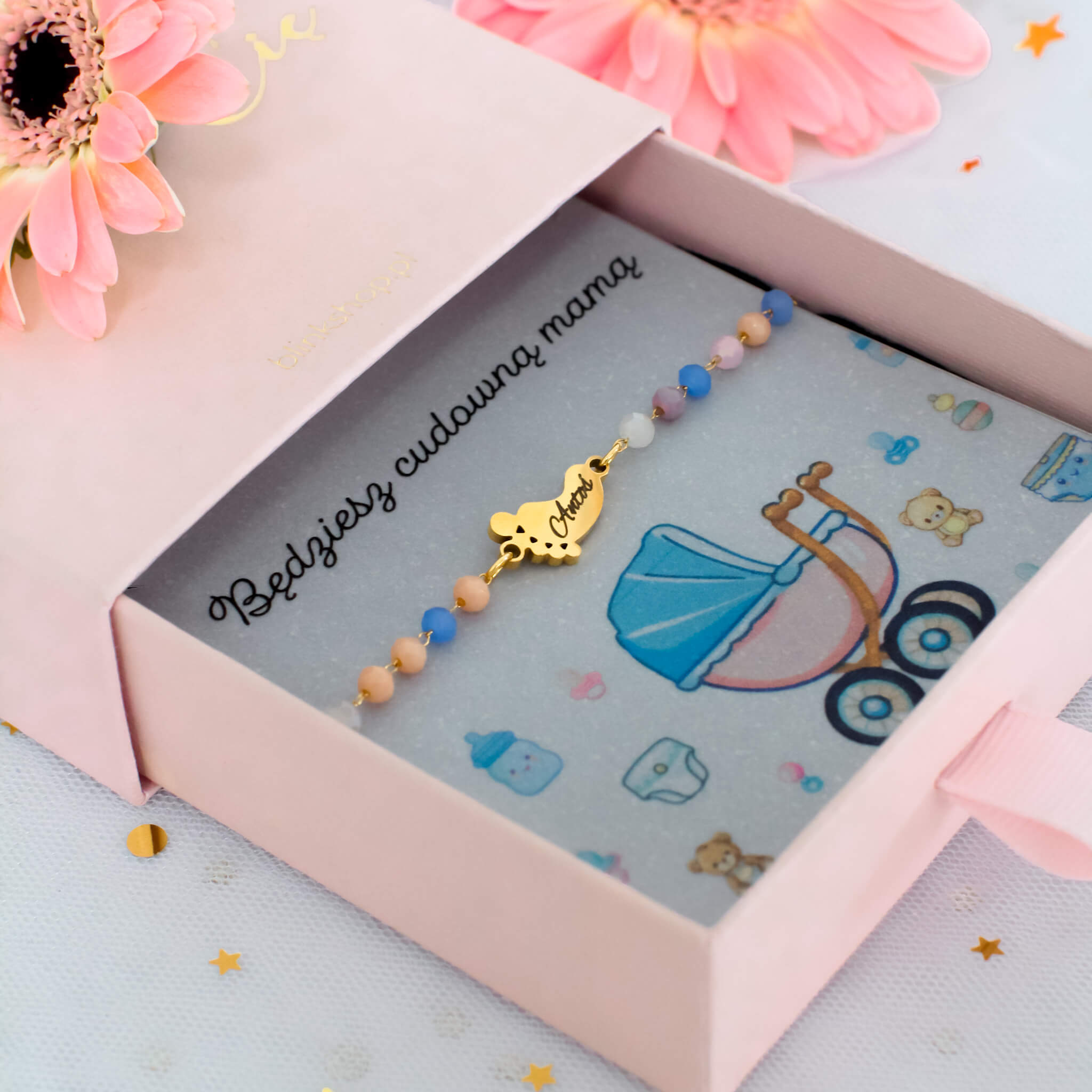 BRANSOLETKA STÓPKA Z GRAWEREM PREZENT DLA MAMY ZE STALI CHIRURGICZNEJ BŁĘKITNE KORALIKI