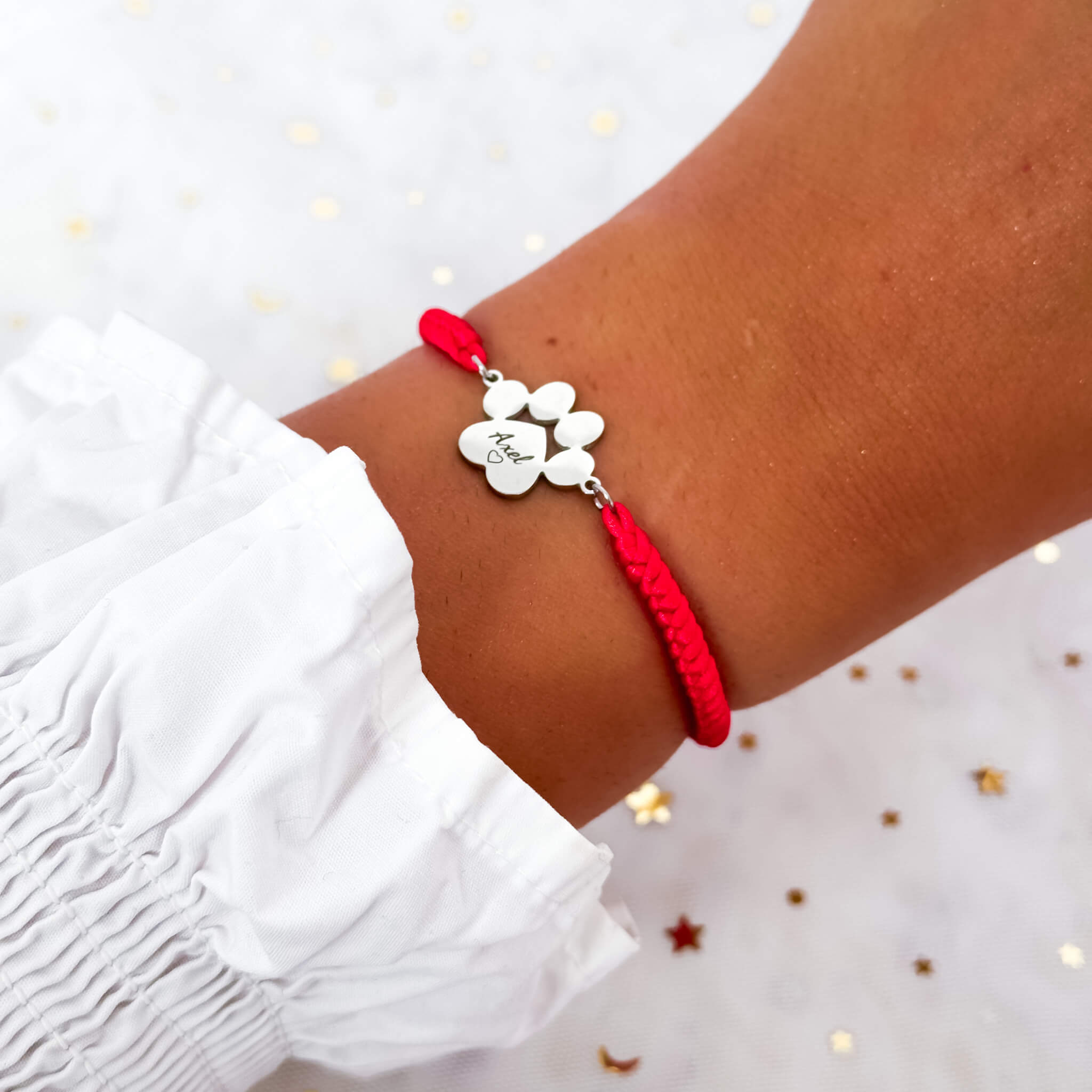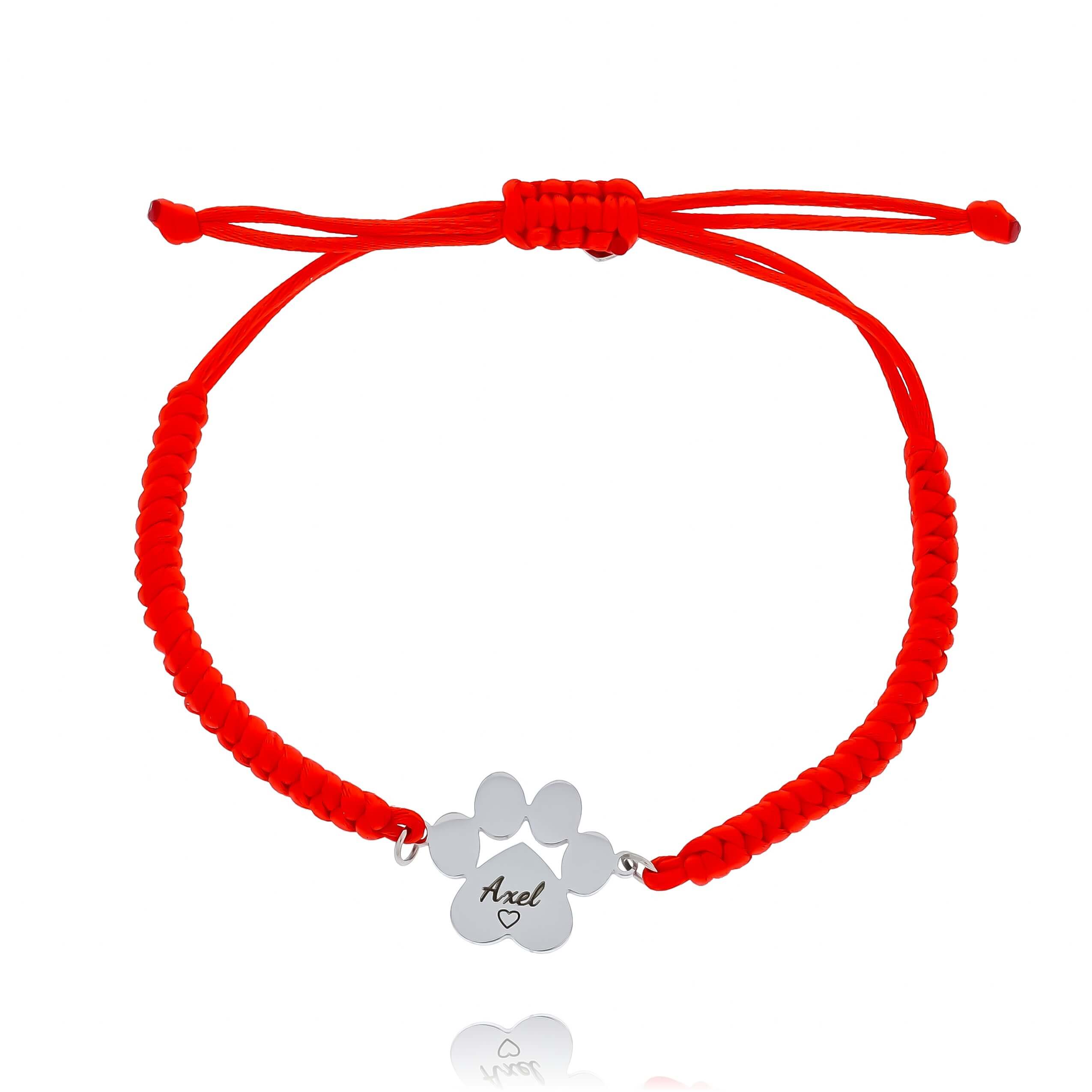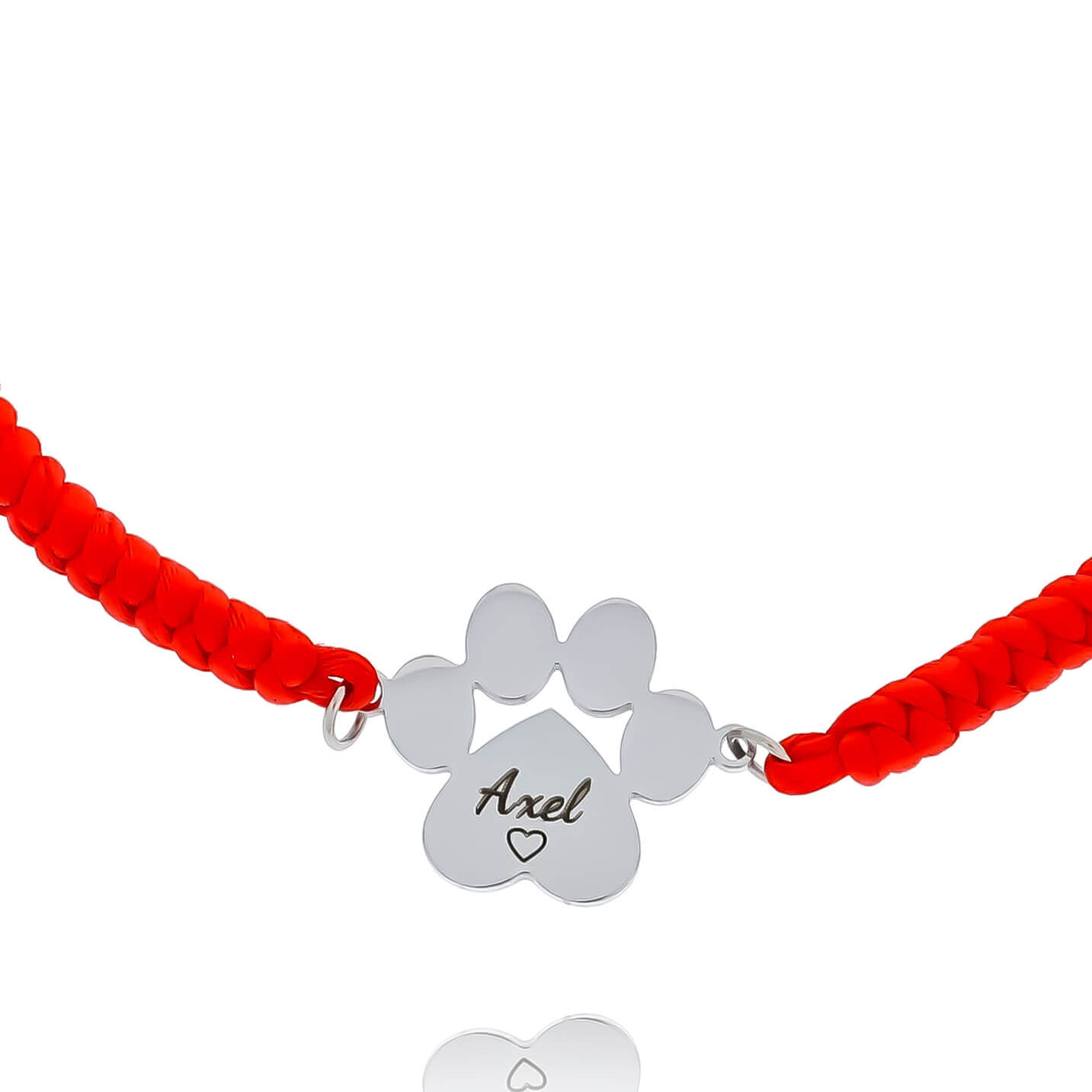 ♡Elegancka bransoletka sznurkowa w kolorze czerwonym ze stali chirurgicznej 316L z zawieszką w kształcie łapki z grawerem imienia to niezwykle oryginalny dodatek, który podkreśla wyjątkową więź ze swoim pupilem. To biżuteria stworzona z myślą o osobach, które chcą mieć przy sobie symbol miłości do swojego zwierzaka.