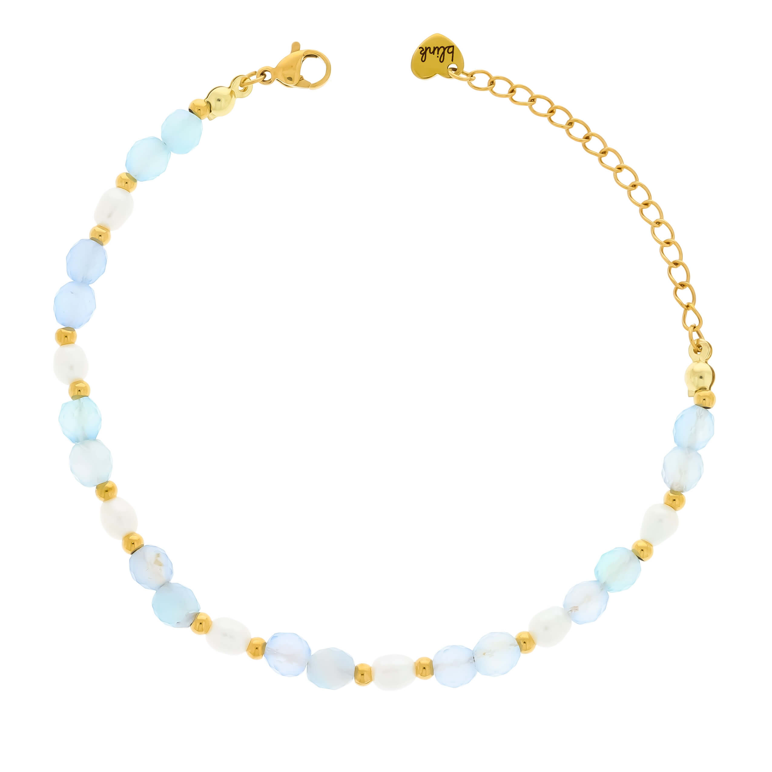 Bazę bransoletki stanowi pozłacana stal chirurgiczna 316L, materiał ceniony w jubilerstwie za swoją trwałość i odporność. Stal jest odporna na wodę, zarysowania oraz utratę koloru, a dodatkowo jest hipoalergiczna, dzięki czemu bransoletka jest komfortowa nawet dla osób o wrażliwej skórze.