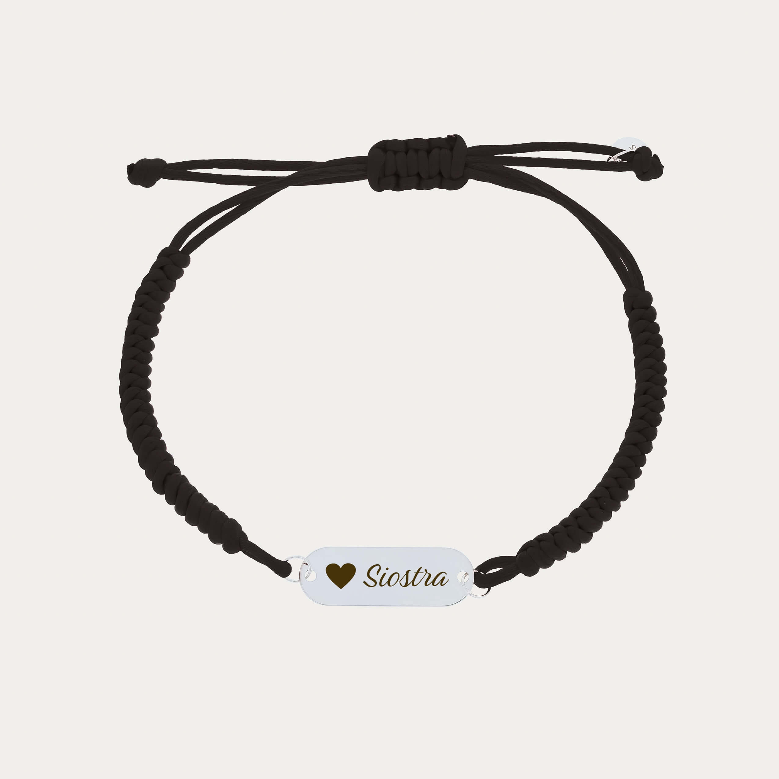 BRANSOLETKA Z BLASZKĄ Z GRAWEREM – SREBRO PRÓBY 925 NA CZARNYM SZNURKU