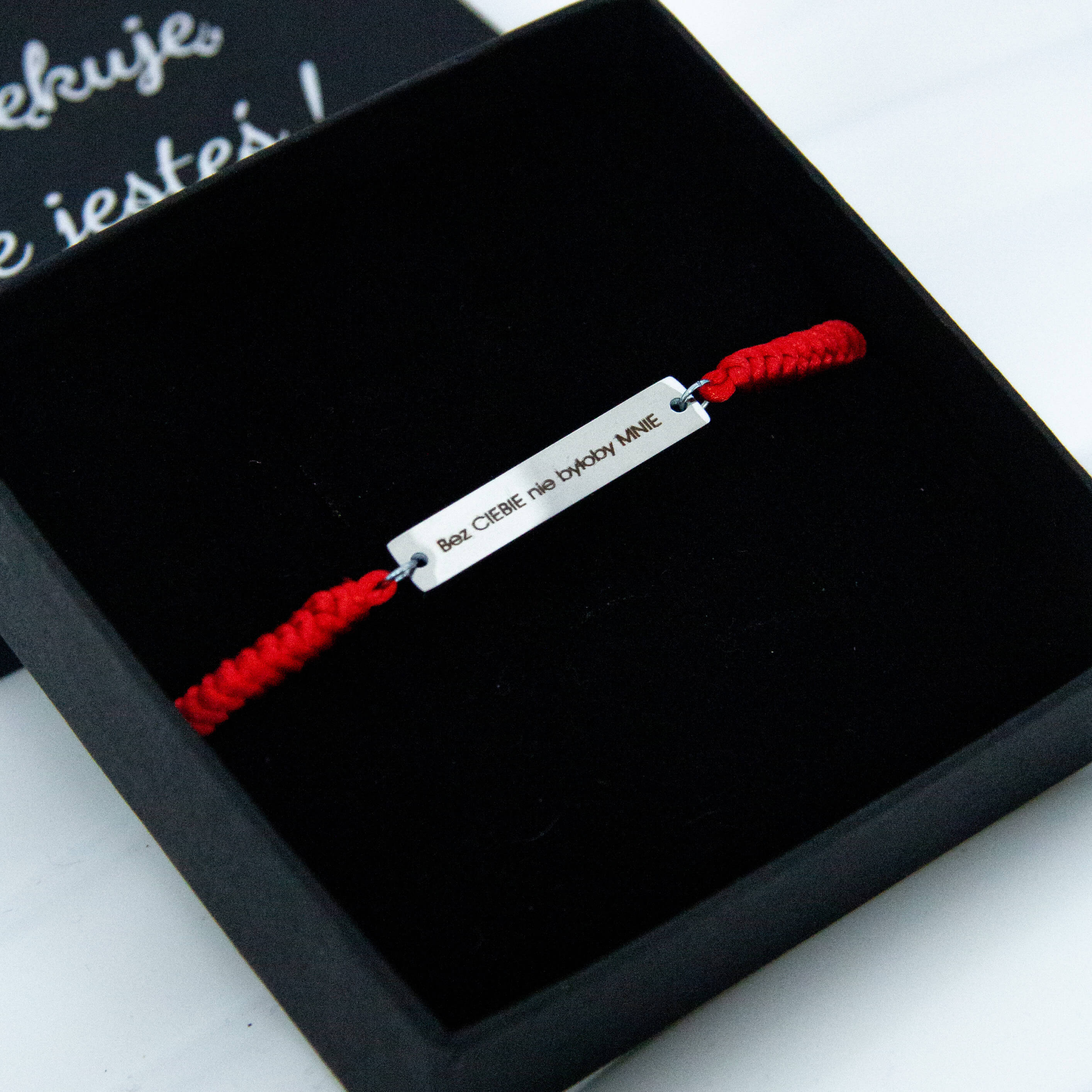 uwagi: bransoletkę możemy wykonać na czarnym bądź czerwonym sznurku i ze złotą bądź srebrną blaszką ze stali szlachetnej - prosimy o podanie tych informacji w uwagach podczas składania zamówienia