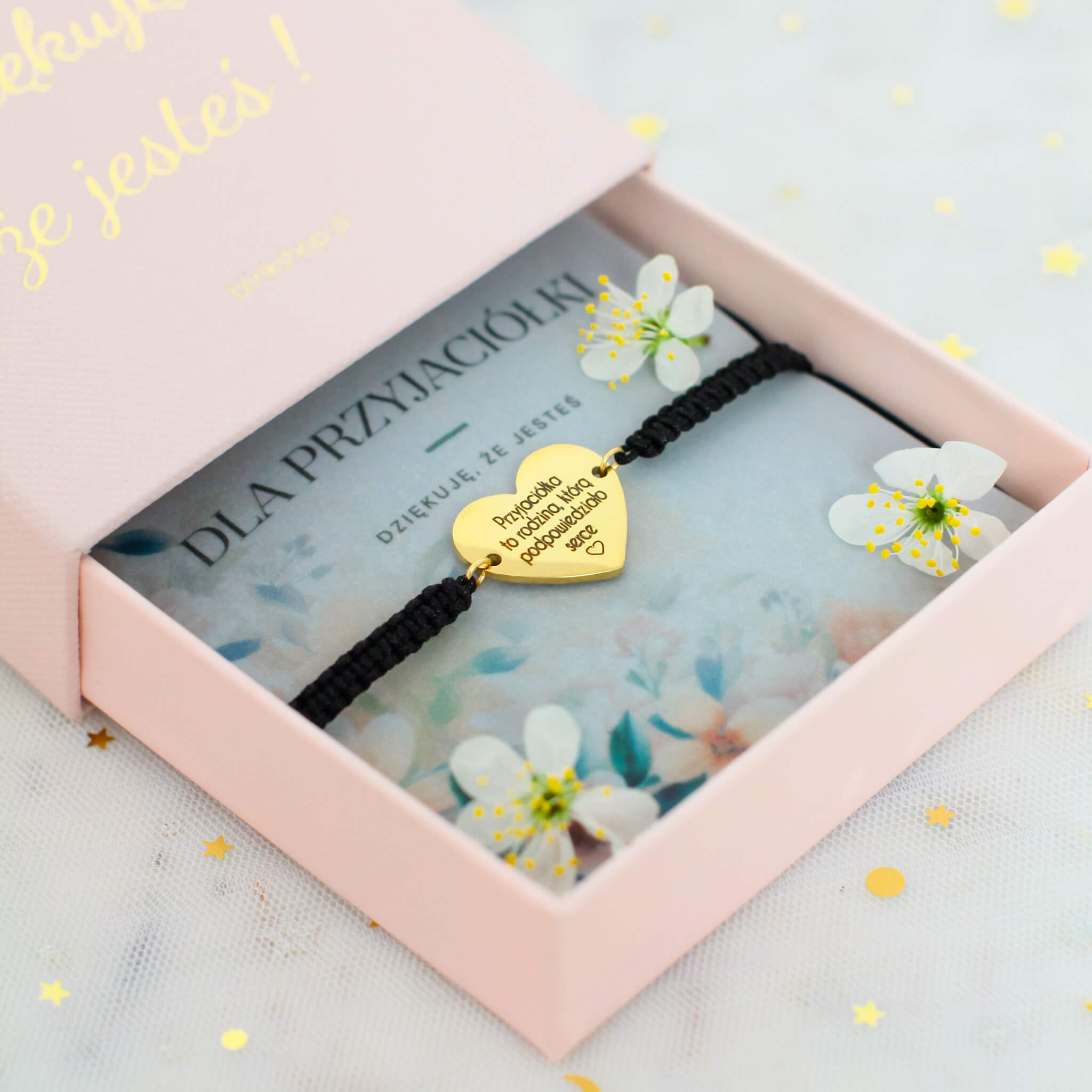 BRANSOLETKA Z GRAWEREM NA SZNURKU DLA PRZYJACIÓŁKI POZŁACANA STAL CHIRURGICZNA