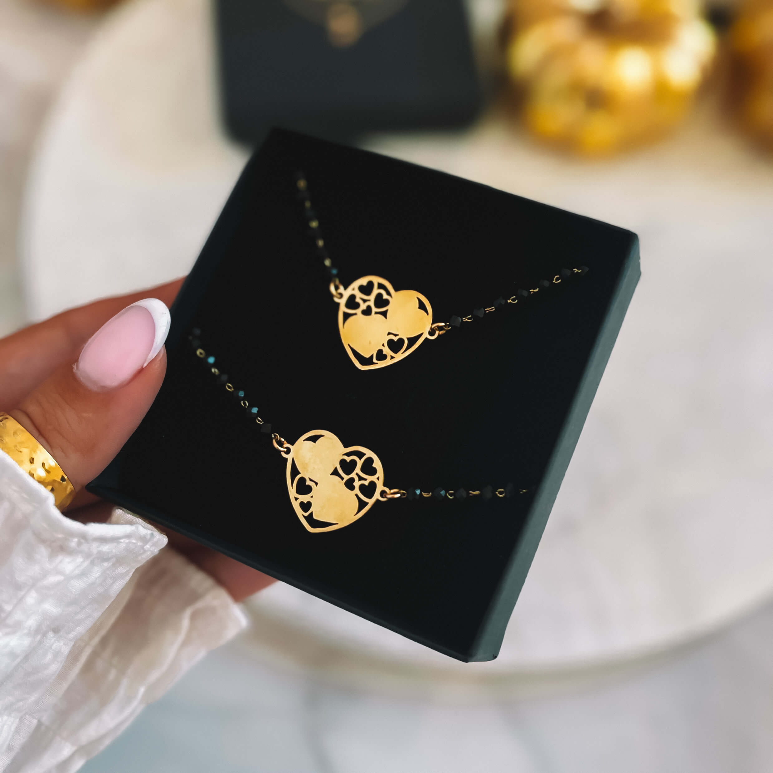 Chcesz żeby Twój prezent był wyjątkowy? Skorzystaj z naszej usługi pakowania na prezent! Wybierz jedno z pudełek jubilerskich. Dodatkowo bezpłatnie możesz spersonalizować swoje zamówienie o ozdobny kartonik z dedykacją. W komentarzu do zamówienia podaj numer kartki prezentowej z galerii, a my zapakujemy na nią zakupiony produkt. Pakowanie prezentów dla Waszych bliskich to dla nas przyjemność!