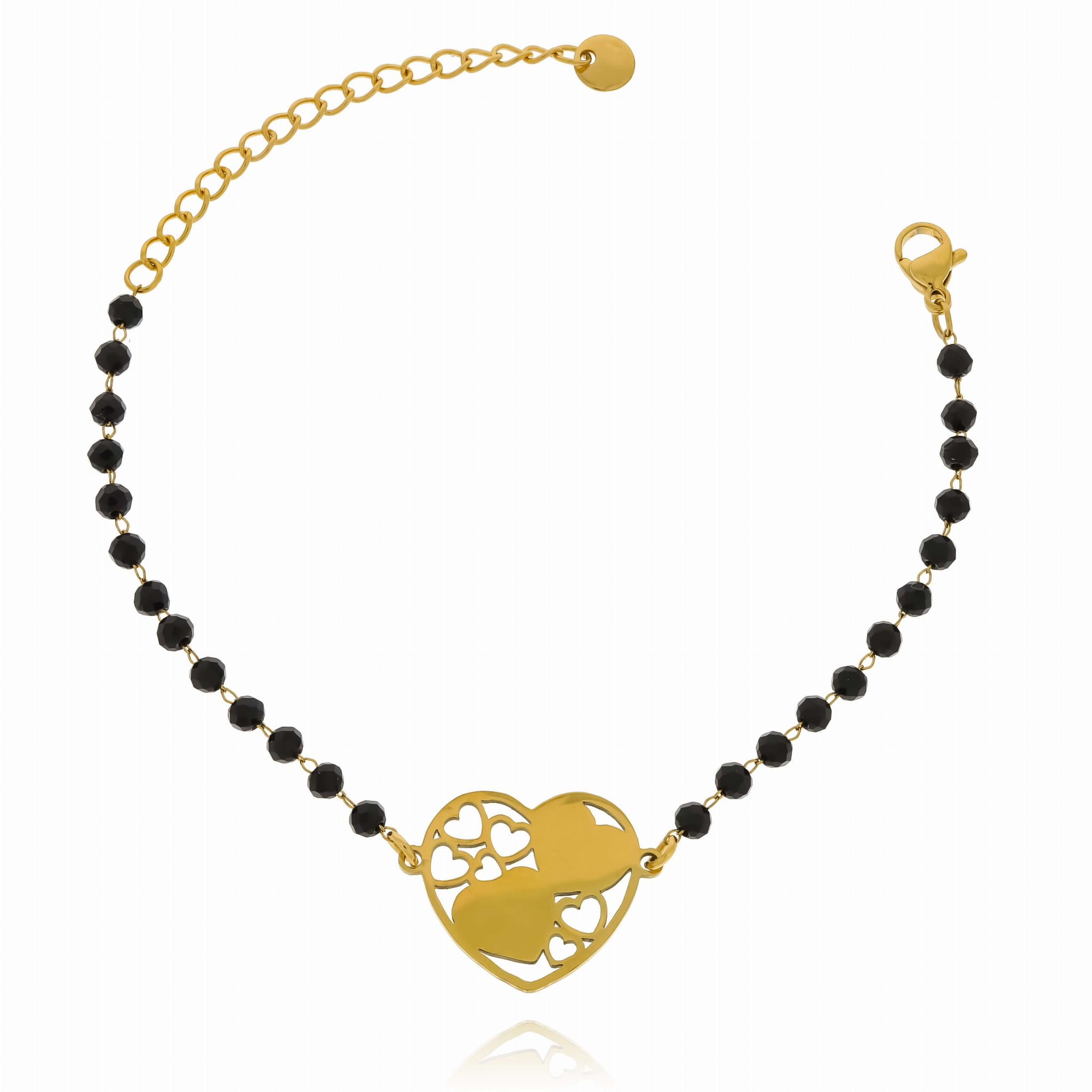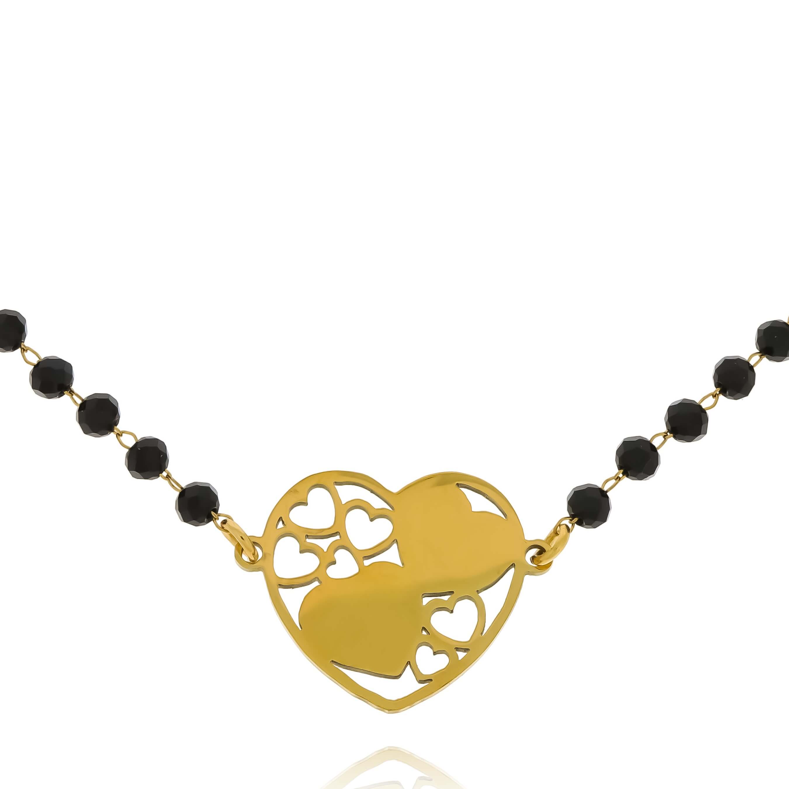 BRANSOLETKA Z SERCEM CZARNE KORALIKI STAL CHIRURGICZNA