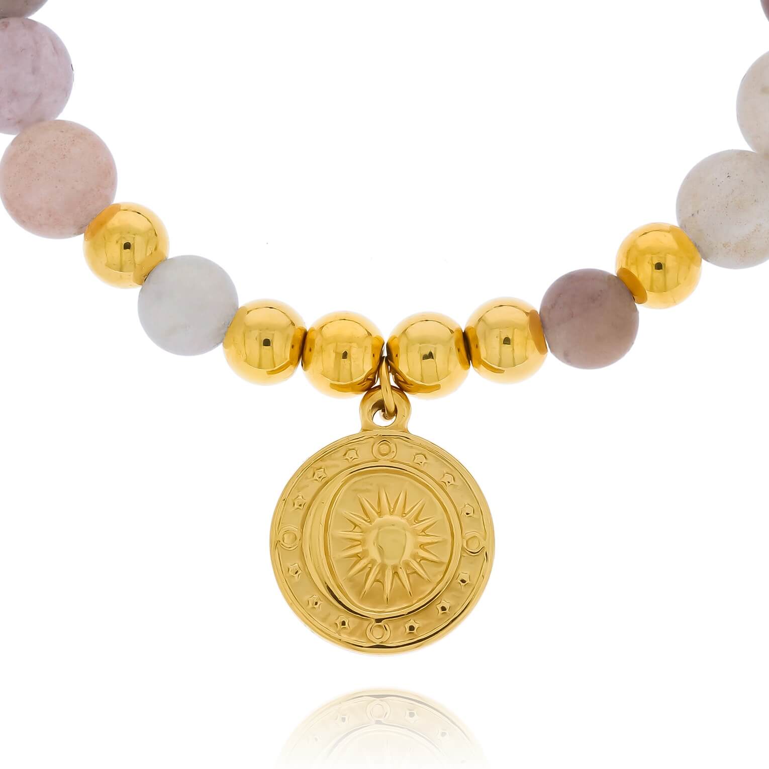 ♡ Powiększ swoją kolekcję modnych dodatków o wyjątkową ręcznie robioną bransoletkę, w której połączyliśmy kamienie naturalne z najwyższej jakości stalą jubilerską, nazywaną też stalą chirurgiczną. Dzięki wykorzystaniu autentycznych minerałów każda sztuka staje się niepowtarzalna i wyjątkowa. Złote detale ze stali szlachetnej dodają bransoletce elegancji, tworząc efektowny kontrast z głęboką barwą kamieni naturalnych.
