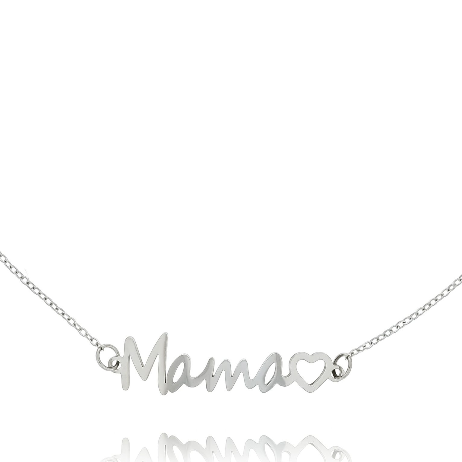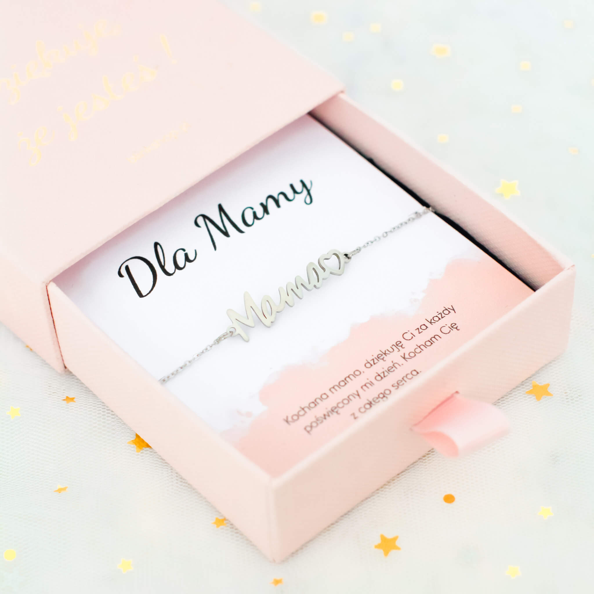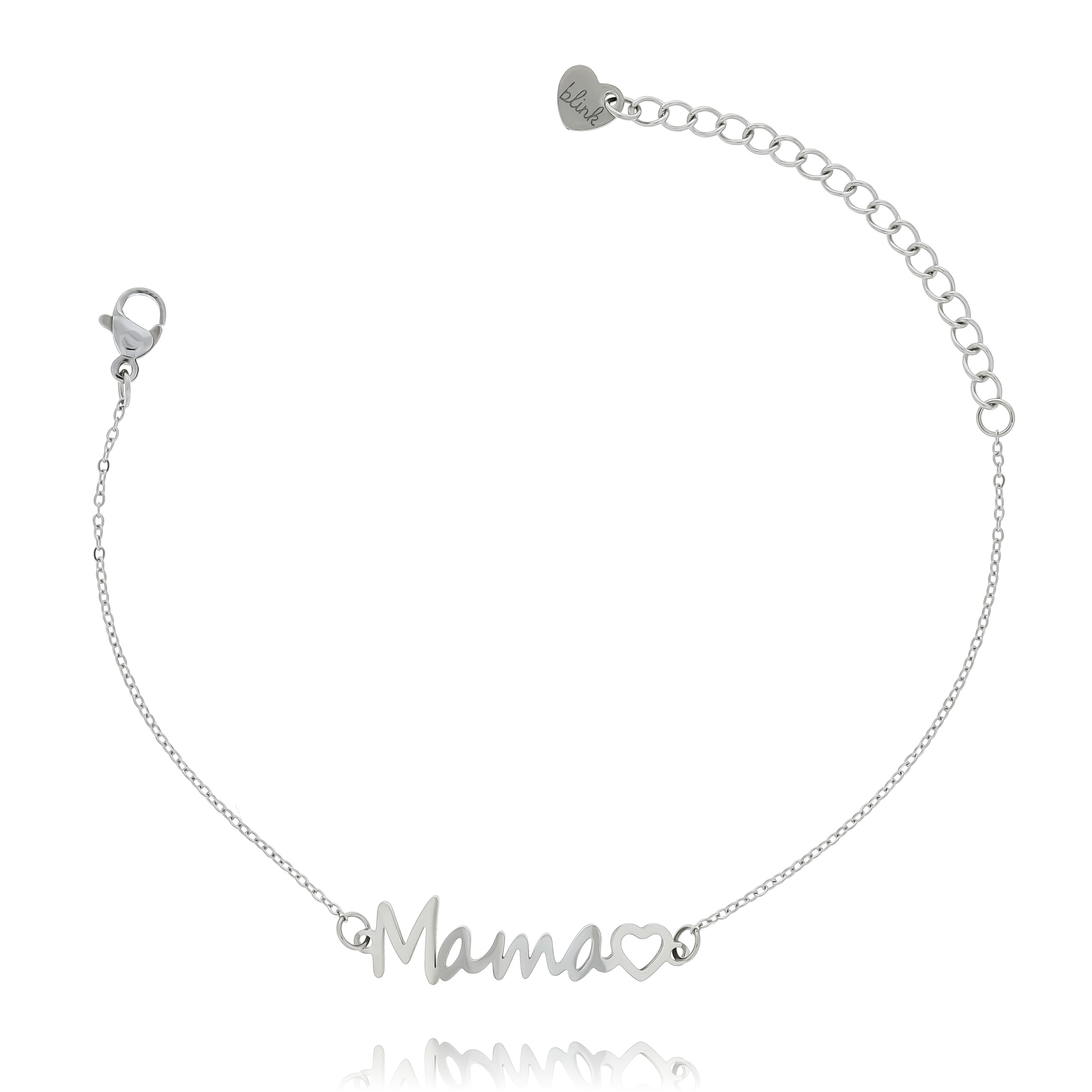 BRANSOLETKA ZE STALI CHIRURGICZNEJ 316L W KOLORZE SREBRNYM Z NAPISEM MAMA I SERCEM – BIŻUTERIA DLA MAMY
