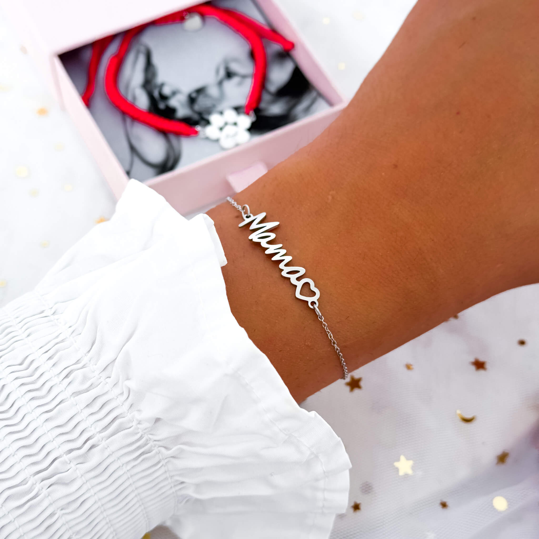 Subtelny i ponadczasowy design z napisem „Mama” oraz serduszkiem sprawia, że bransoletka pięknie podkreśla wyjątkową więź i będzie wyjątkową ozdobą w codziennych stylizacjach
