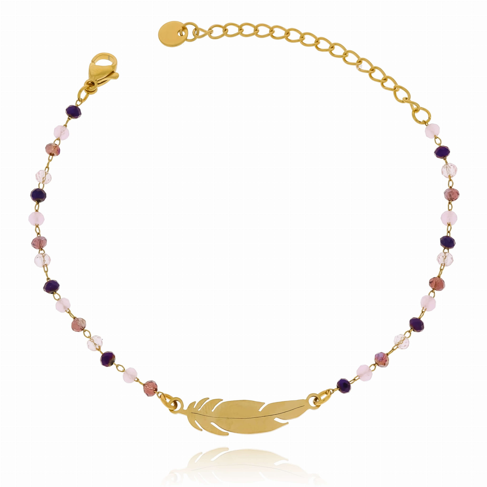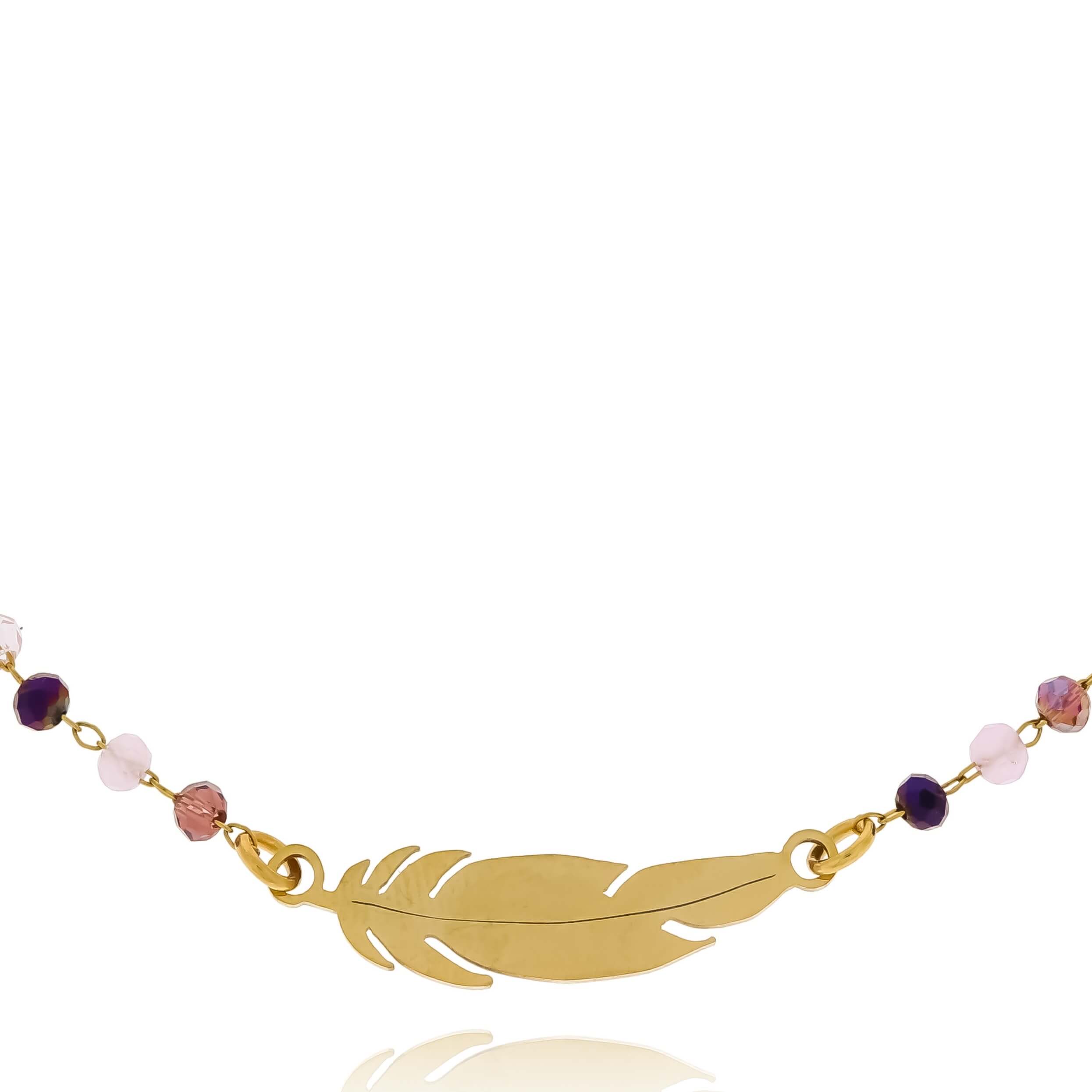 BRANSOLETKA ZE STALI CHIRURGICZNEJ Z PIÓRKIEM RÓŻOWE KORALIKI
