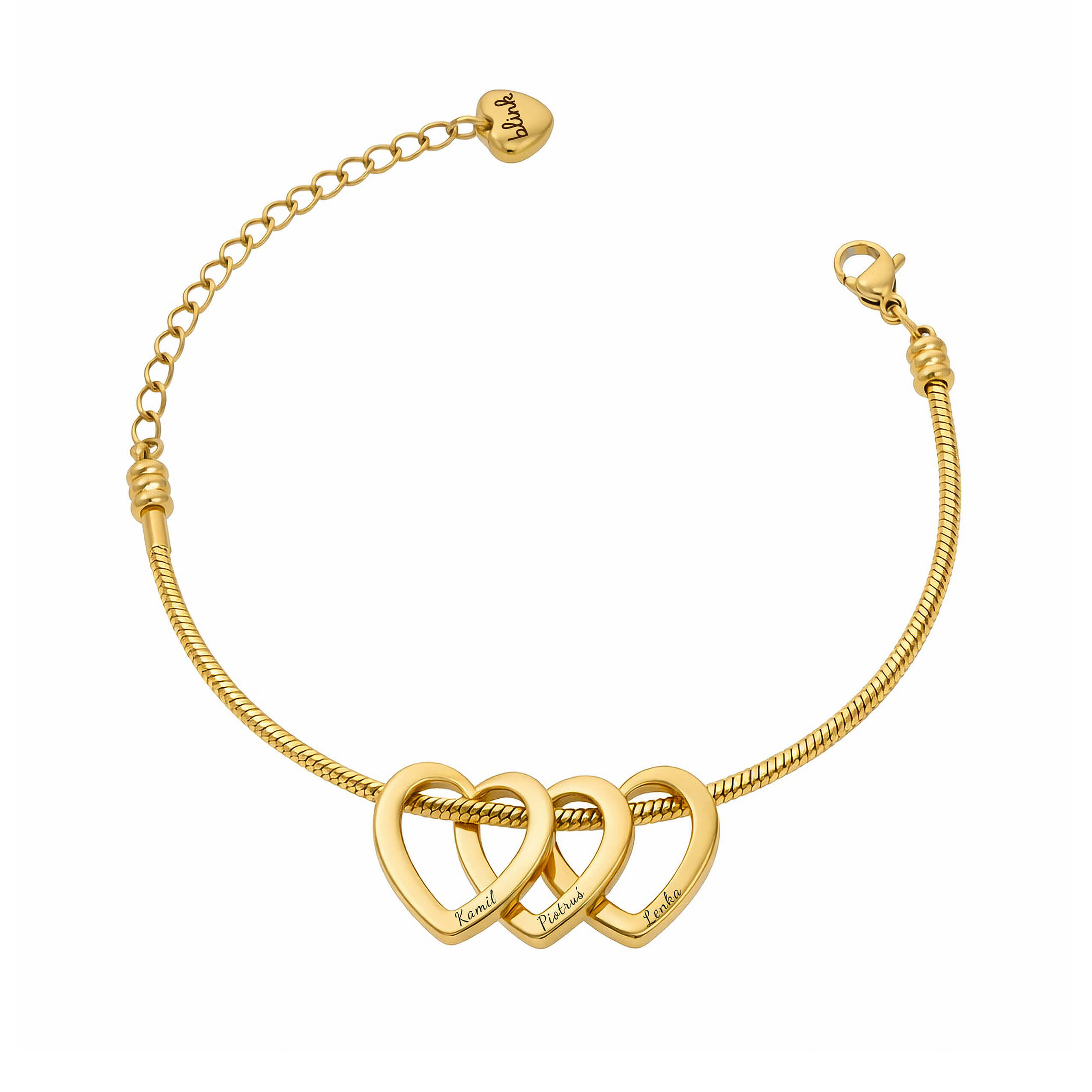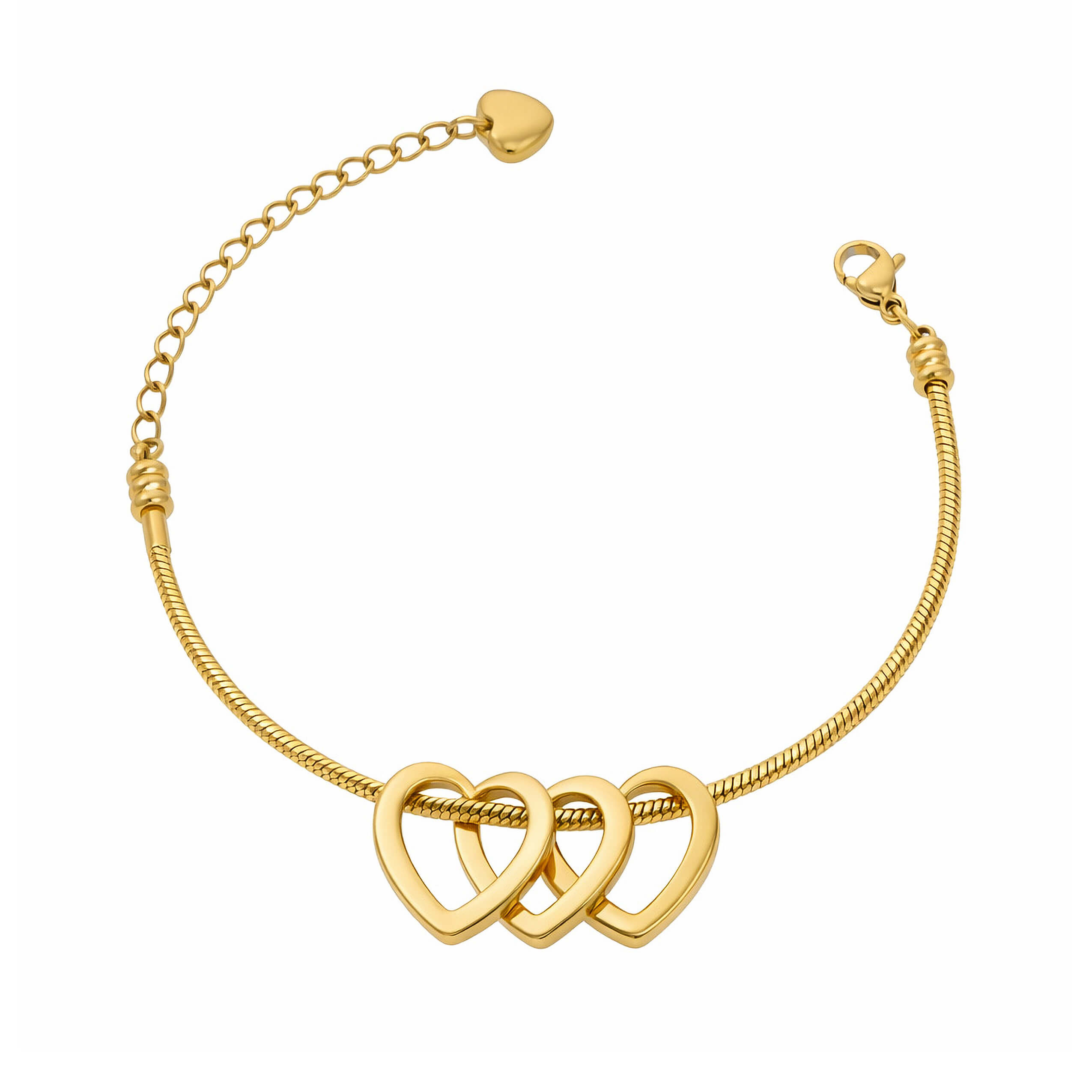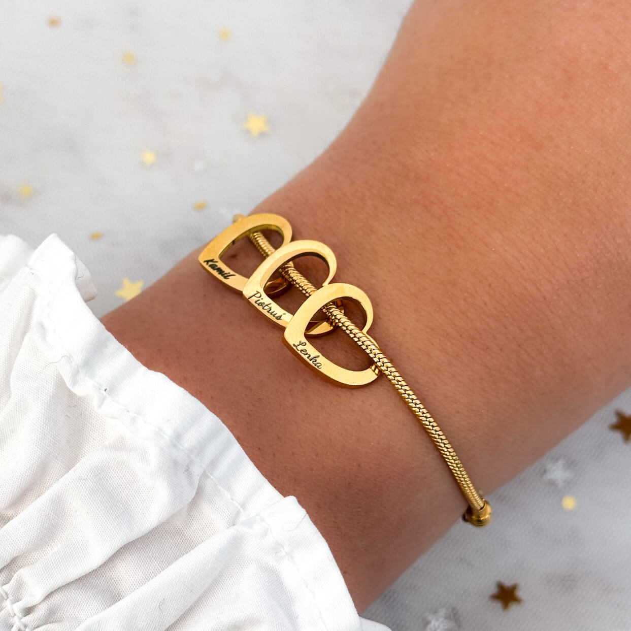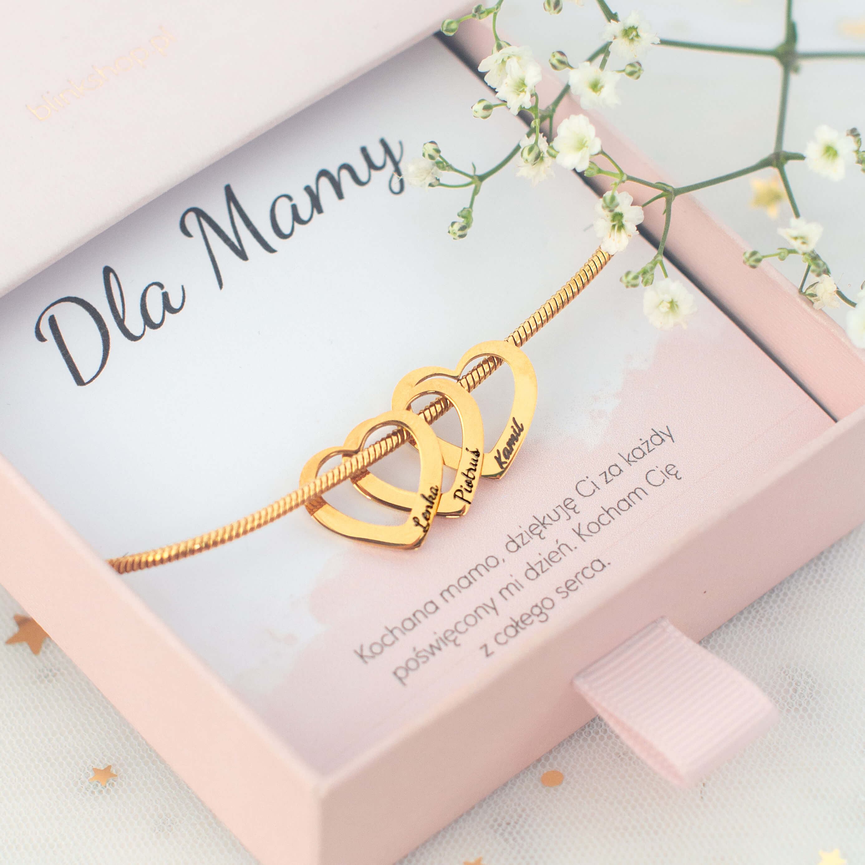 BRANSOLETKA ZŁOTA ŻMIJKA Z SERCAMI I GRAWEREM IMION PERSONALIZOWANY PREZENT DLA MAMY
