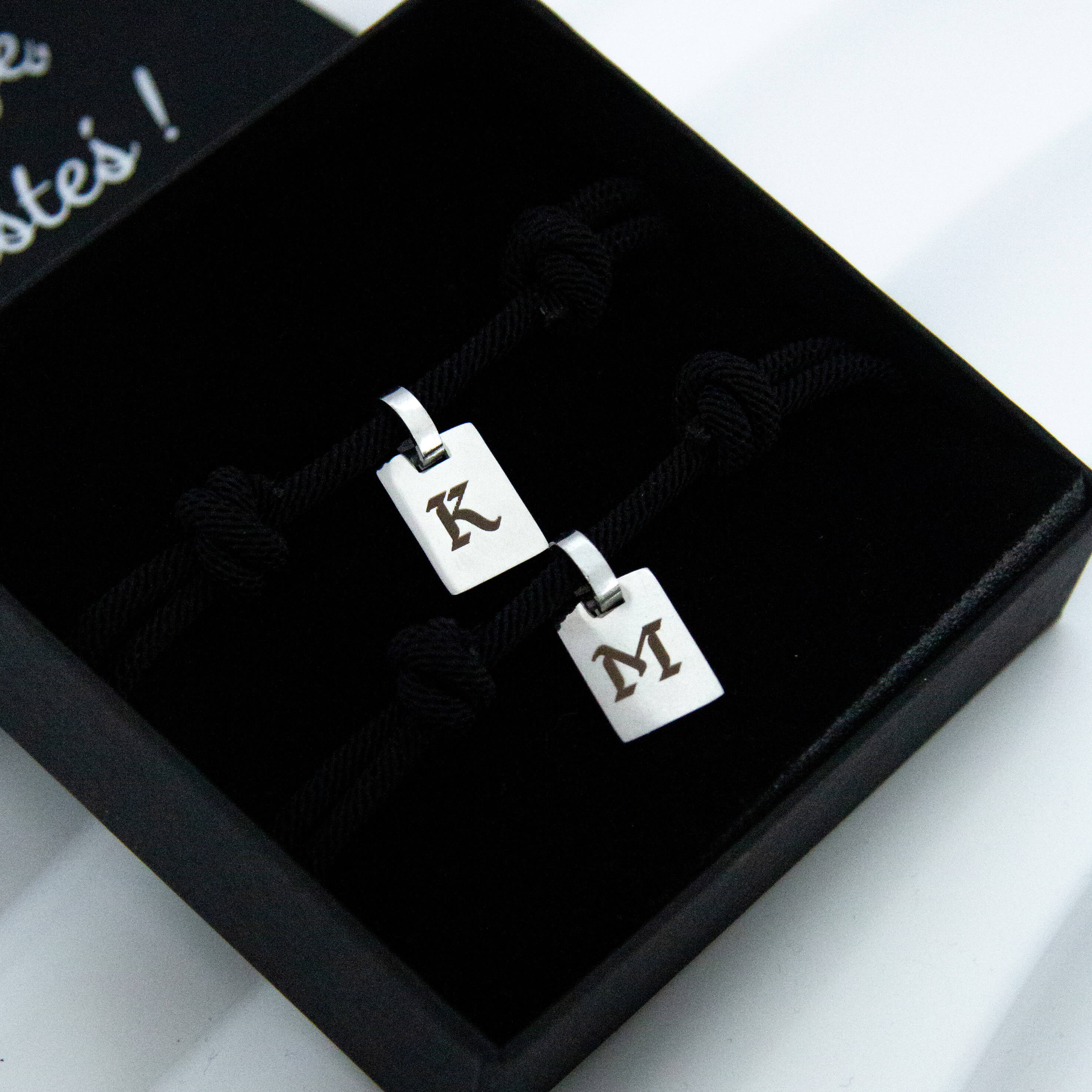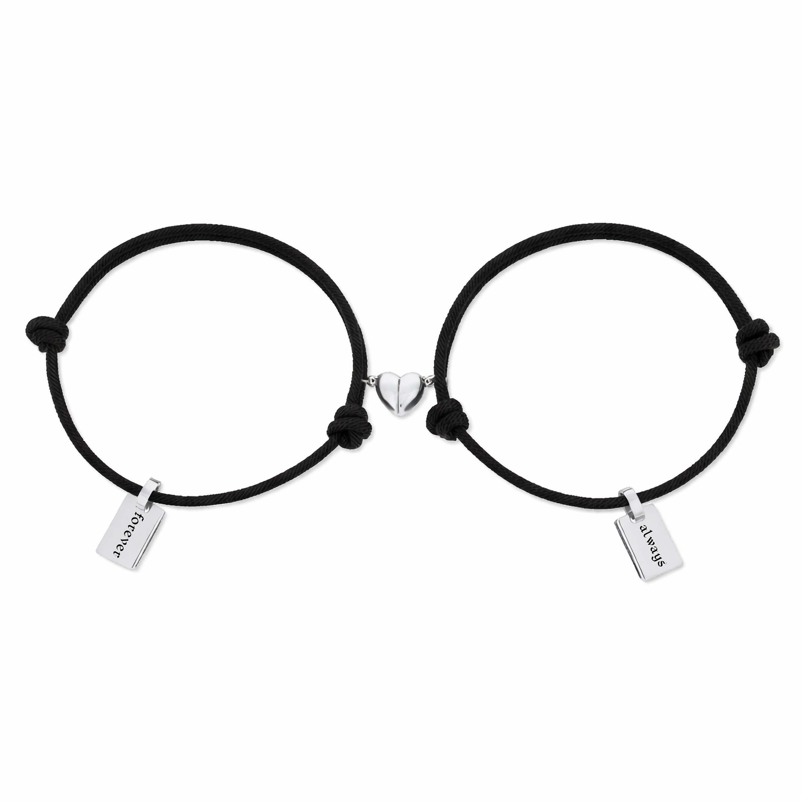 Bransoletki połączone są magnesem, który przyciąga się, gdy jesteście blisko siebie. Na froncie blaszek możesz umieścić Wasze inicjały, a na odwrocie wygrawerujemy słowa, które mówią wszystko: always i forever.