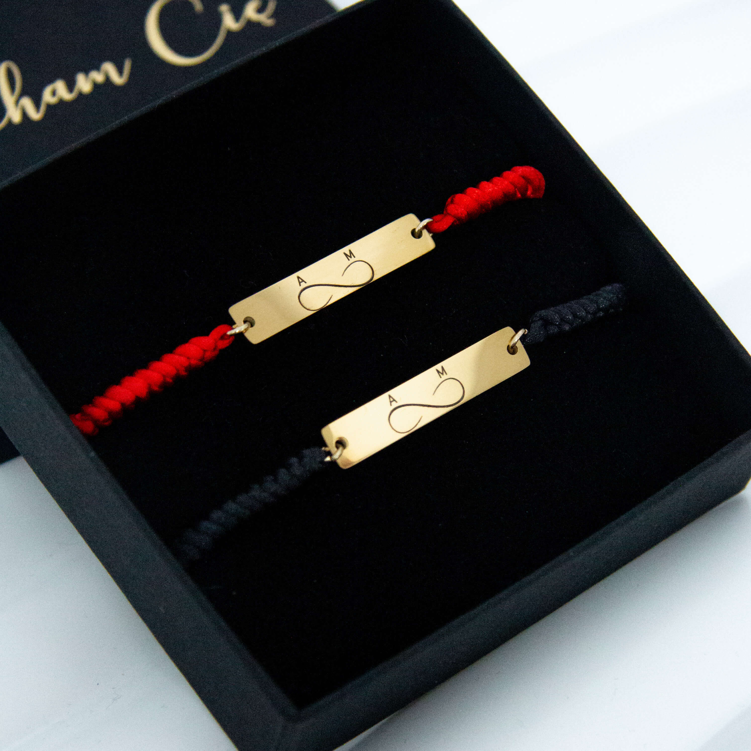 uwagi: bransoletki możemy wykonać na czarnym bądź czerwonym sznurku i ze złotą bądź srebrną blaszką ze stali szlachetnej - prosimy o podanie tych informacji wraz z inicjałami w uwagach podczas składania zamówienia
