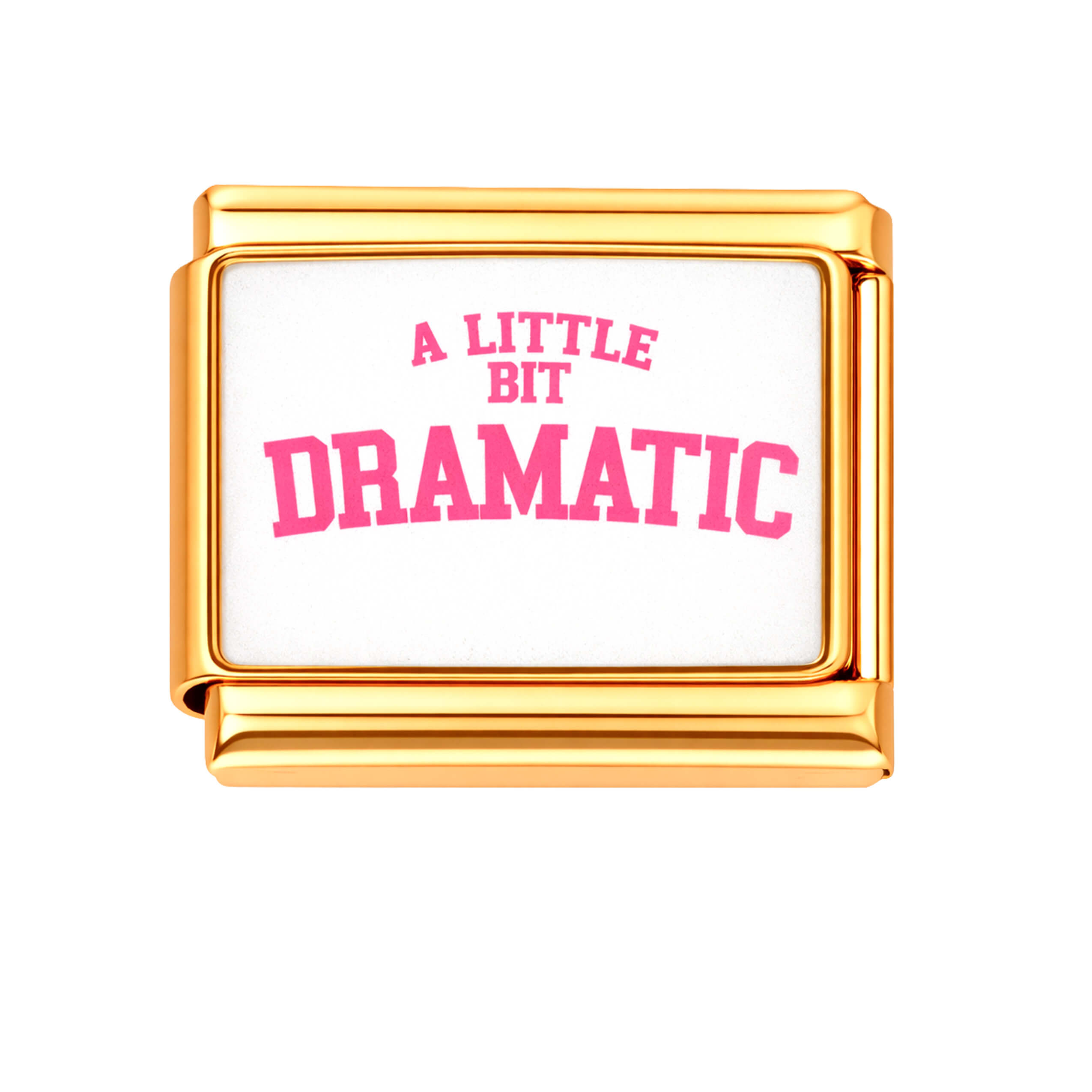 CHARMS MODUŁ OGNIWKO DO BRANSOLETKI MODUŁOWEJ ZŁOTY, NAPIS "A LITTLE BIT DRAMATIC"