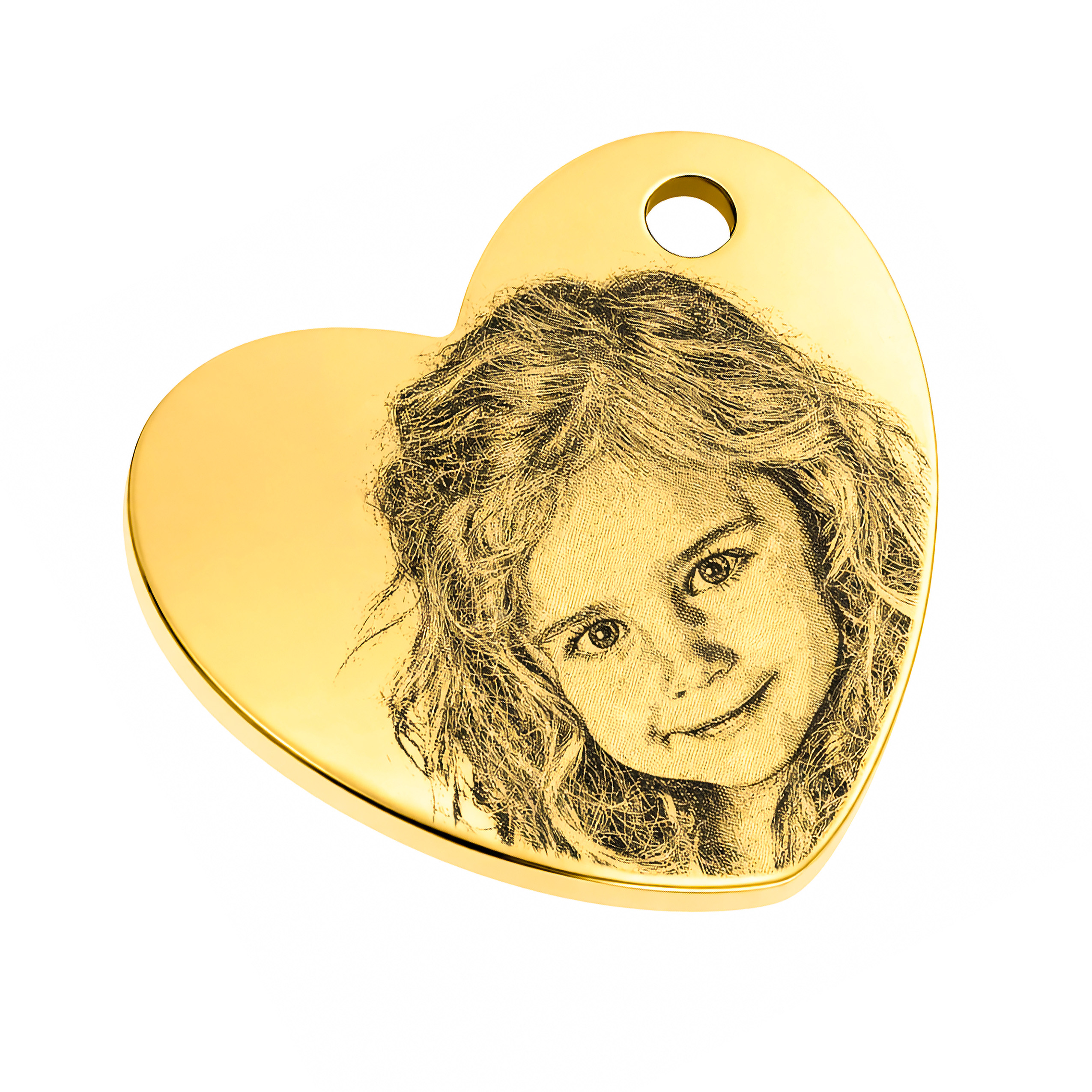 CHARMS UNIWERSALNY ZŁOTE SERCE WISZĄCE DO BRANSOLETEK I NASZYJNIKÓW GRAWER ZE ZDJĘCIA W TECHNICE MONEY PRINT