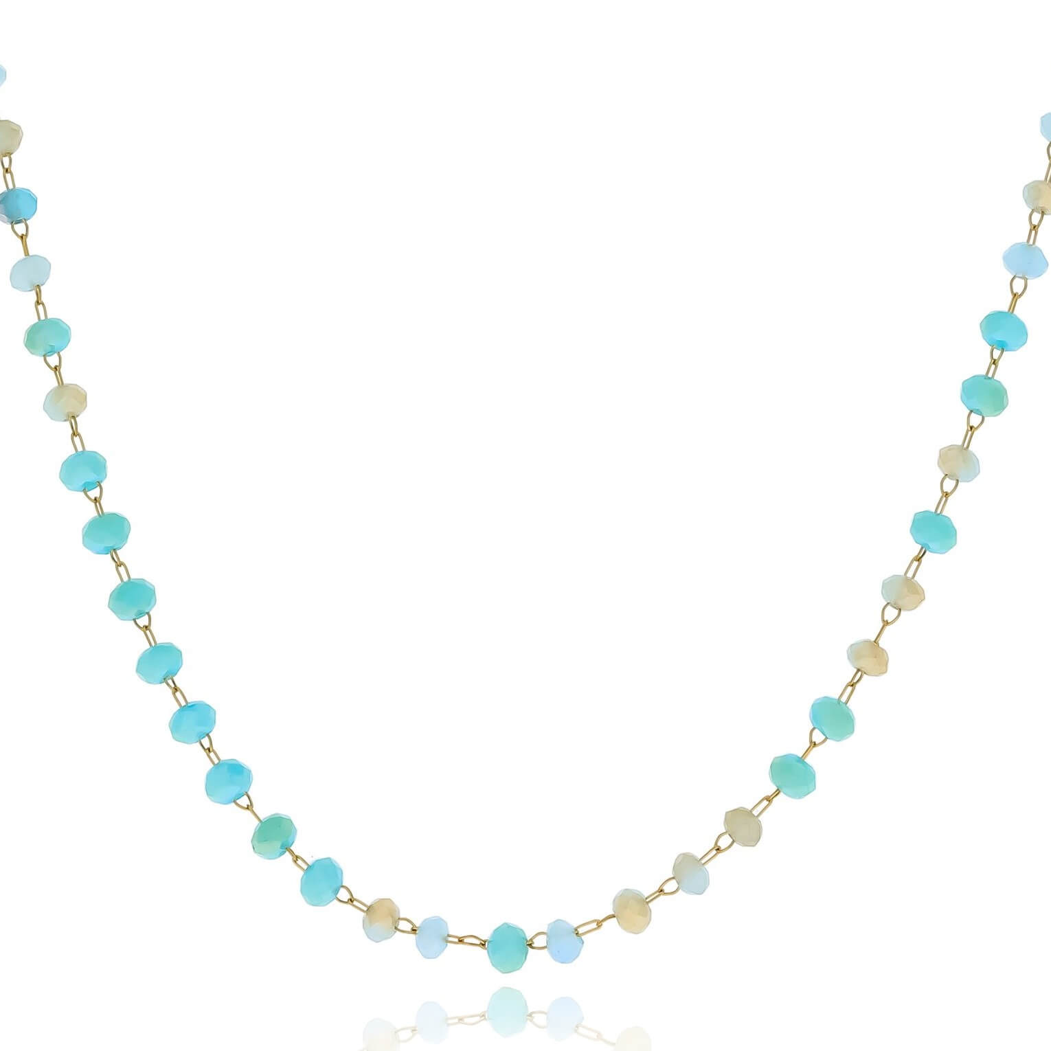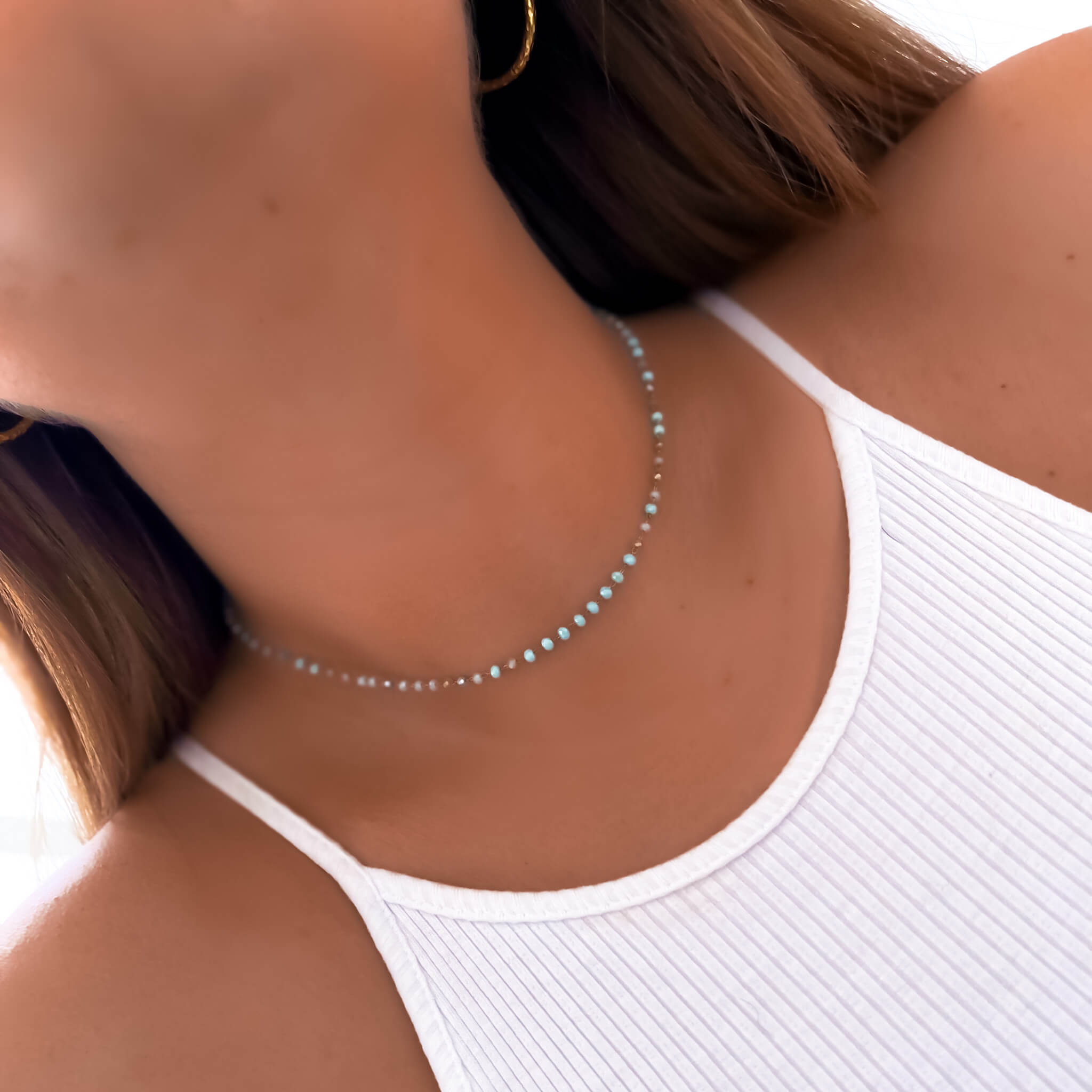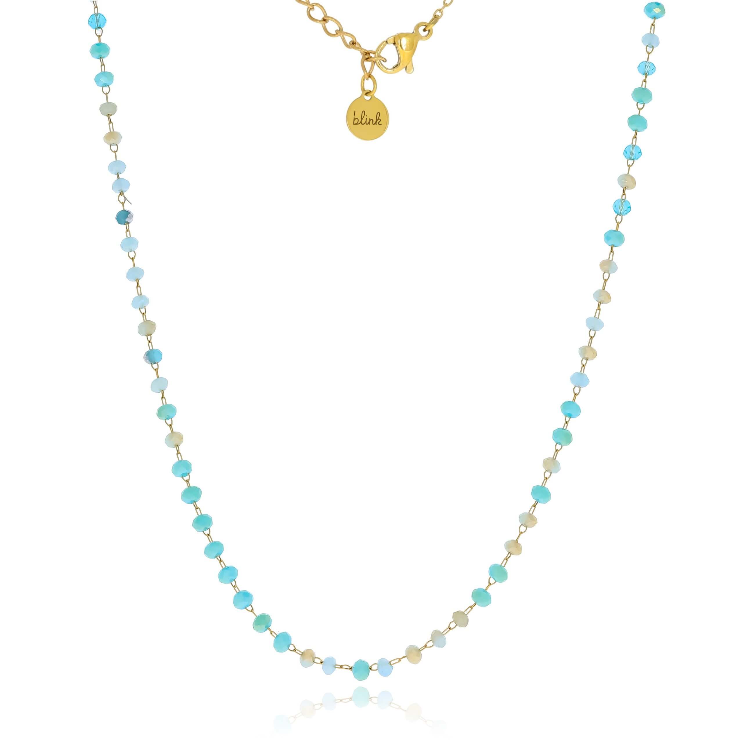 CHOKER ZE STALI CHIRURGICZNEJ BŁEKITNE NIEBIESKIE KORALIKI KRÓTKI NASZYJNIK