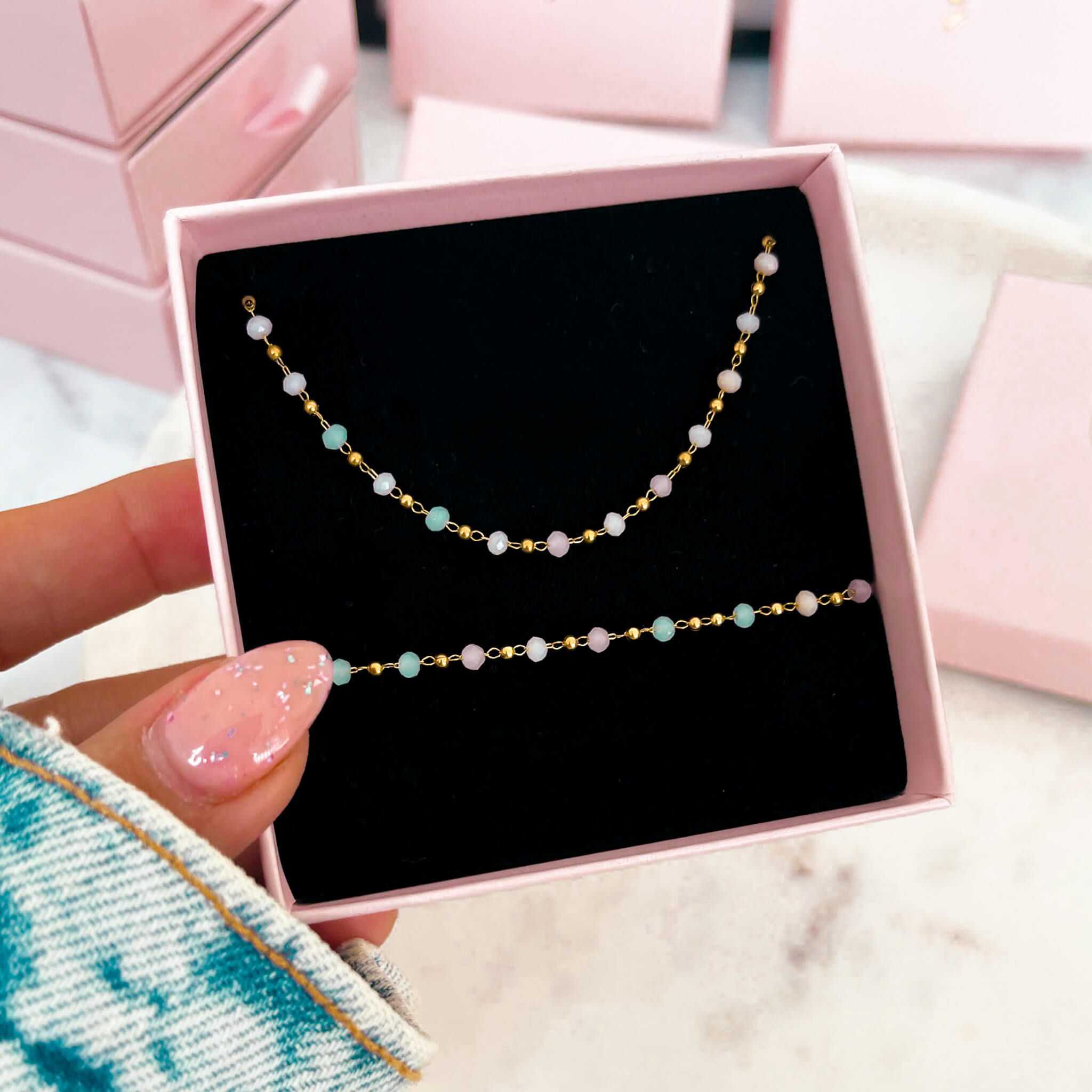 kolor: złoty, koraliki w mixie kolorów - niebieski, różowy, biały