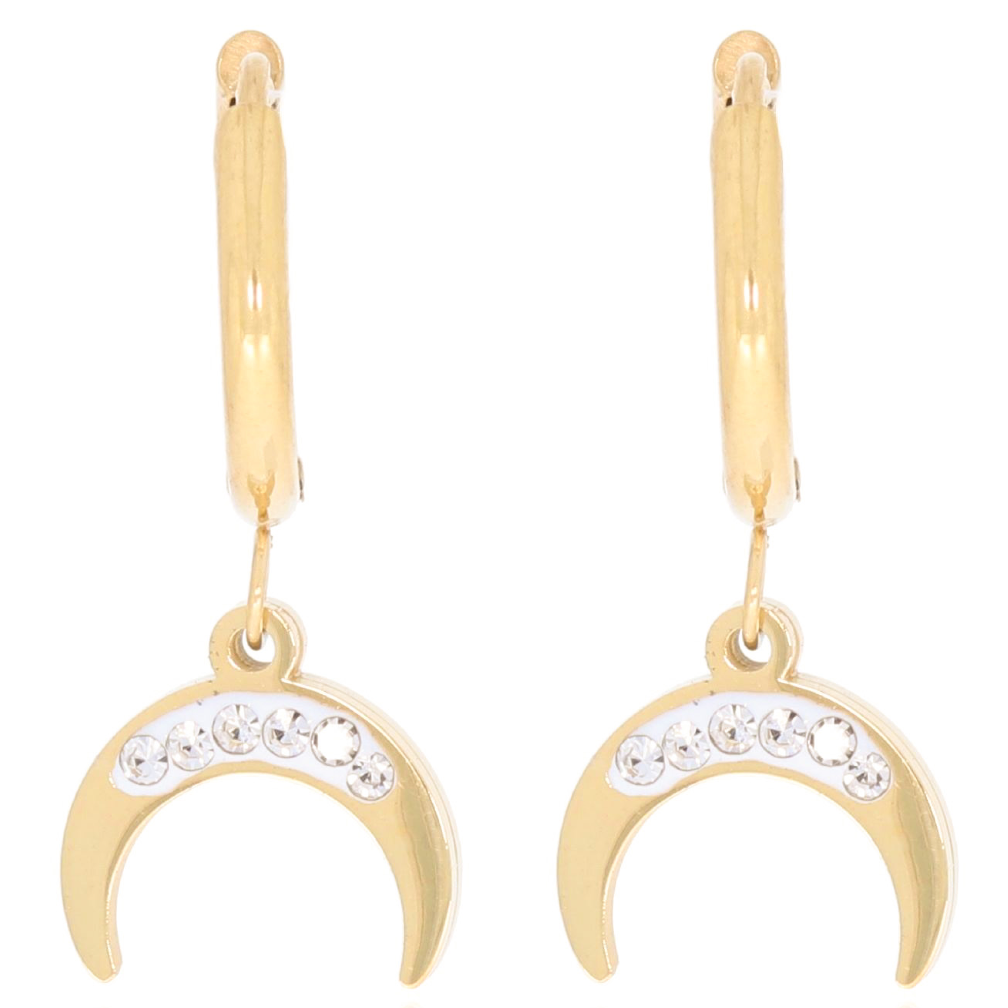 KOLCZYKI STAL CHIRURGICZNA KOLOR ZŁOTY KSIĘŻYC PÓŁKSIĘŻYC KRYSZTAŁKI GLAMOUR