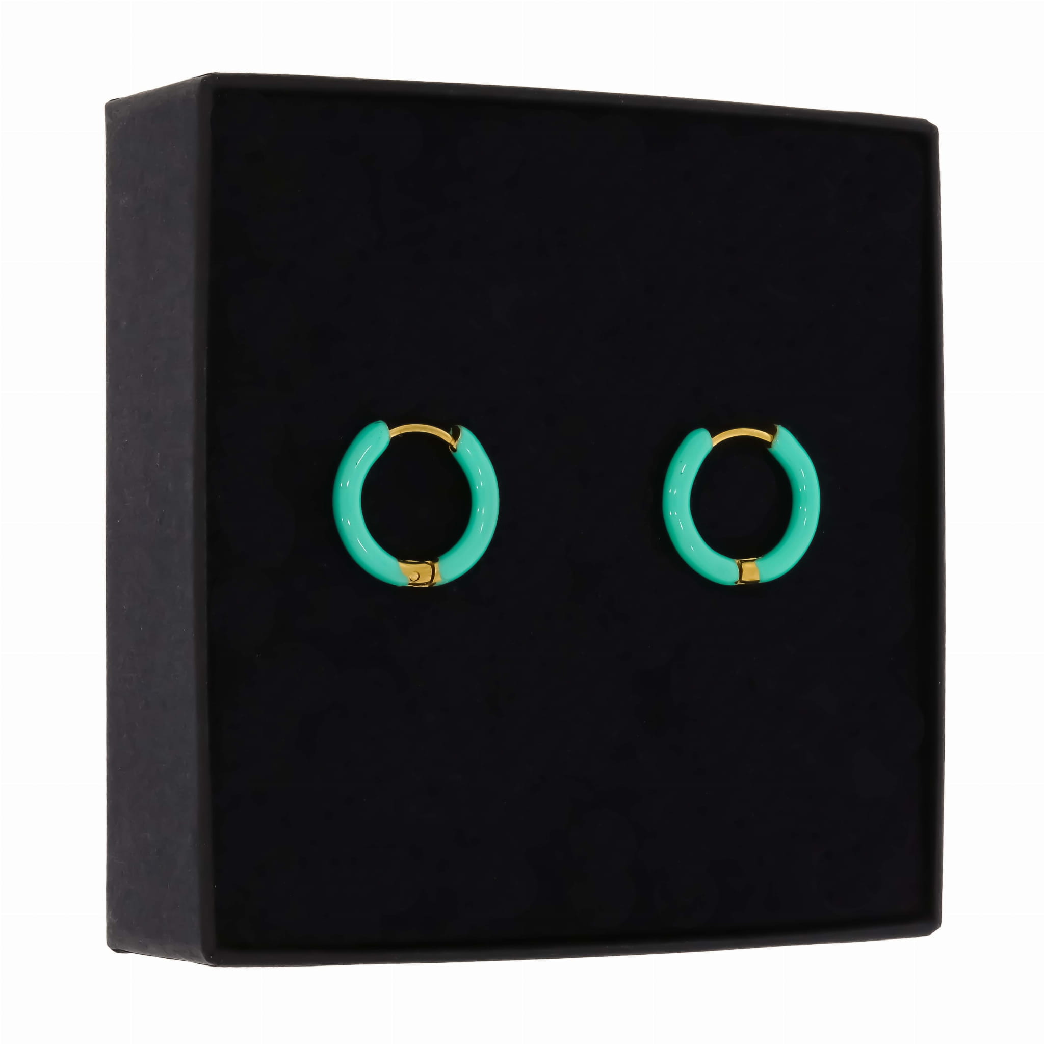 KOLCZYKI ZE STALI CHIRURGICZNEJ KÓŁKO KOLOR TURKUSOWY EMALIOWANE