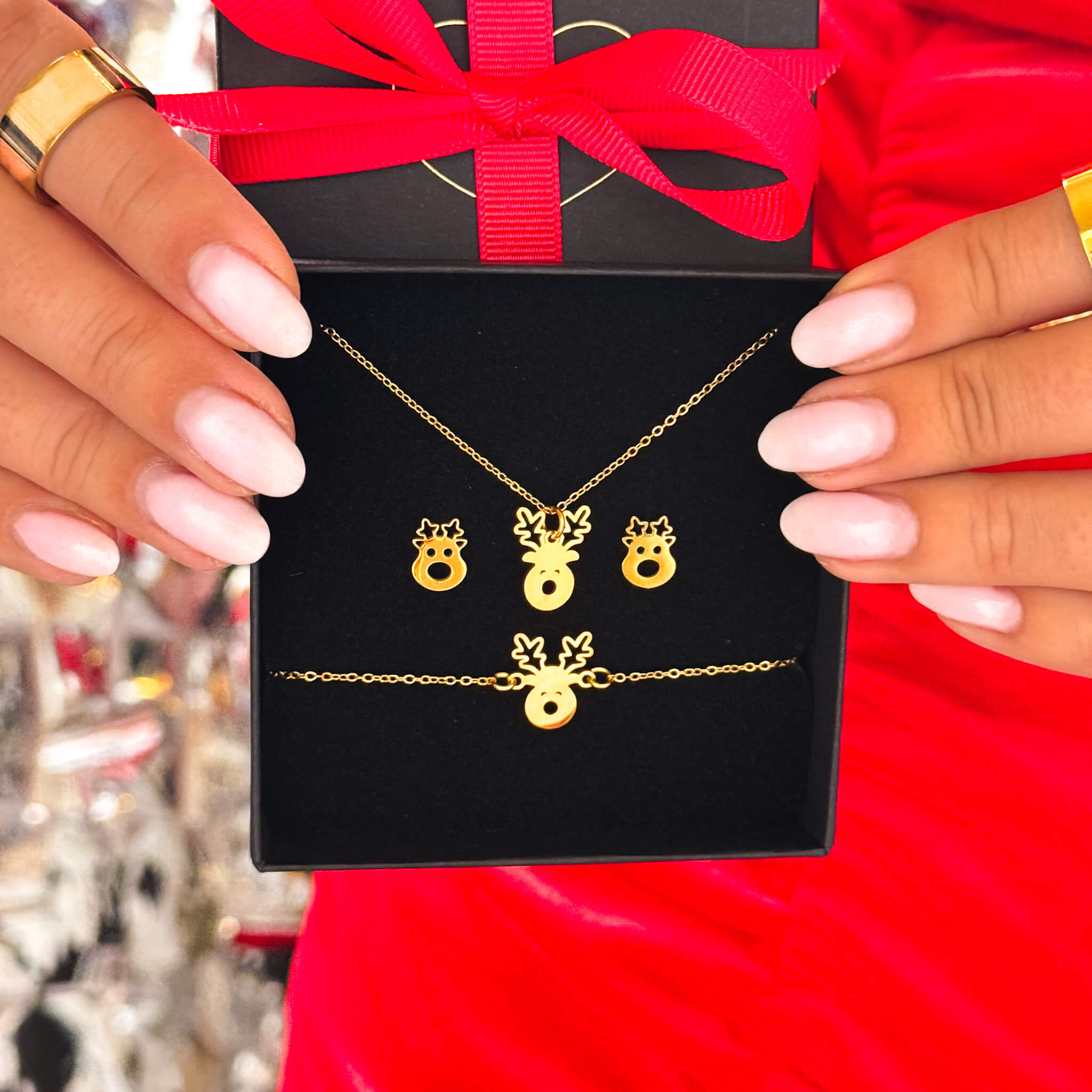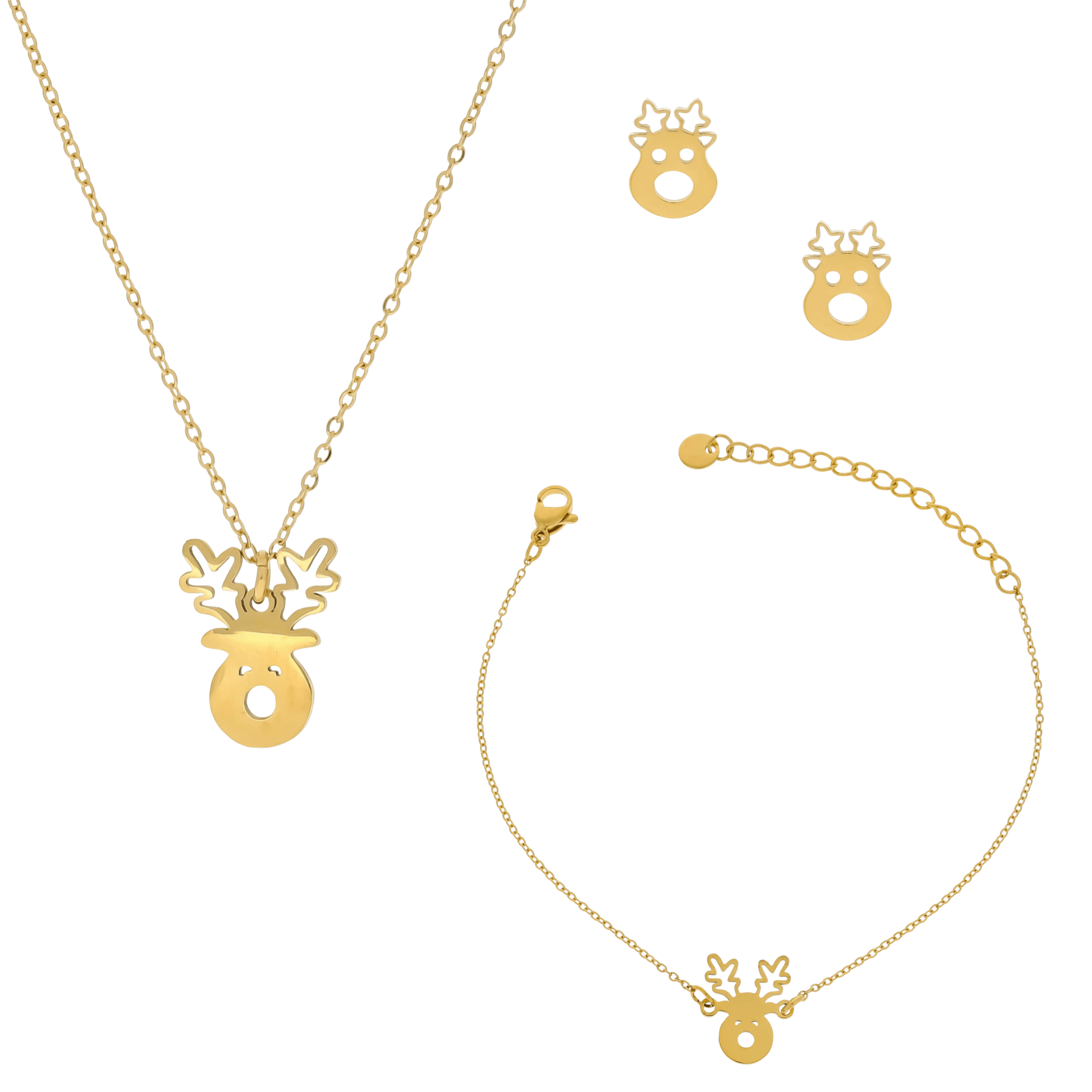 KOMPLET BIŻUTERII Z JELONKAMI POZŁACANA STAL CHIRURGICZNA
