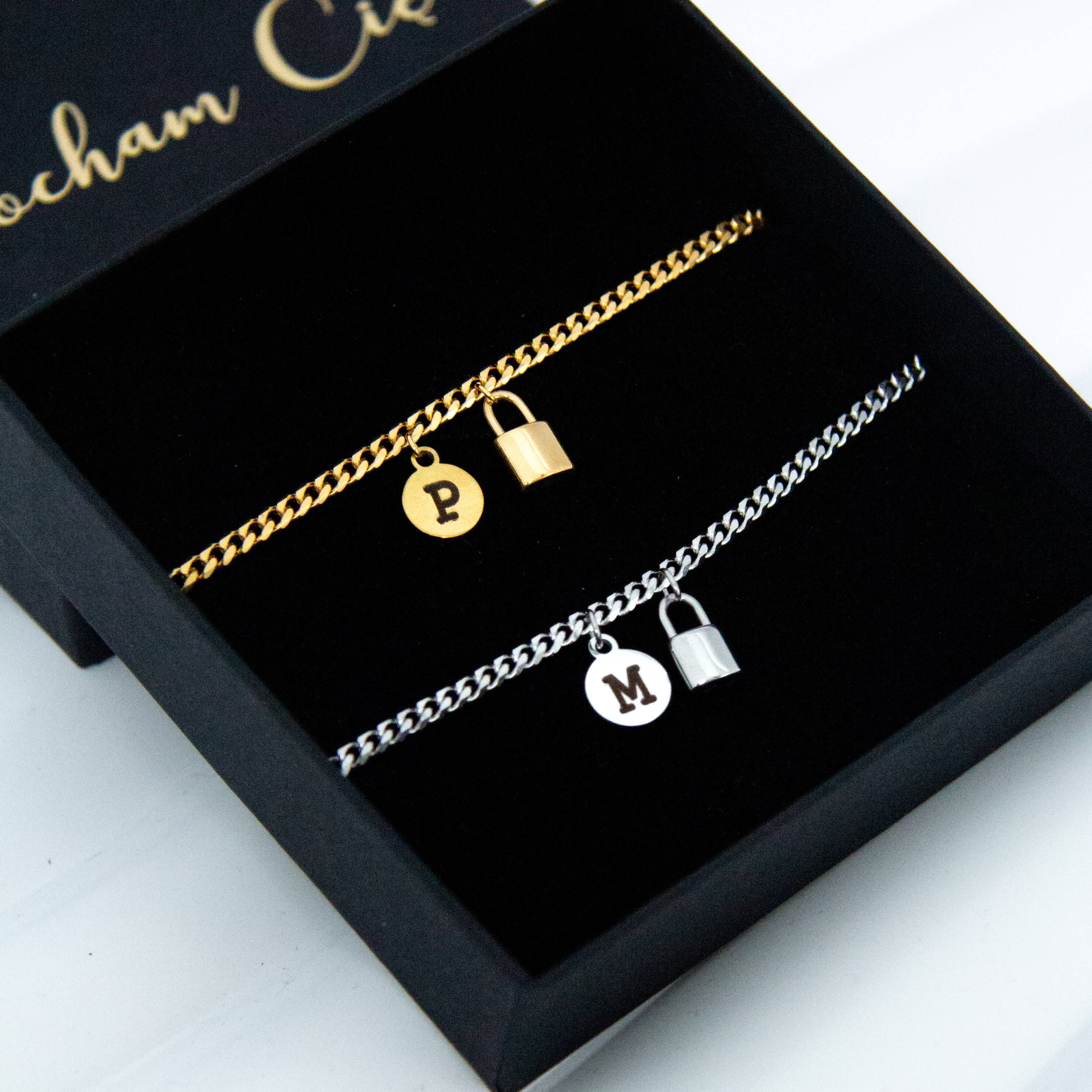Ten komplet bransoletek dla par to subtelny, ale bardzo symboliczny sposób na pokazanie więzi, którą dzielicie tylko między sobą. Delikatna kłódka oraz możliwość personalizacji sprawiają, że jest to biżuteria z prawdziwym znaczeniem.