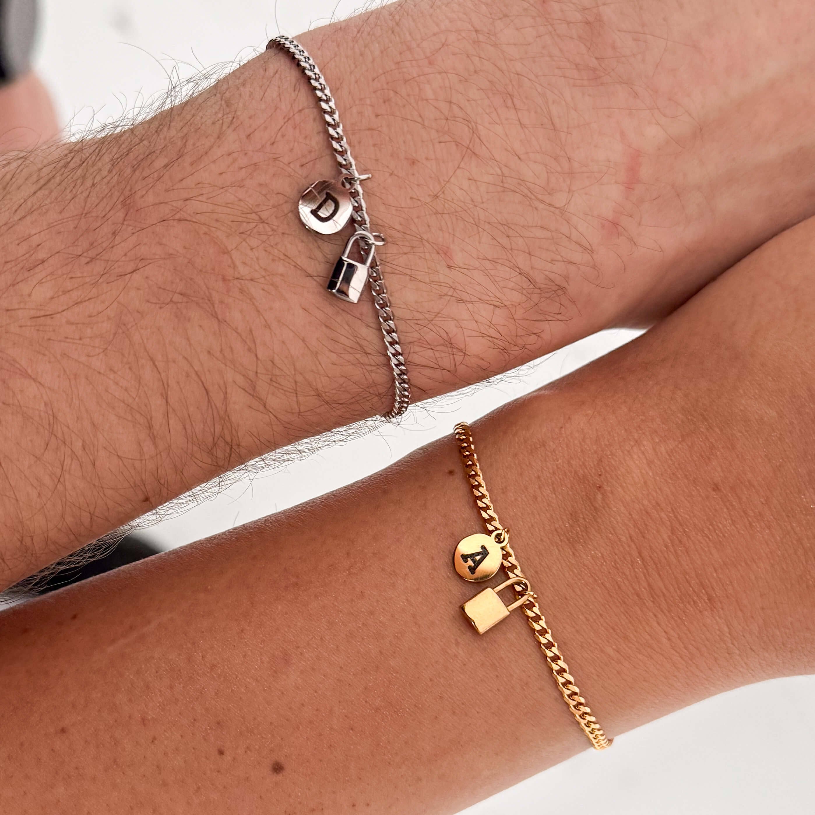 Bransoletki wykonane są z trwałej stali chirurgicznej 316L – odpornej na codzienne noszenie, wodę i upływ czasu. Jedna w kolorze srebrnym, druga w kolorze złotym – idealnie dopełniają się, tak jak Wy.