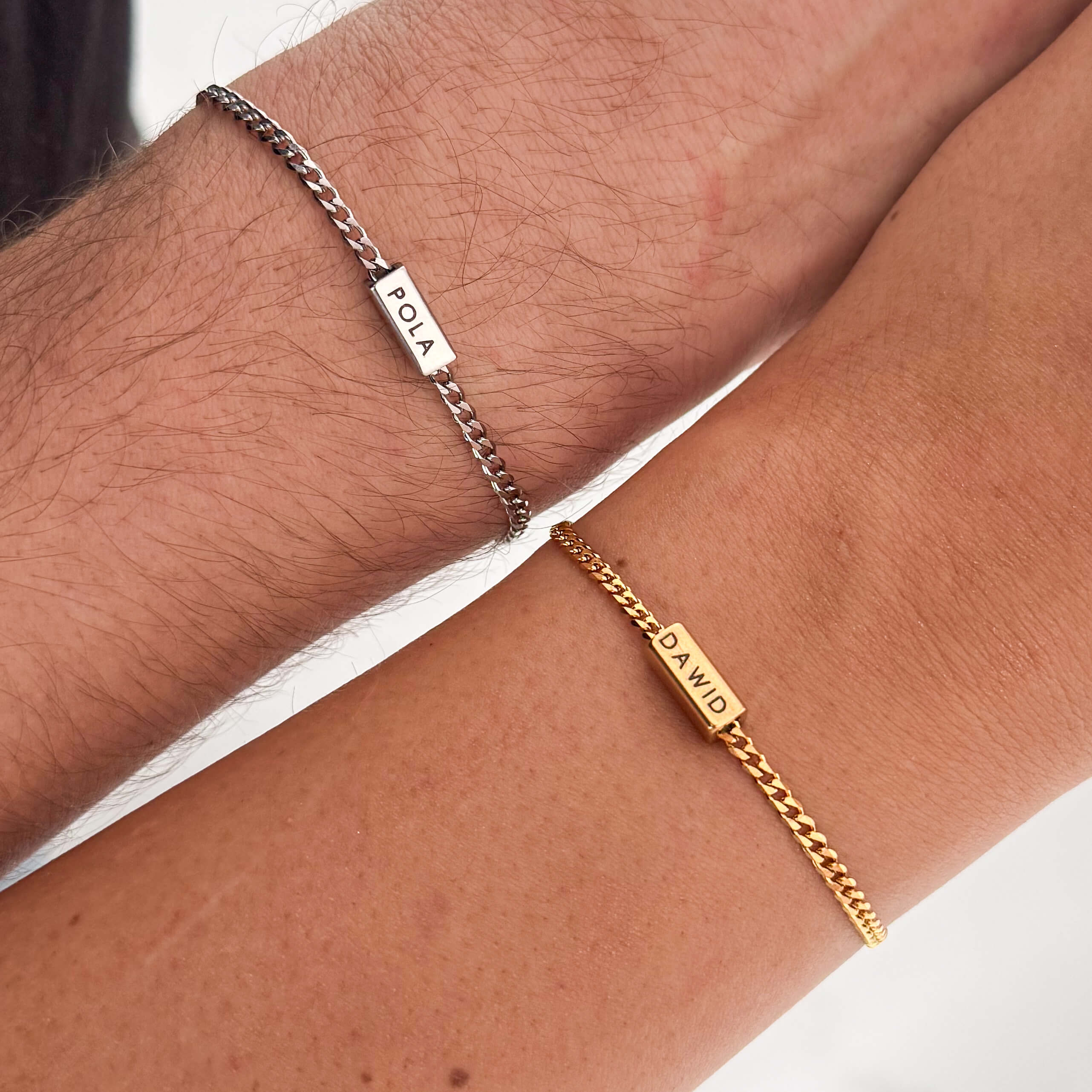 Komplet bransoletek dla par z grawerem imion to symbol bliskości, więzi i wspólnej historii – zamknięty w prostej, ponadczasowej formie.