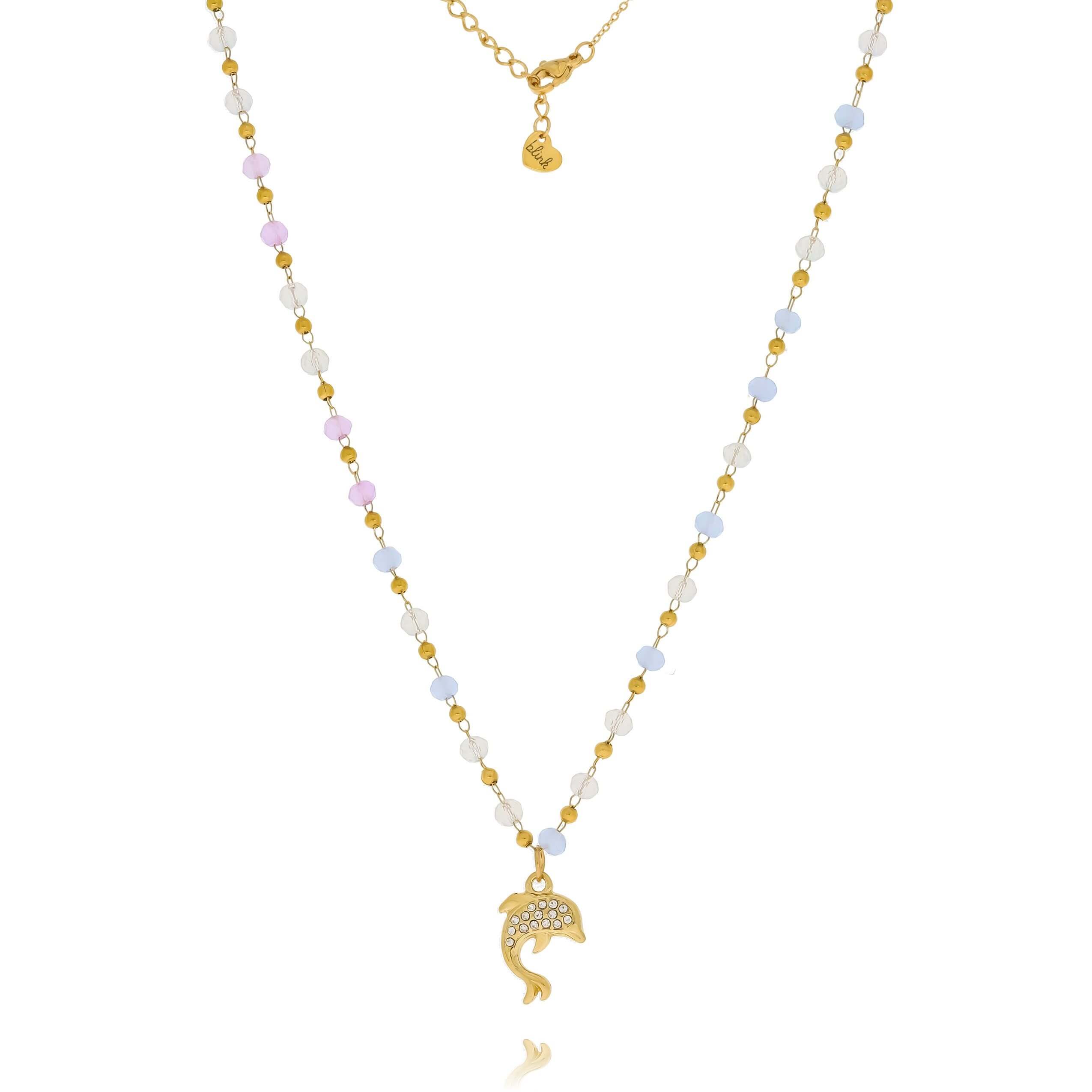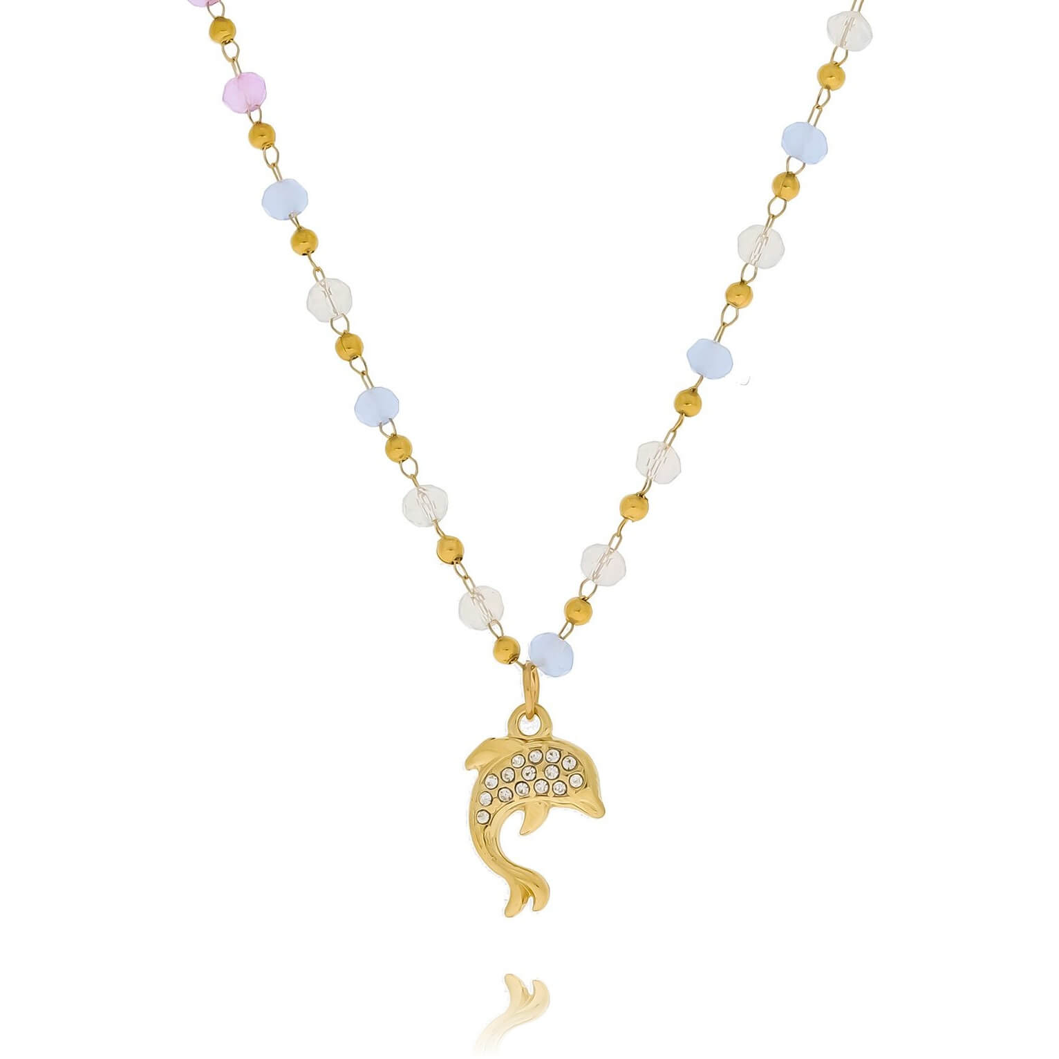LETNI NASZYJNIK KORALIKI CHOKER Z DELFINEM KRYSZTAŁKI STAL CHIRURGICZNA