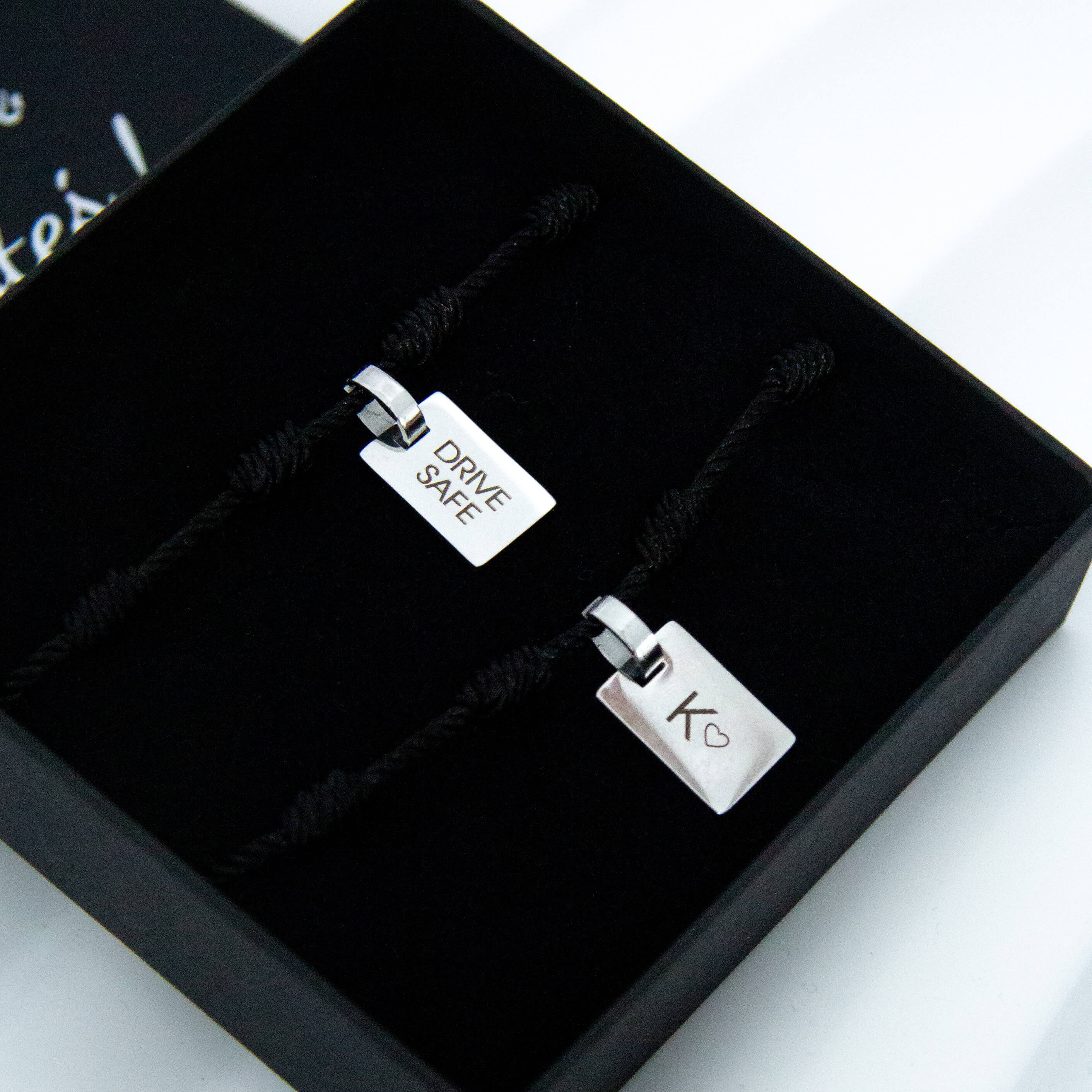 MATCHING BRANSOLETKI DLA PAR Z WĘZŁAMI Z GRAWEREM DRIVE SAFE INICJAŁY PREZENT DLA NIEGO