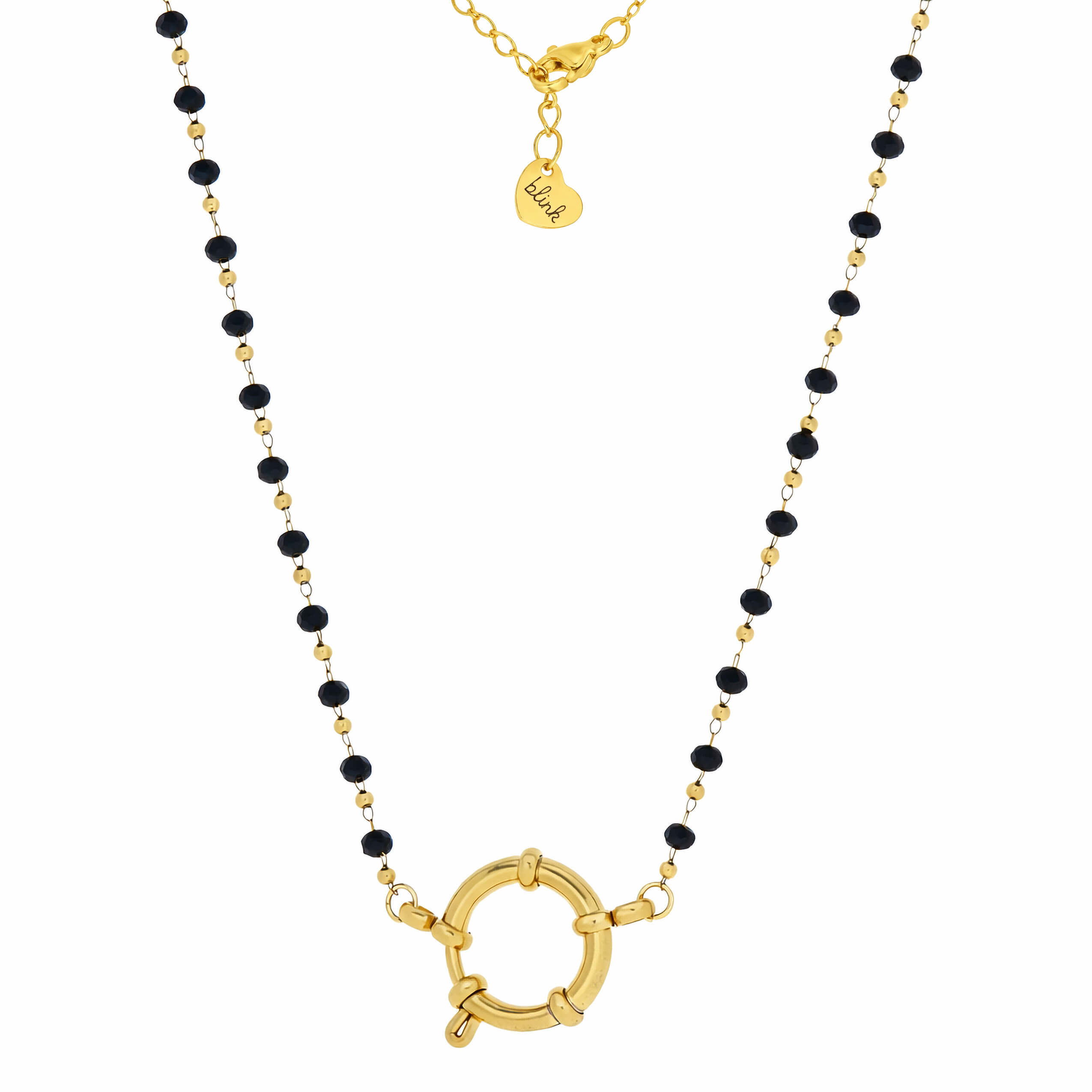 NASZYJNIK BAZA DO ZAWIESZEK Z OZDOBNYM ZAPIĘCIEM SPRING RING KLASYCZNY ZŁOTY CZARNO ZŁOTE KRYSZTAŁKI