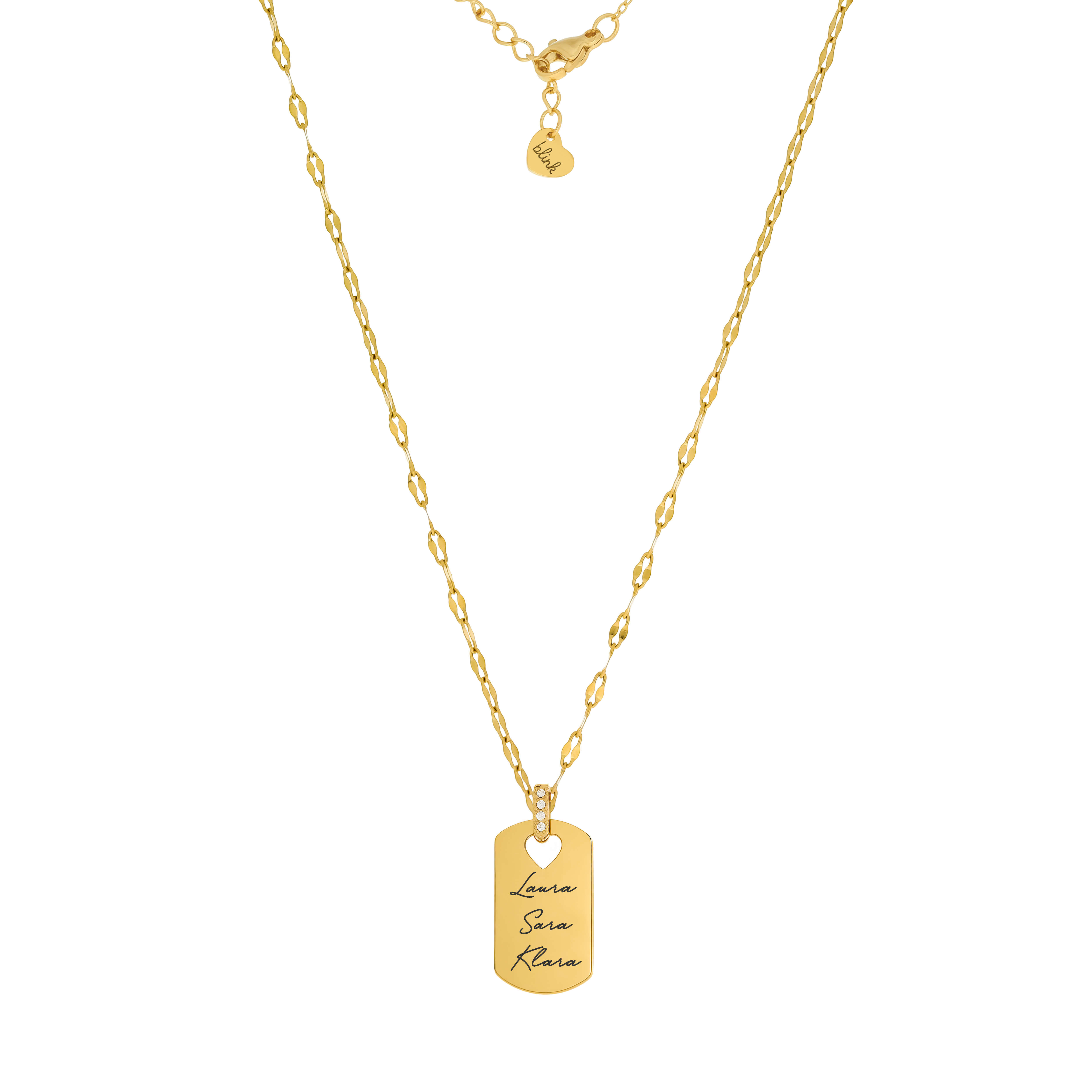 NASZYJNIK DLA MAMY Z IMIONAMI DZIECI PROSTOKĄTNA BLASZKA PERSONALIZOWANA POZŁACANA STAL