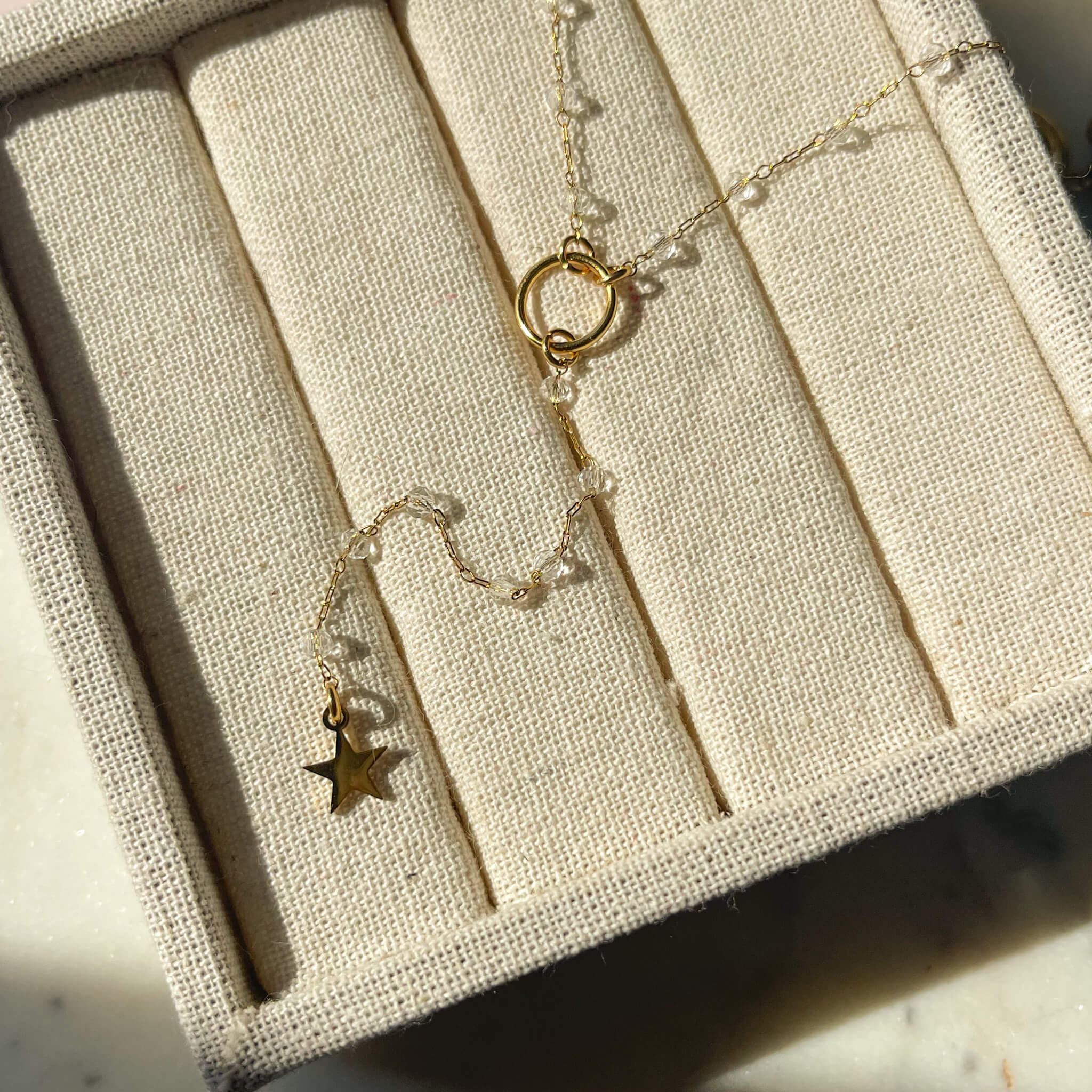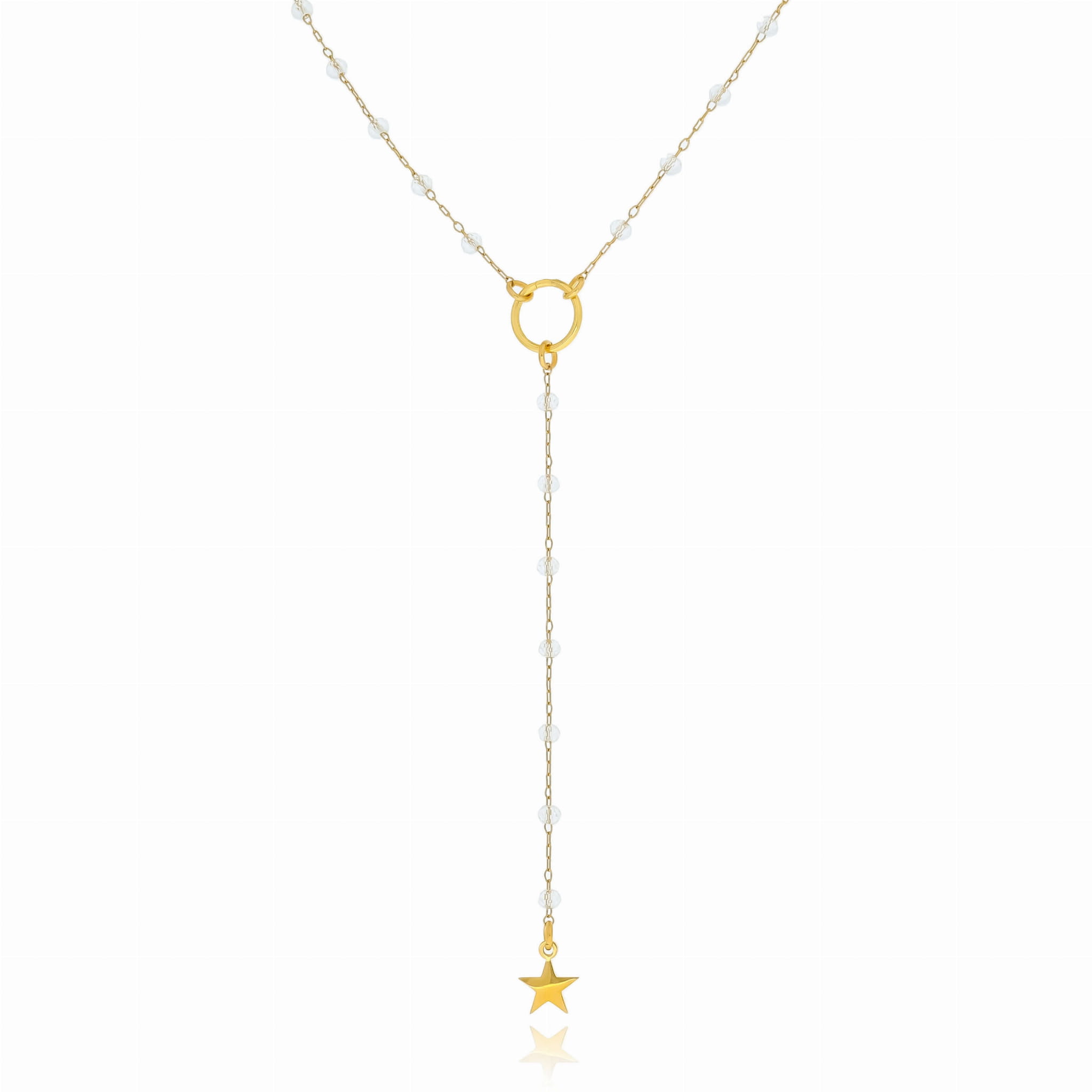 NASZYJNIK DŁUGI WPADAJĄCY KRYSZTAŁKI KORALIKI Z GWIAZDKĄ BODY CHAIN STAL CHIRURGICZNA