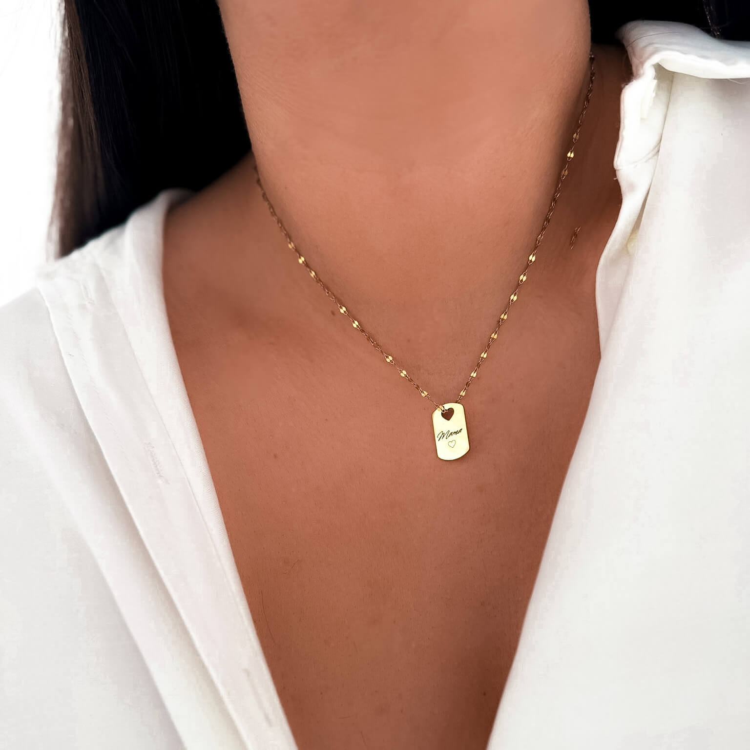 Delikatny naszyjnik z zawieszką w stylu nieśmiertelnika to piękny i ponadczasowy sposób, aby powiedzieć „Mama”.