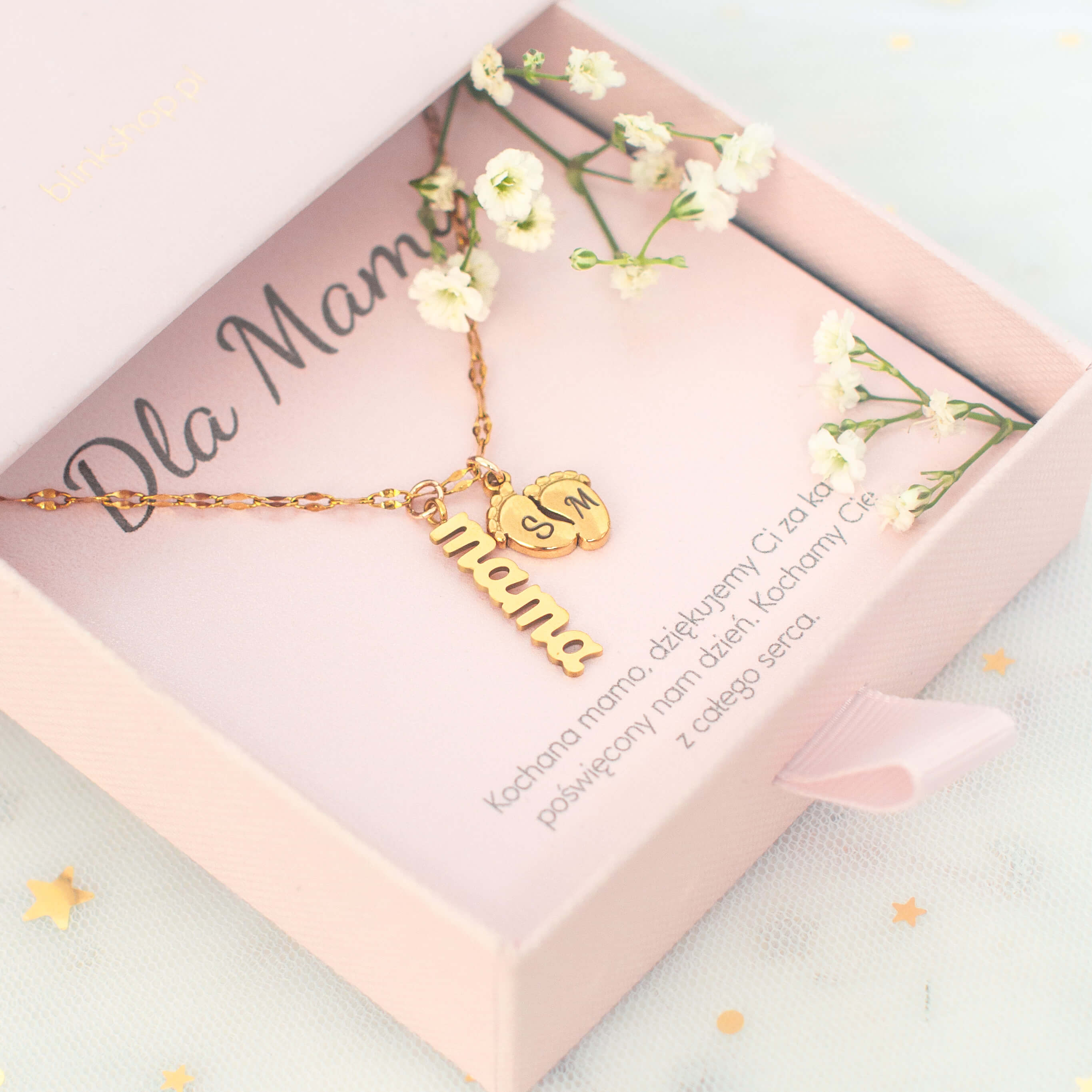 NASZYJNIK MAMA ZE STÓPKAMI PERSONALIZOWANY PREZENT DLA MAMY Z INICJAŁAMI DZIECKA